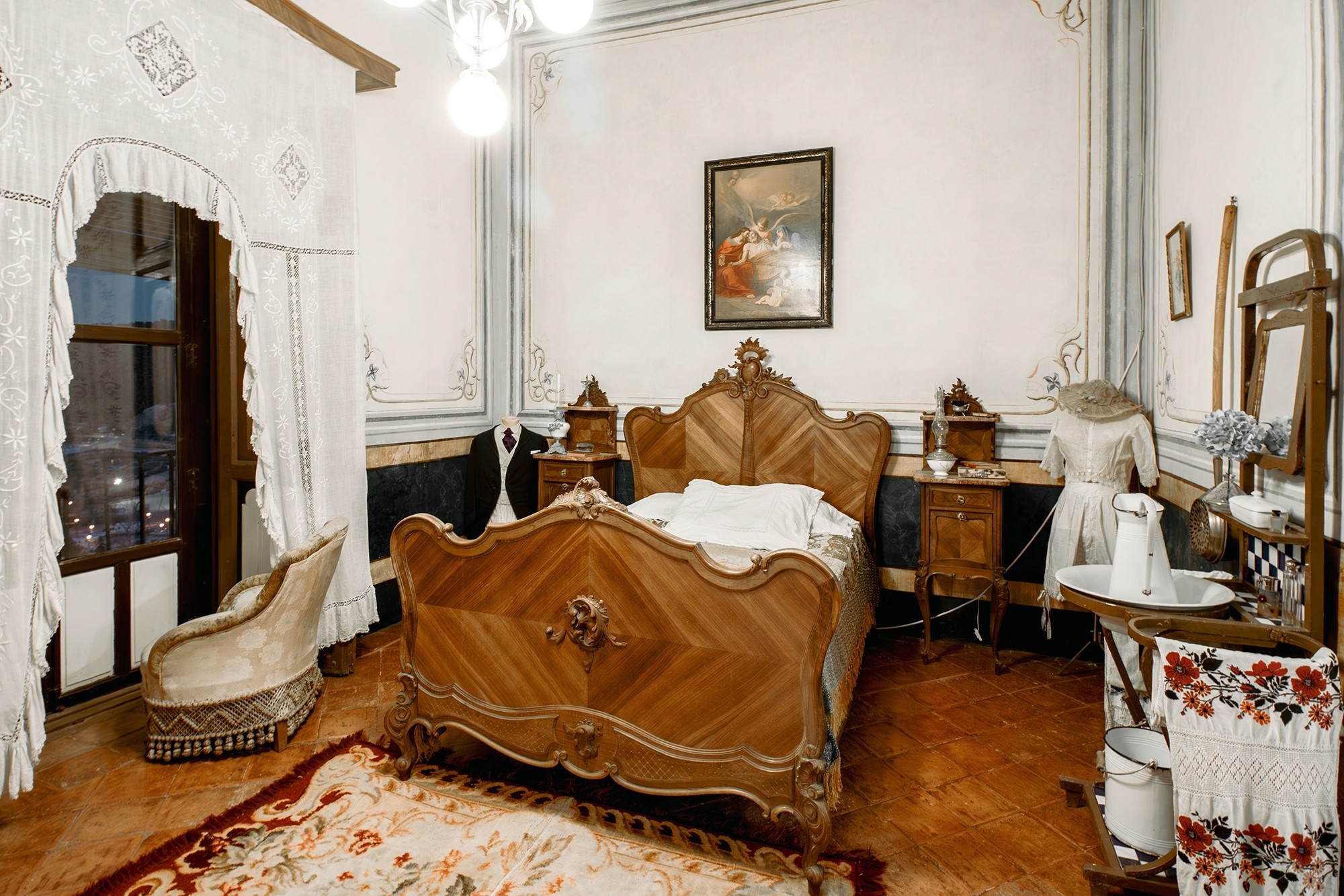En la planta superior se despliega todo el encanto de las estancias históricas: salones revestidos en madera con pinturas decorativas, porcelana fina, vestidos de encaje y mobiliario original del estilo Isabelino recrean de forma vívida el modo de vida de la nobleza española de los siglos XVIII y XIX, a pesar de que la casa pasara posteriormente a manos de la burguesía.