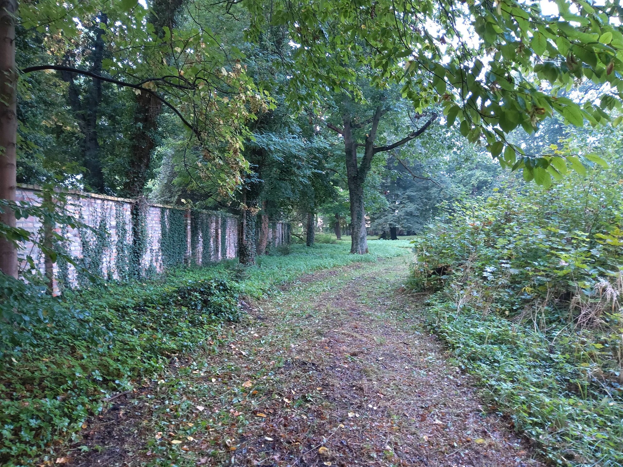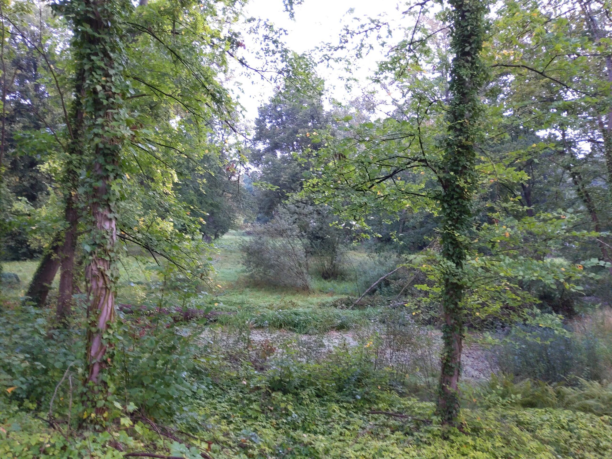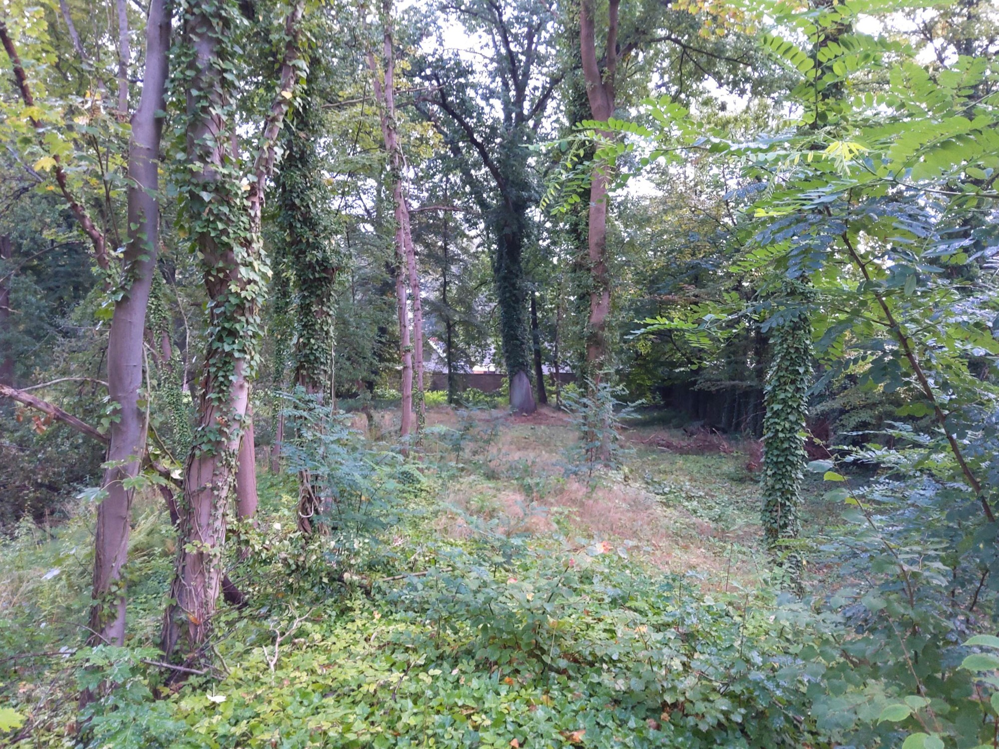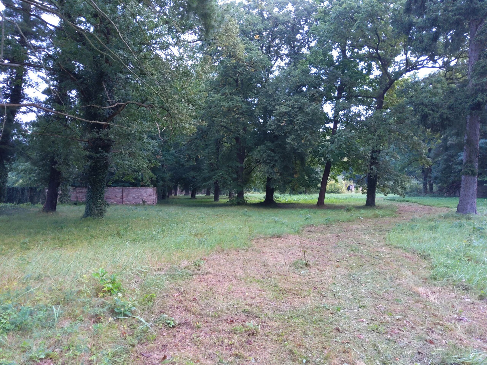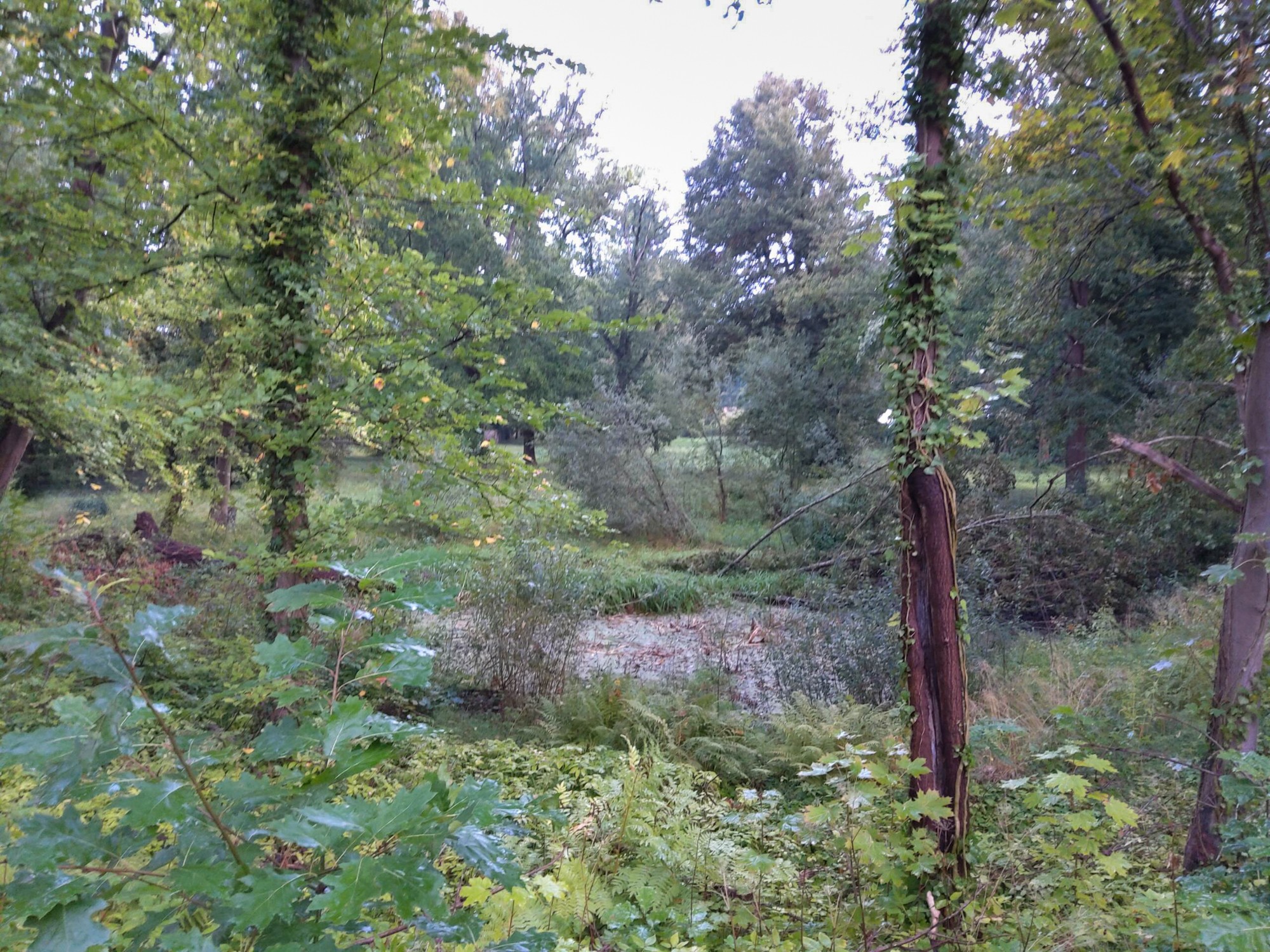 Das Gelände ist im vorderen Bereich flach, am Ende befindet sich eine kleine Anhöhe mit altem Baumbestand und einem kleinen Teich in einer Senke.