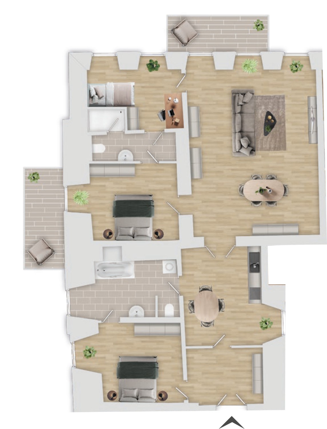 Equipamiento: suelos de parquet de roble macizo, ventanas de madera adaptadas al estilo histórico, baños nuevos, sistema de videoportero y un concepto de instalaciones técnicas con neutralidad climática.