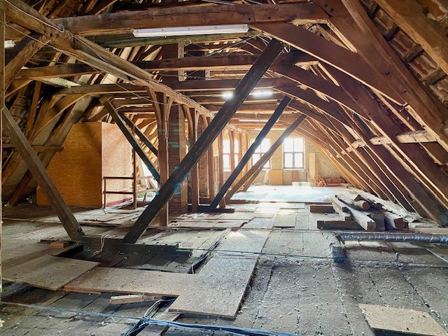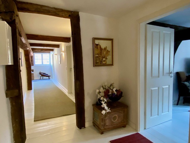 La vivienda dispone de 12 habitaciones y 4 baños. Conserva vigas originales en el vestíbulo central y en varias estancias, suelos de madera maciza y pavimento de piedra original en el vestíbulo. Incluye una bodega abovedada. El ático ofrece potencial de ampliación. Cuenta con dos accesos: entrada principal desde la zona peatonal y un segundo acceso desde el patio interior. Plaza de aparcamiento frente al patio.