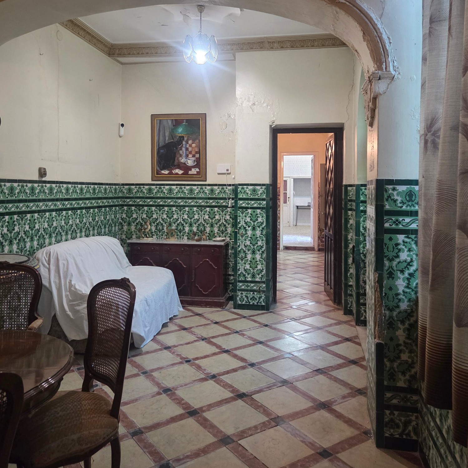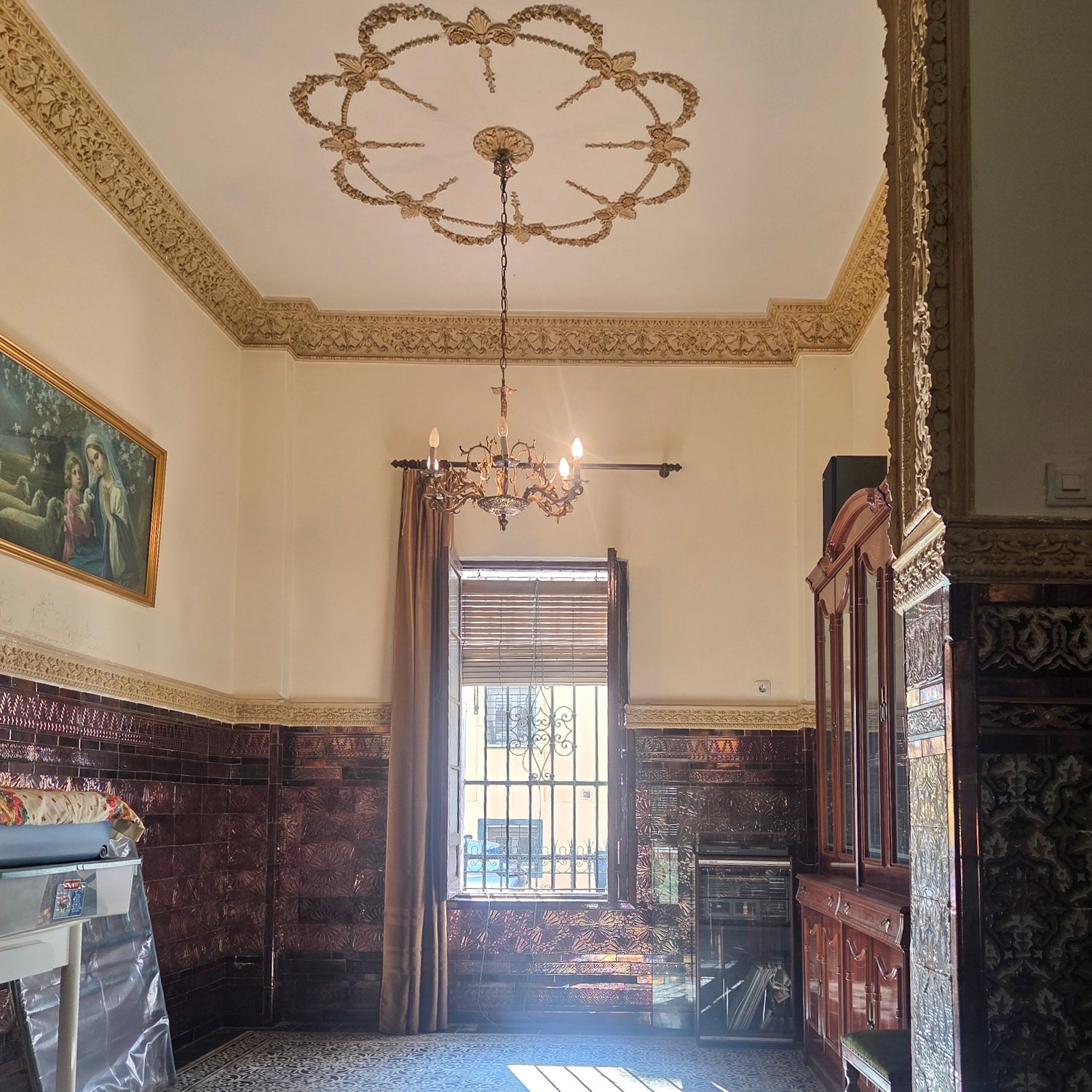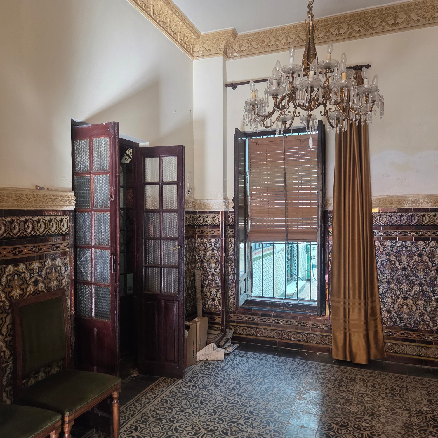 Aunque necesita algunas reformas, la estructura se mantiene sólida y conserva la esencia de una época gloriosa de la arquitectura andaluza: techos altos, gran luminosidad y detalles artesanales.
