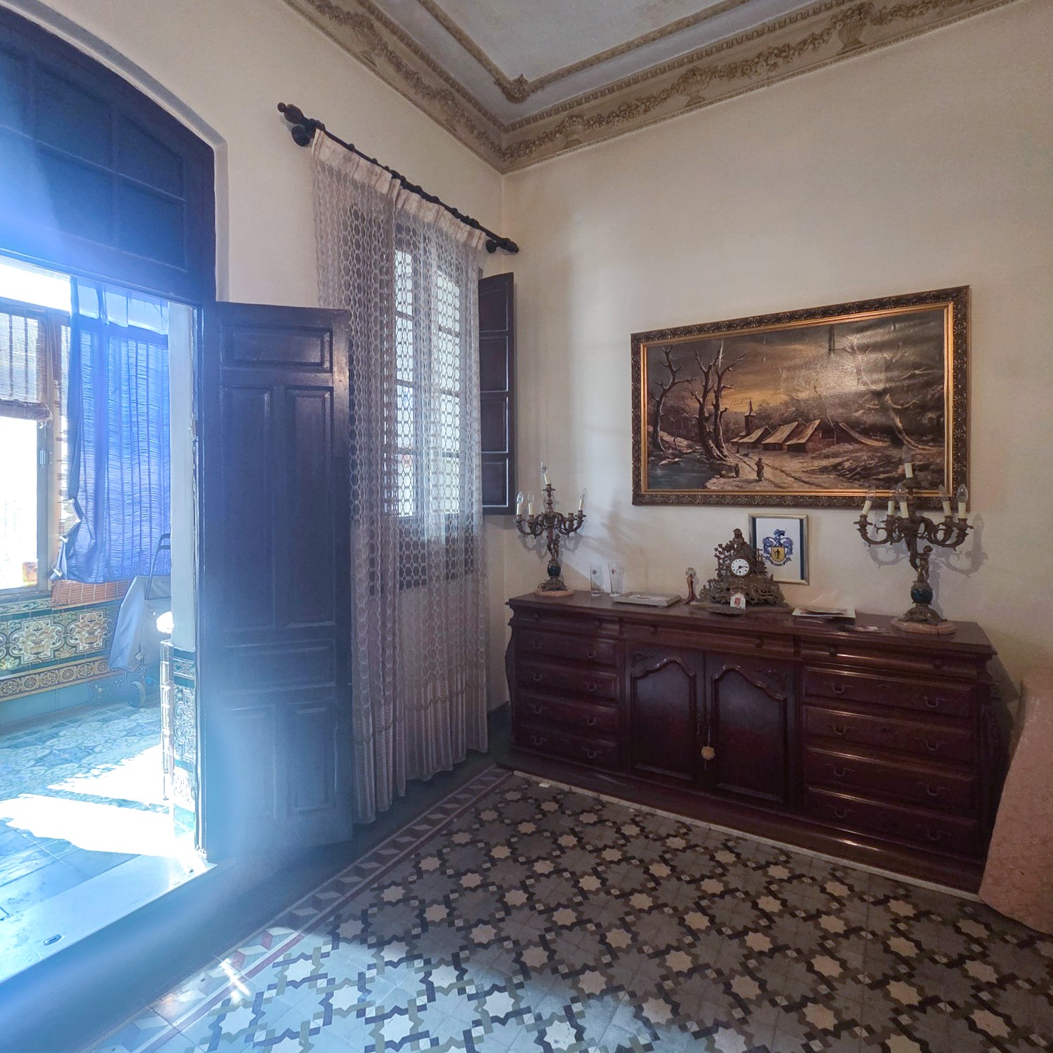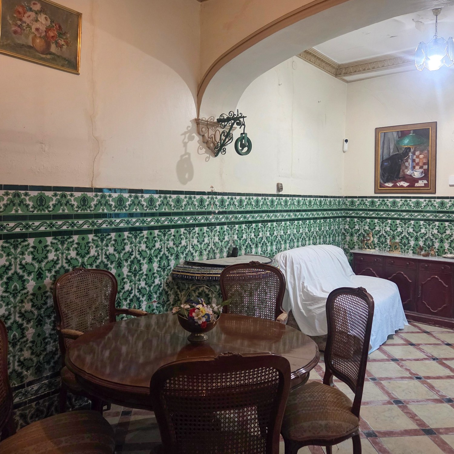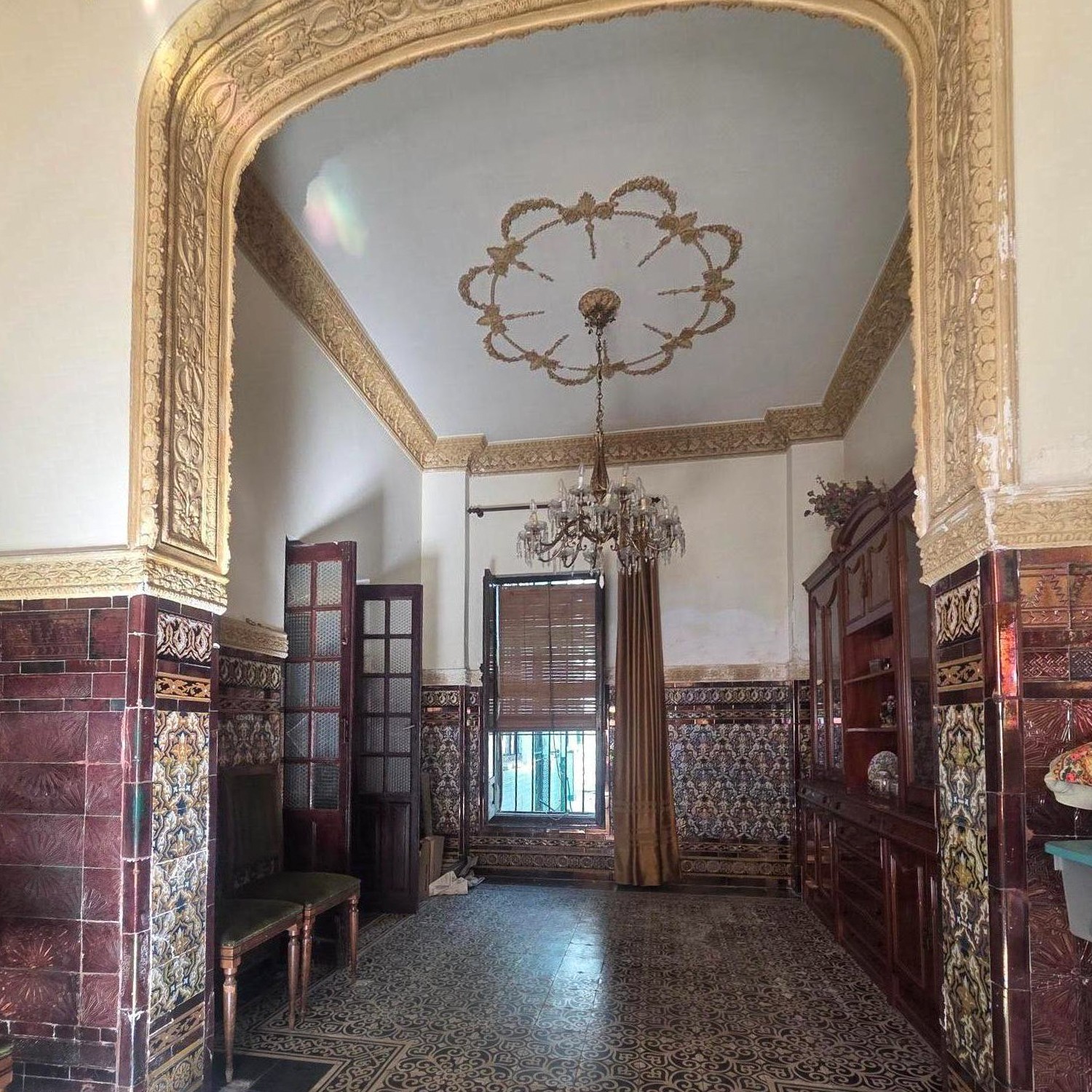 Aunque necesita algunas reformas, la estructura se mantiene sólida y conserva la esencia de una época gloriosa de la arquitectura andaluza: techos altos, gran luminosidad y detalles artesanales.
