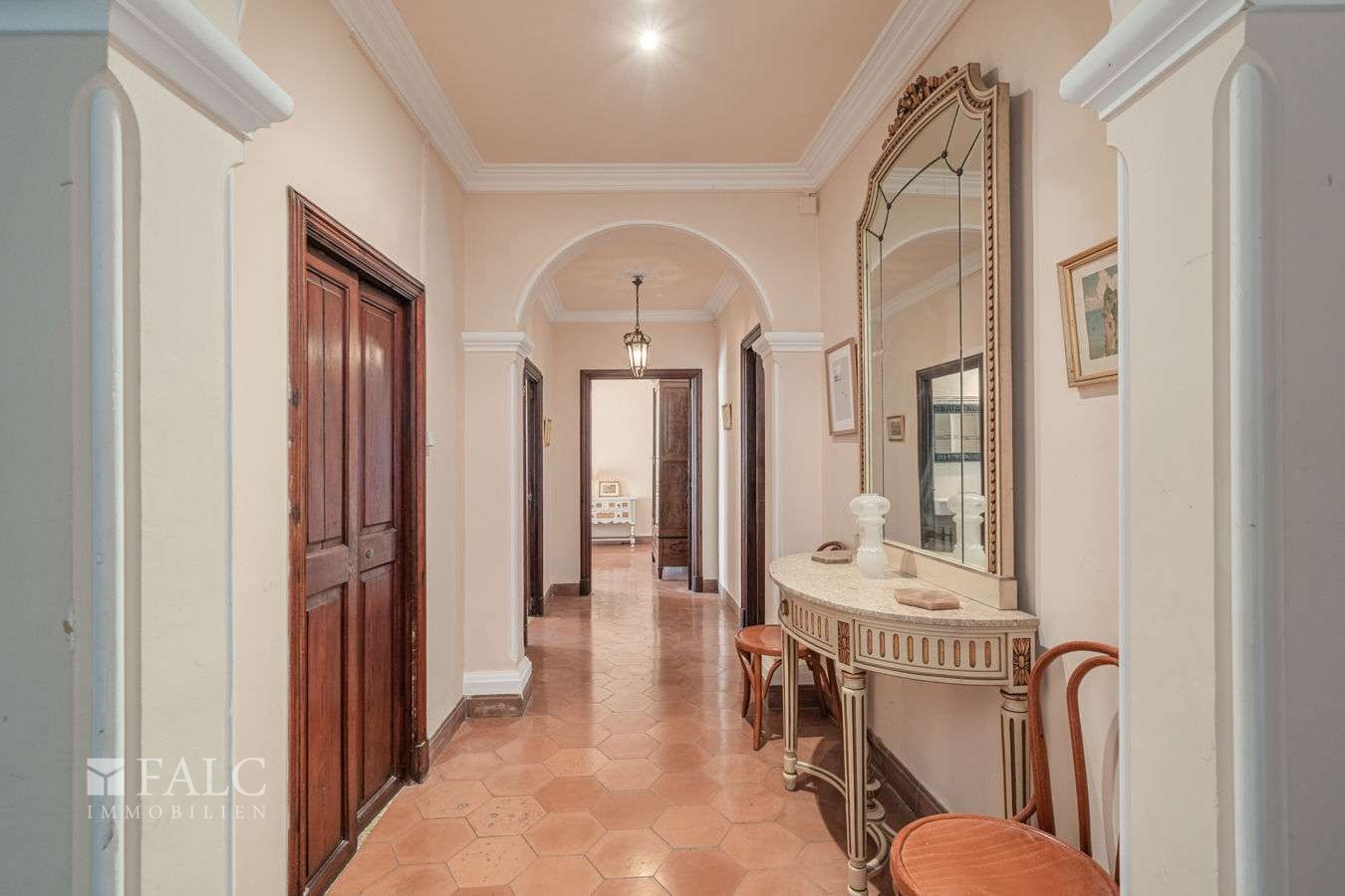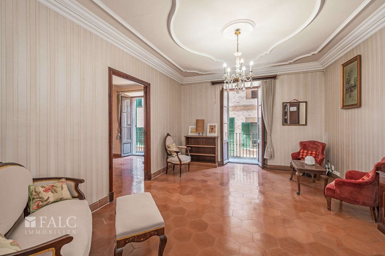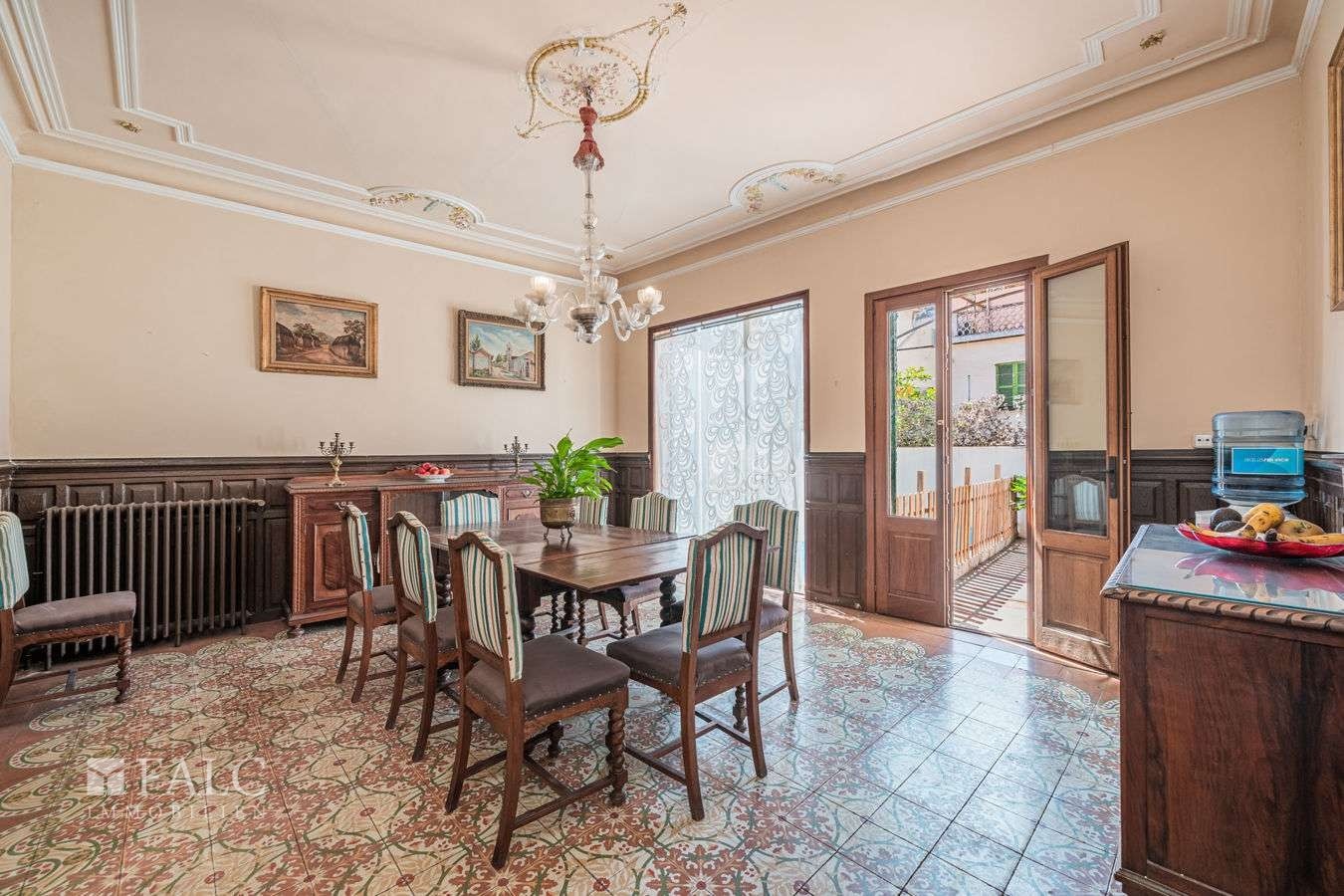 Esta casa señorial con café se encuentra en Sóller, a pocos pasos de la plaza principal, del centro histórico y de diversas comodidades locales. La propiedad de tres plantas cuenta con ascensor y aproximadamente 794 m² de superficie construida (unos 693 m² de superficie habitable).