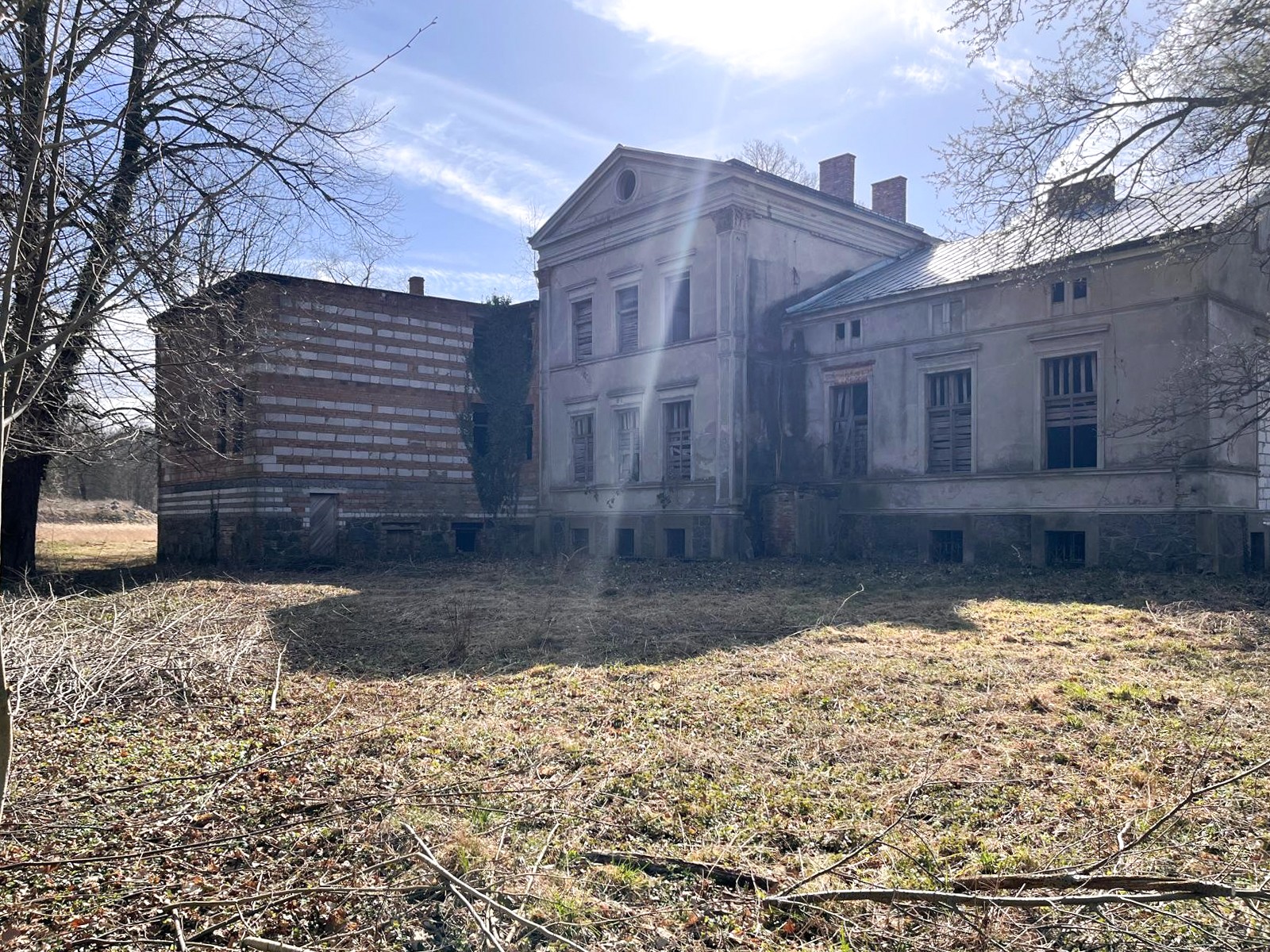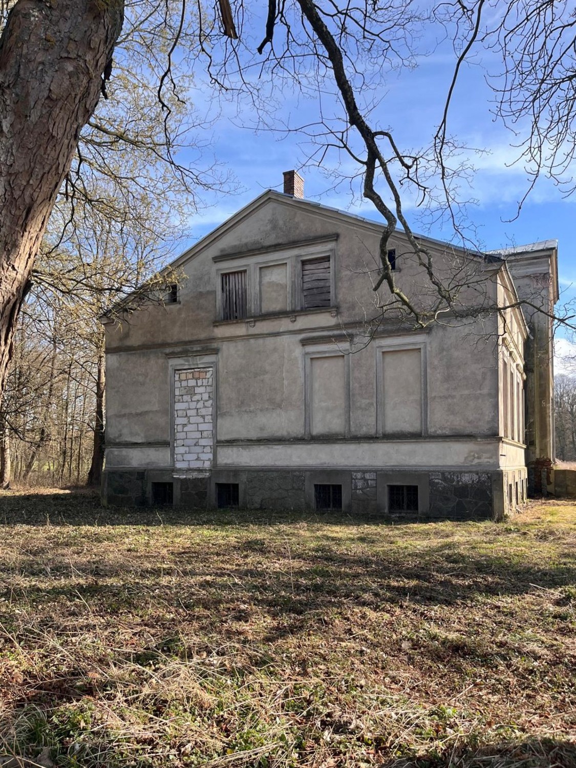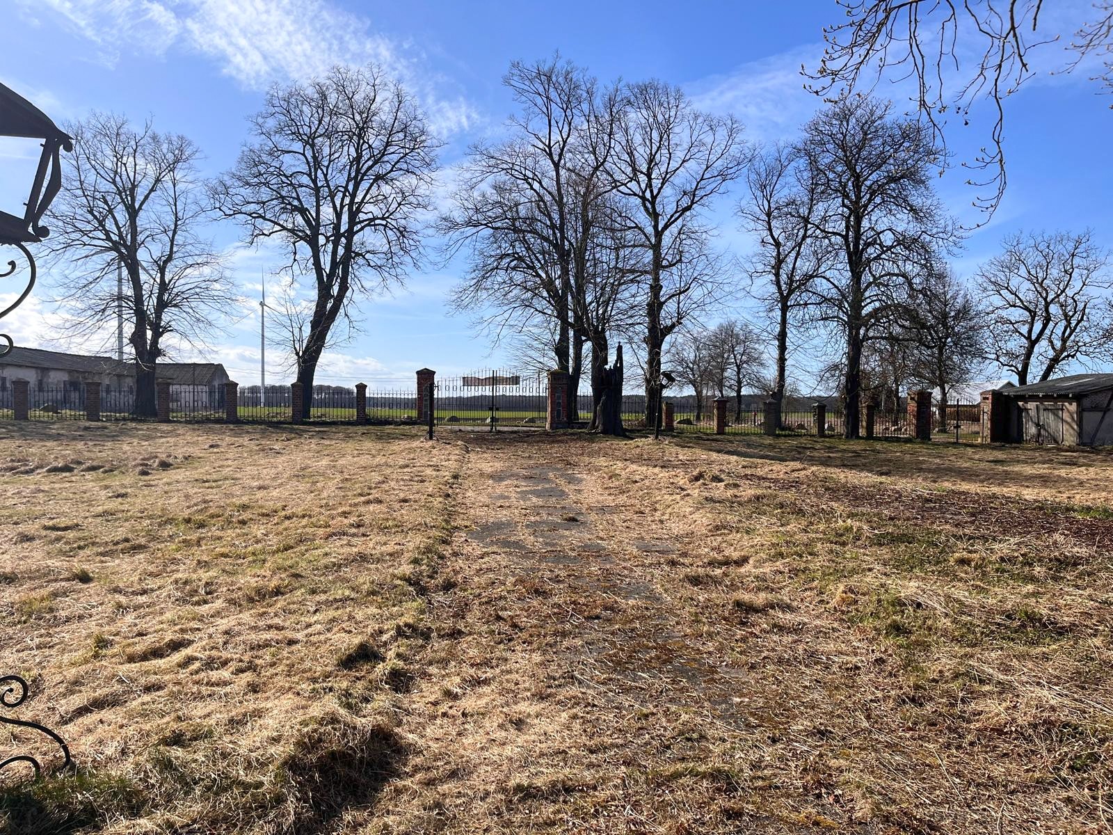 La propiedad se encuentra en las afueras del pueblo, dentro de un antiguo parque señorial con arbolado parcialmente conservado, principalmente hayas, tilos y carpes. También dispone de un estanque y un antiguo edificio de servicios.
