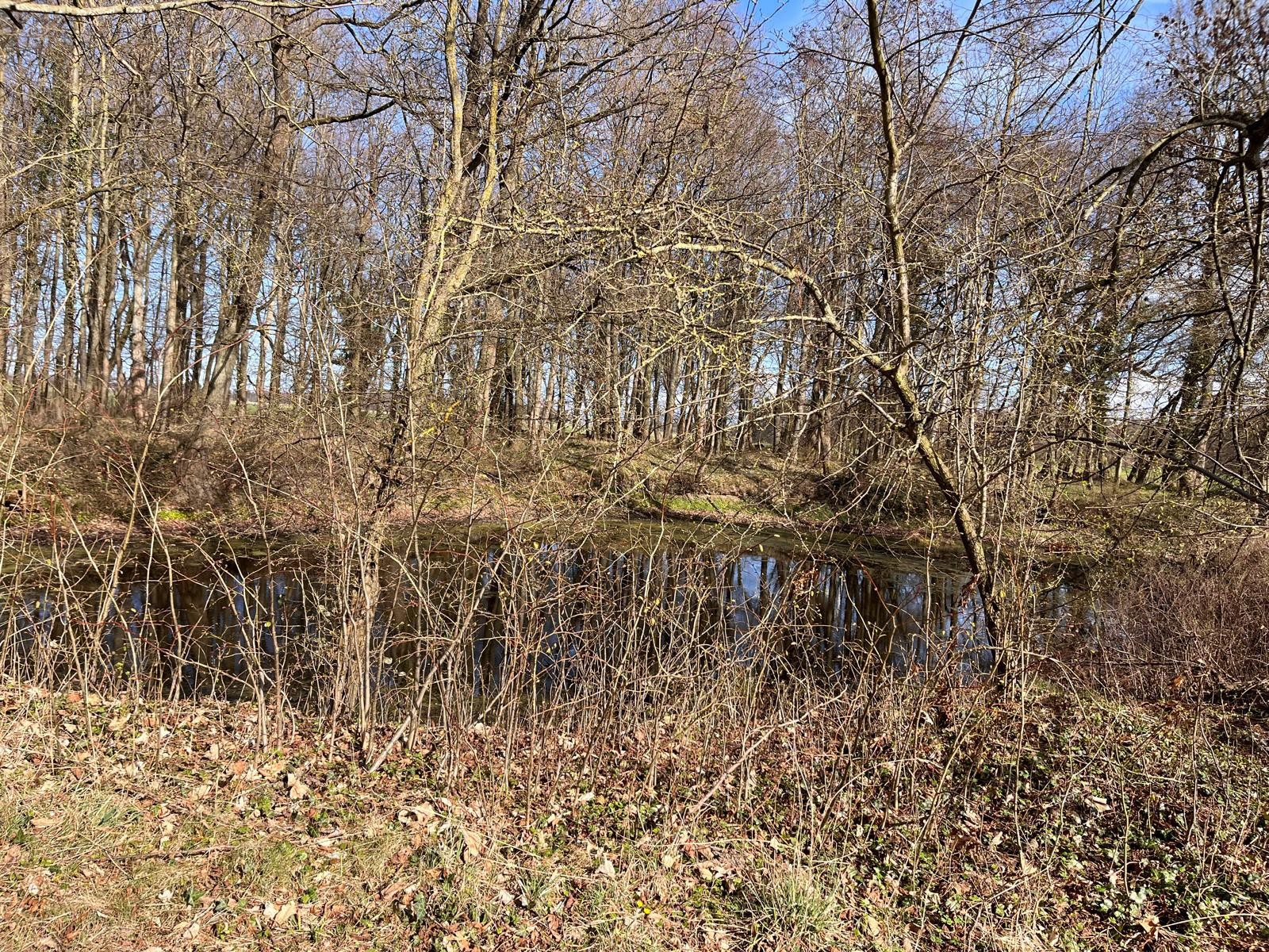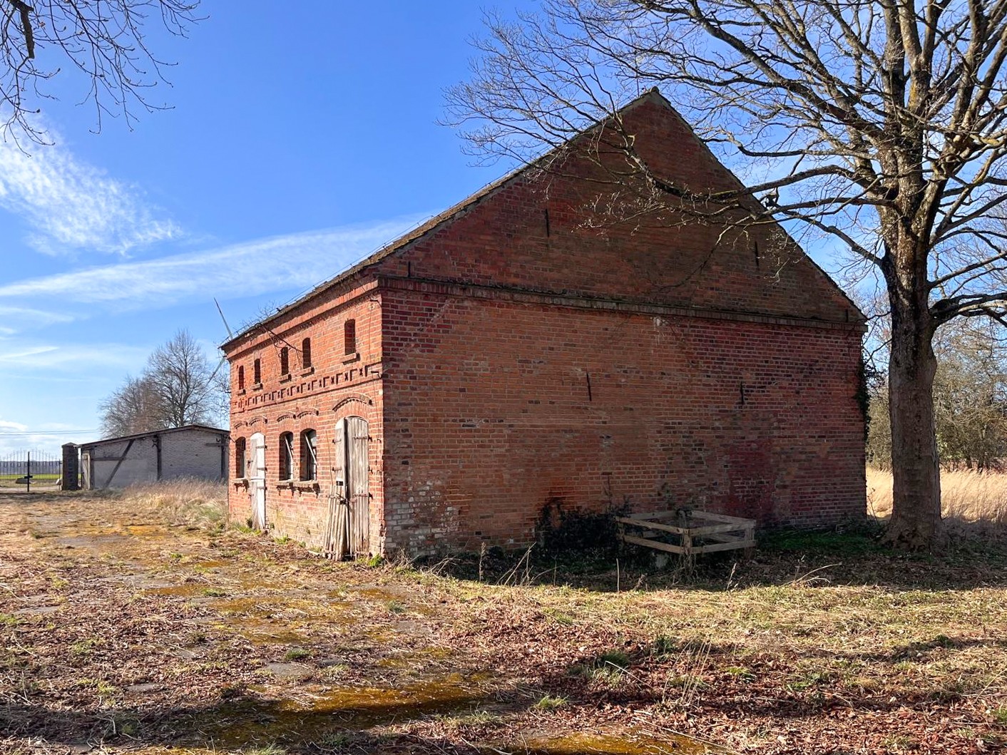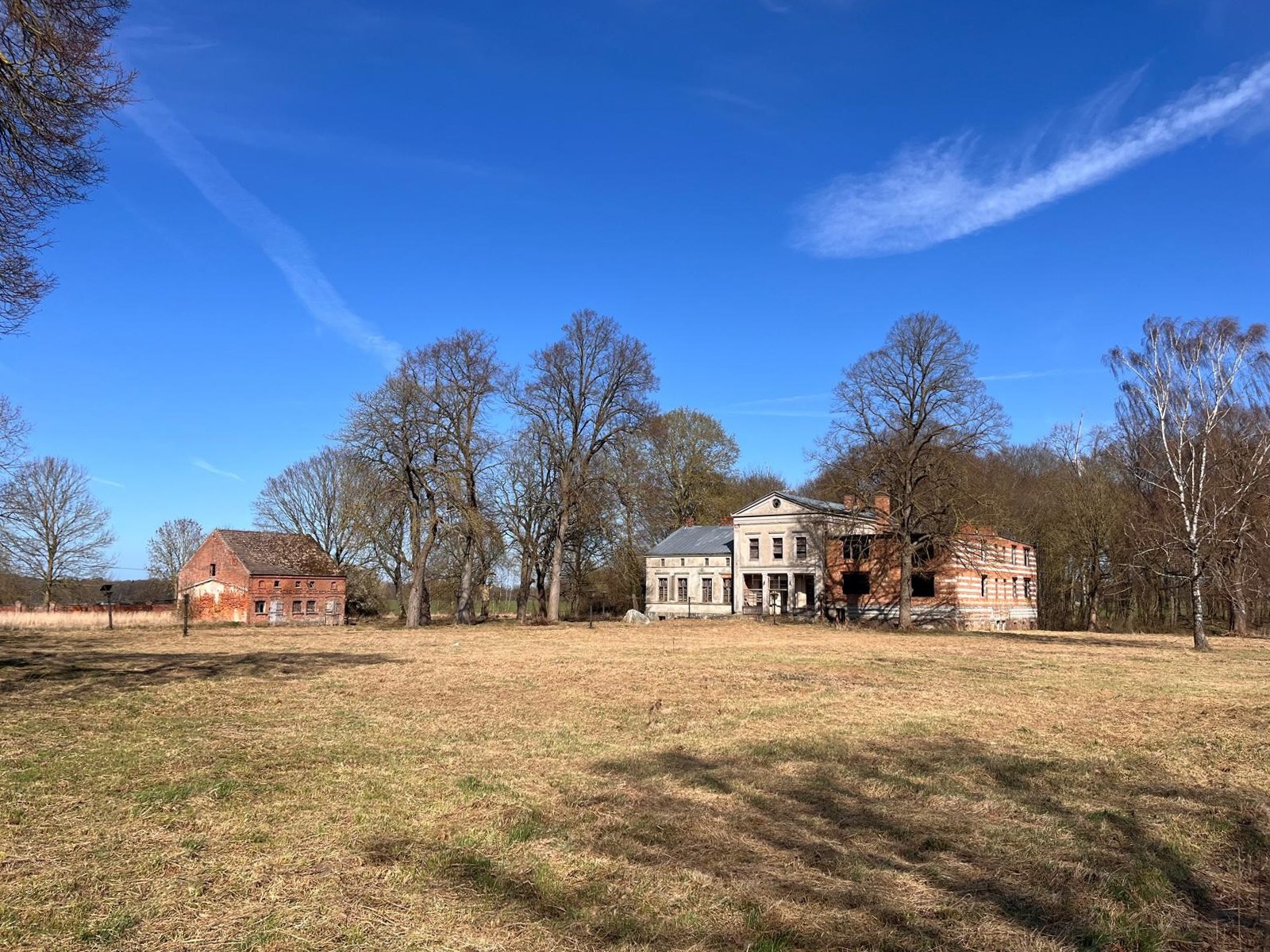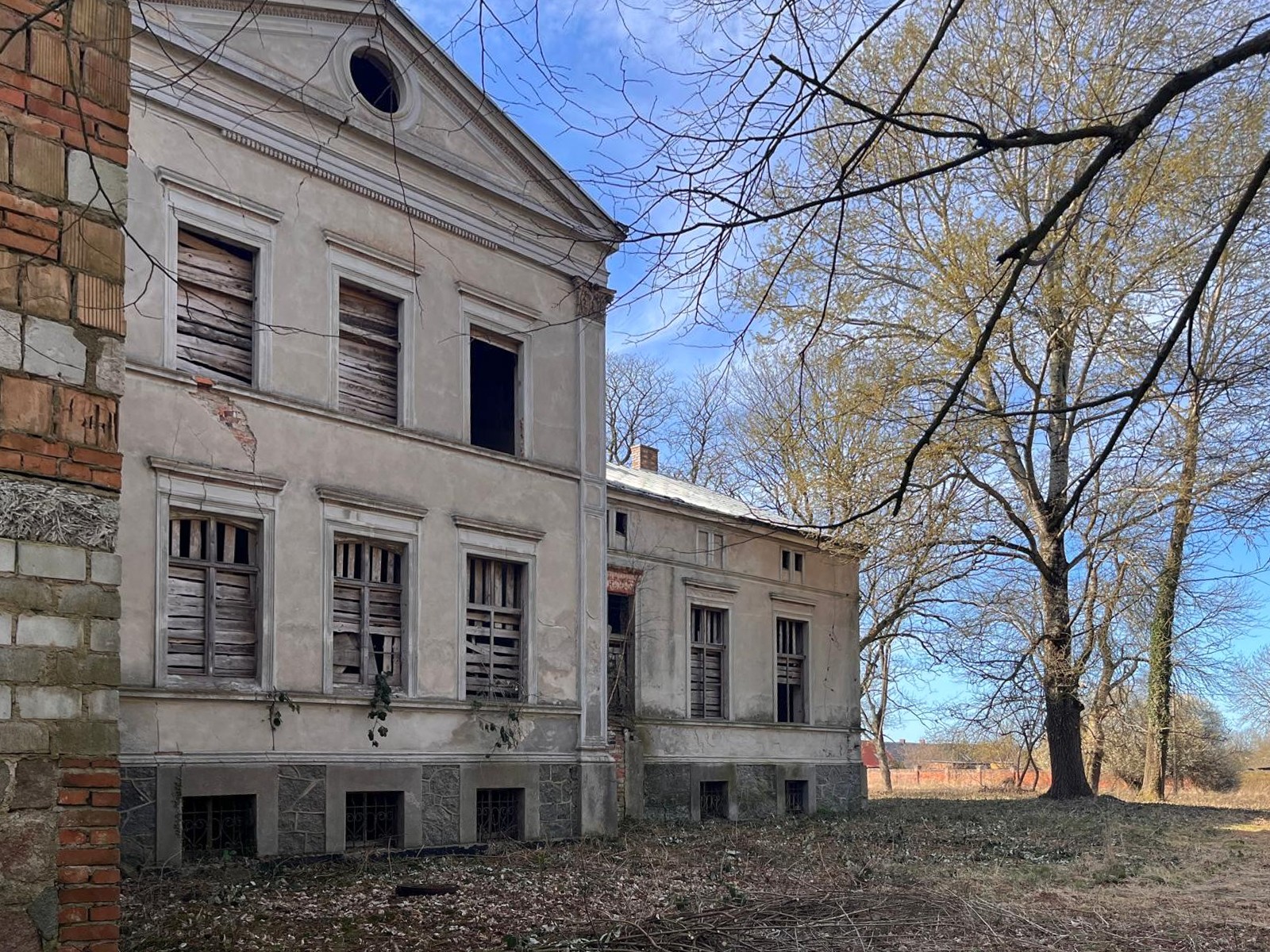 La propiedad se encuentra en las afueras del pueblo, dentro de un antiguo parque señorial con arbolado parcialmente conservado, principalmente hayas, tilos y carpes. También dispone de un estanque y un antiguo edificio de servicios.