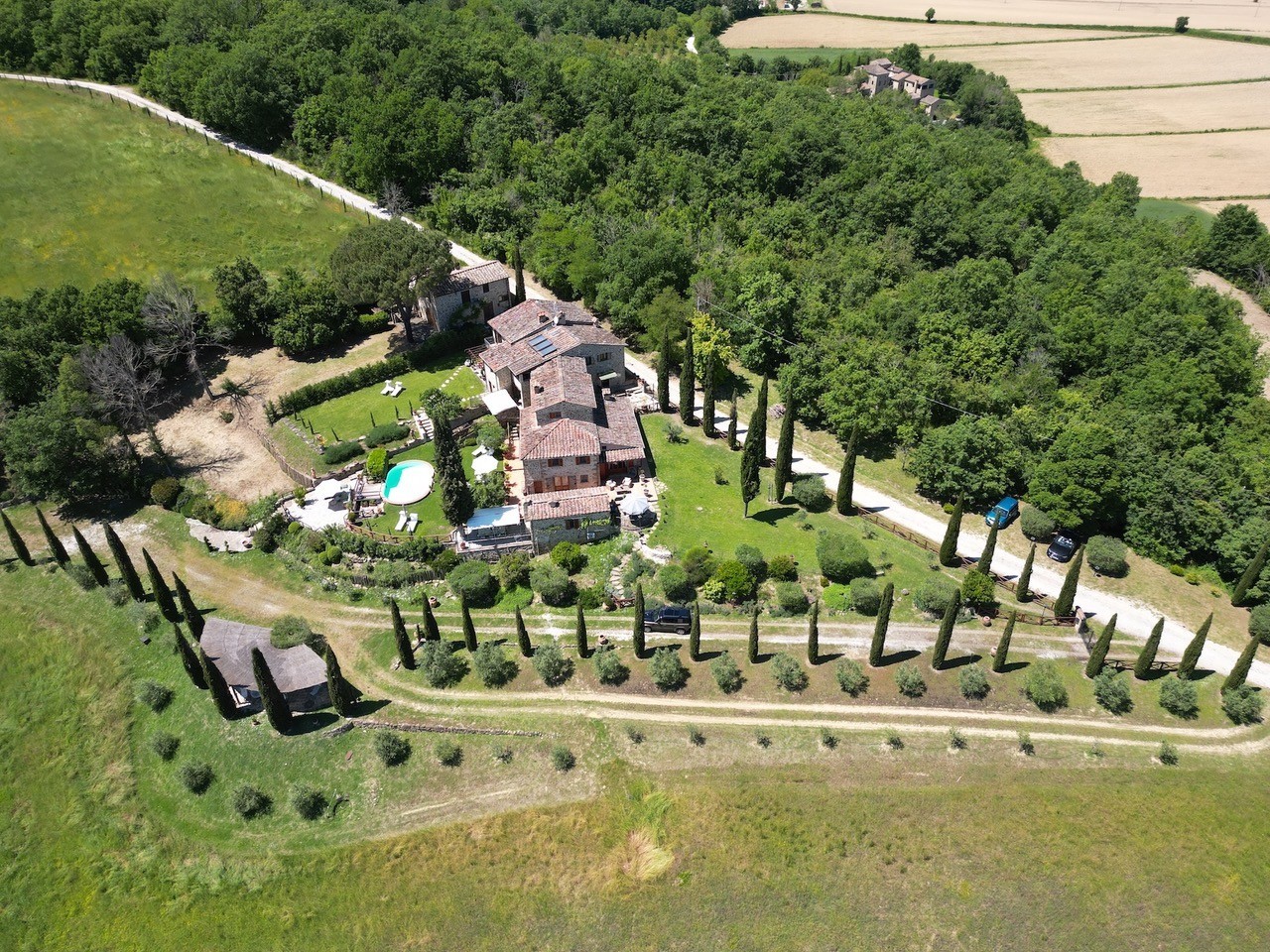 Finca panorámica en Umbría con villa, casas de invitados y olivar