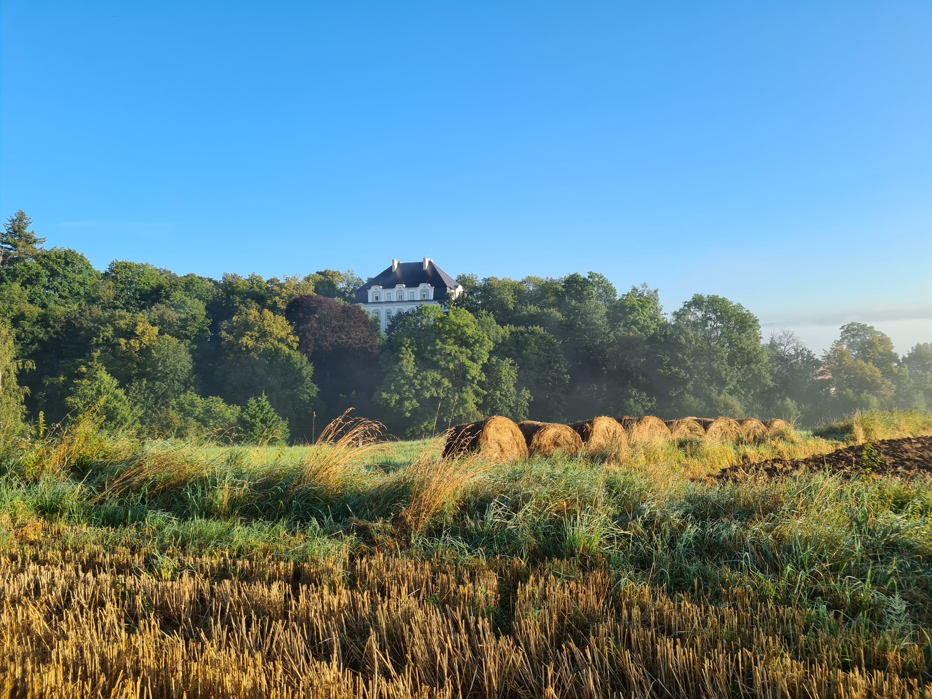 Las dependencias de la casa solariega han sido aseguradas y están a la espera de ser reconvertidas según los planes e ideas del propietario. También hay 2 apartamentos de servicio en la antigua dependencia señorial, una parcela con invernadero y tierras de cultivo/pradera. En total, la propiedad tiene una superficie de 4,5 hectáreas.