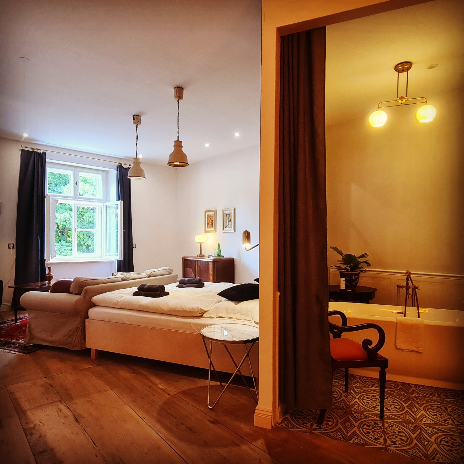 El castillo de Pischkowitz es una verdadera joya del antiguo condado de Glatz, que ha sido cuidadosa y ejemplarmente traído al siglo XXI. Un lugar para entusiastas y personalidades creativas. Gracias a unas instalaciones modernas y actuales, calefacción por suelo radiante en la planta baja (preparada para una bomba de calor), una distribución bien pensada de las habitaciones y los cuartos de baño, espacio para un ascensor y un edificio independiente con terraza mirador, ofrece un amplio abanico de posibilidades para otros conceptos de negocio y el escenario perfecto para vivir, trabajar y relajarse con estilo.