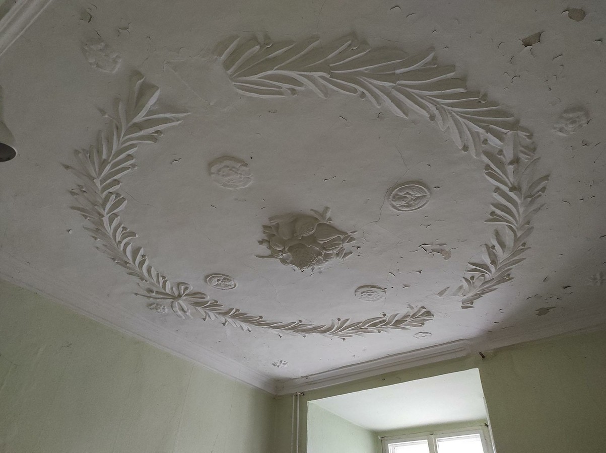 Las restauraciones se han realizado con atención al detalle; un ejemplo destacado es la impresionante estructura del tejado. Muchos elementos originales, como techos de estuco, suelos de parquet y puertas, se conservan y solo requieren reparaciones parciales.