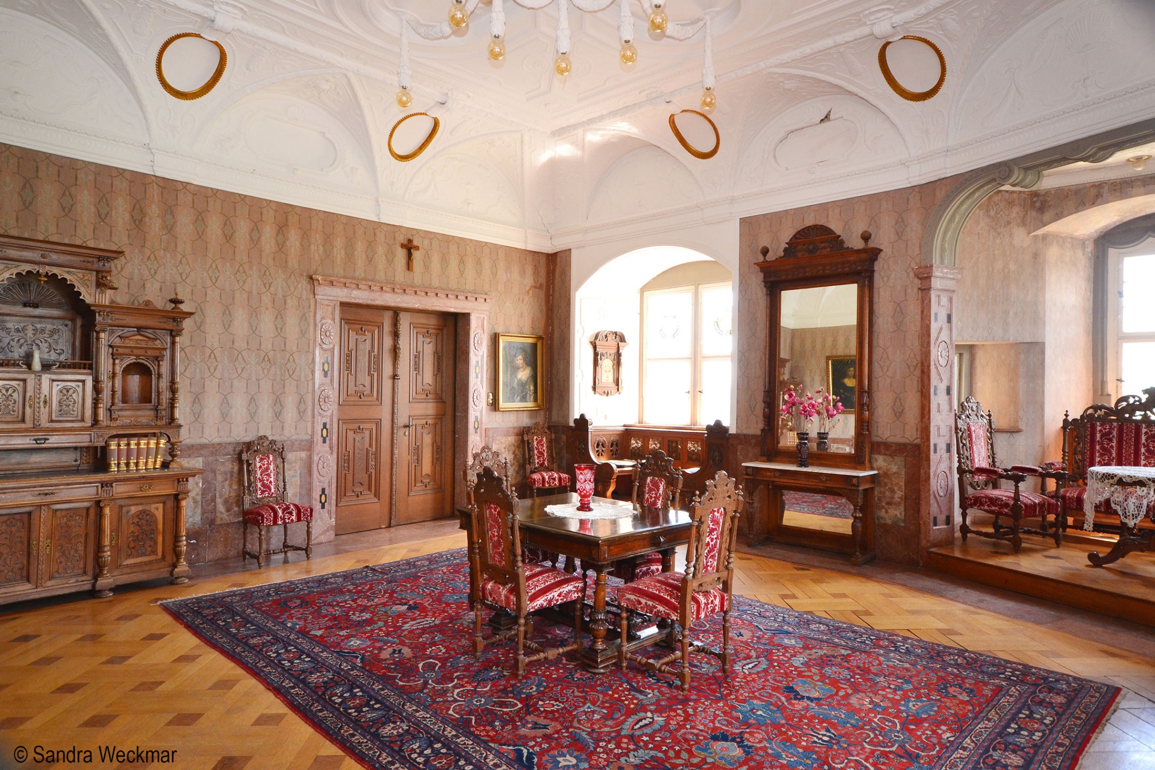 El castillo perteneció a la familia Sachs, reconocidos industriales de Schweinfurt, quienes realizaron una extensa renovación en estilo histórico-romántico. Estas transformaciones siguen marcando el carácter de los espacios interiores, diseñados con gran riqueza y detalle.