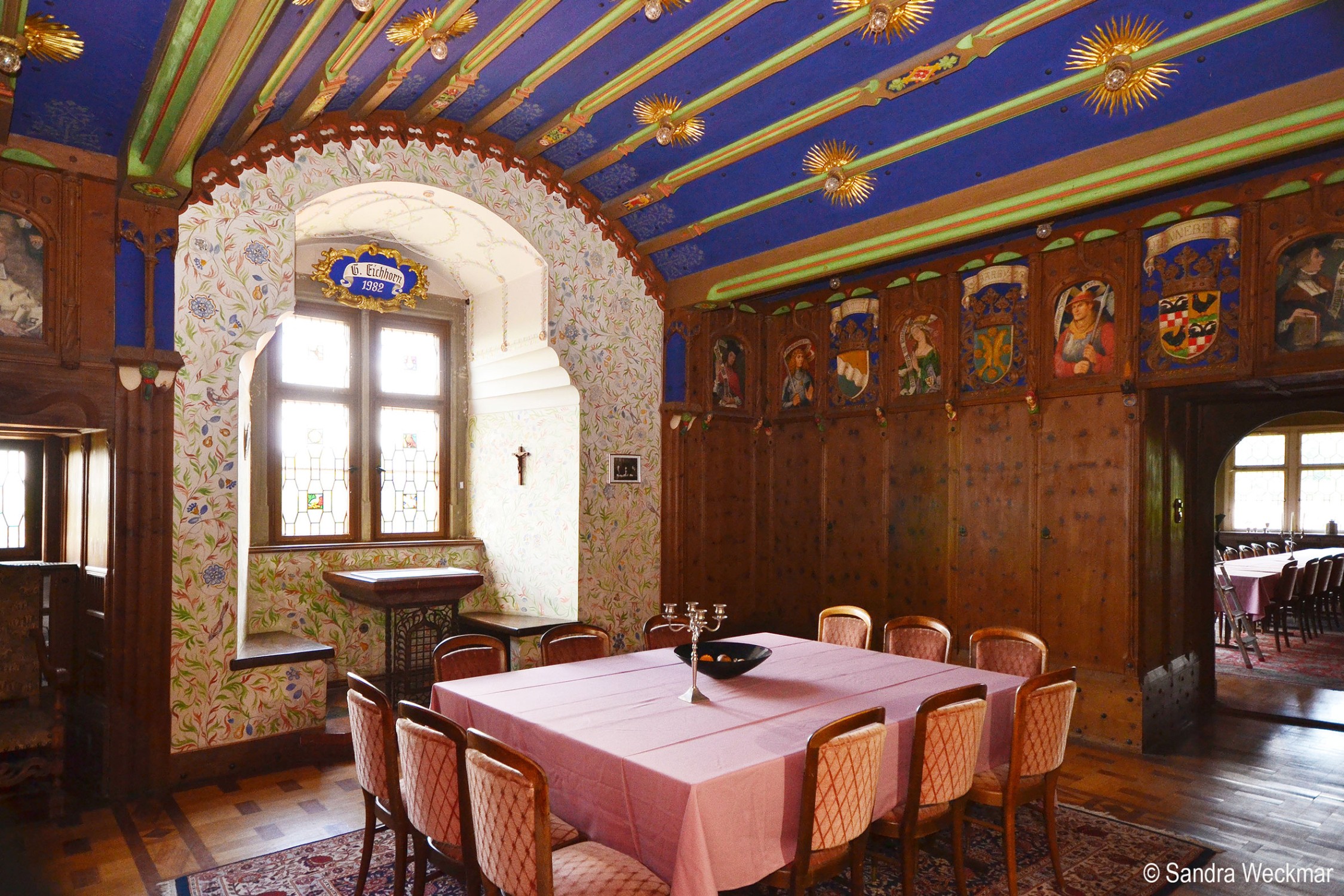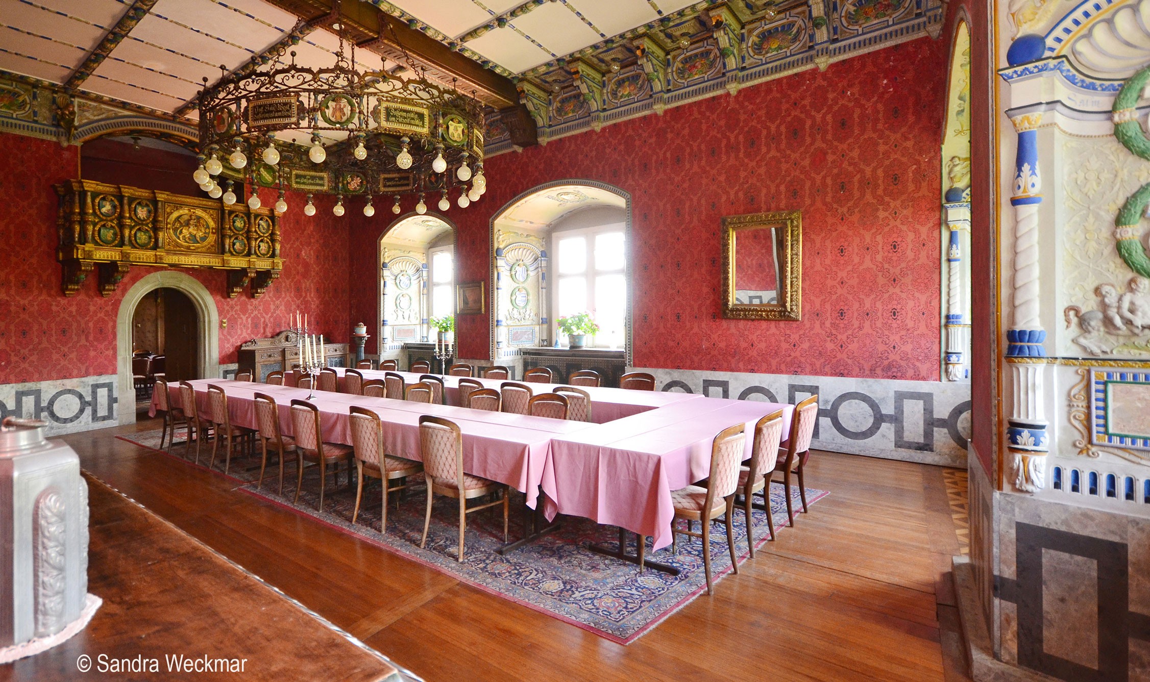 Hoy en día, el castillo es un monumento protegido y excepcional, único en su género. Cada sala fue concebida con un diseño individual por el arquitecto muniqués Franz Rank, según las ideas de Ernst Sachs.