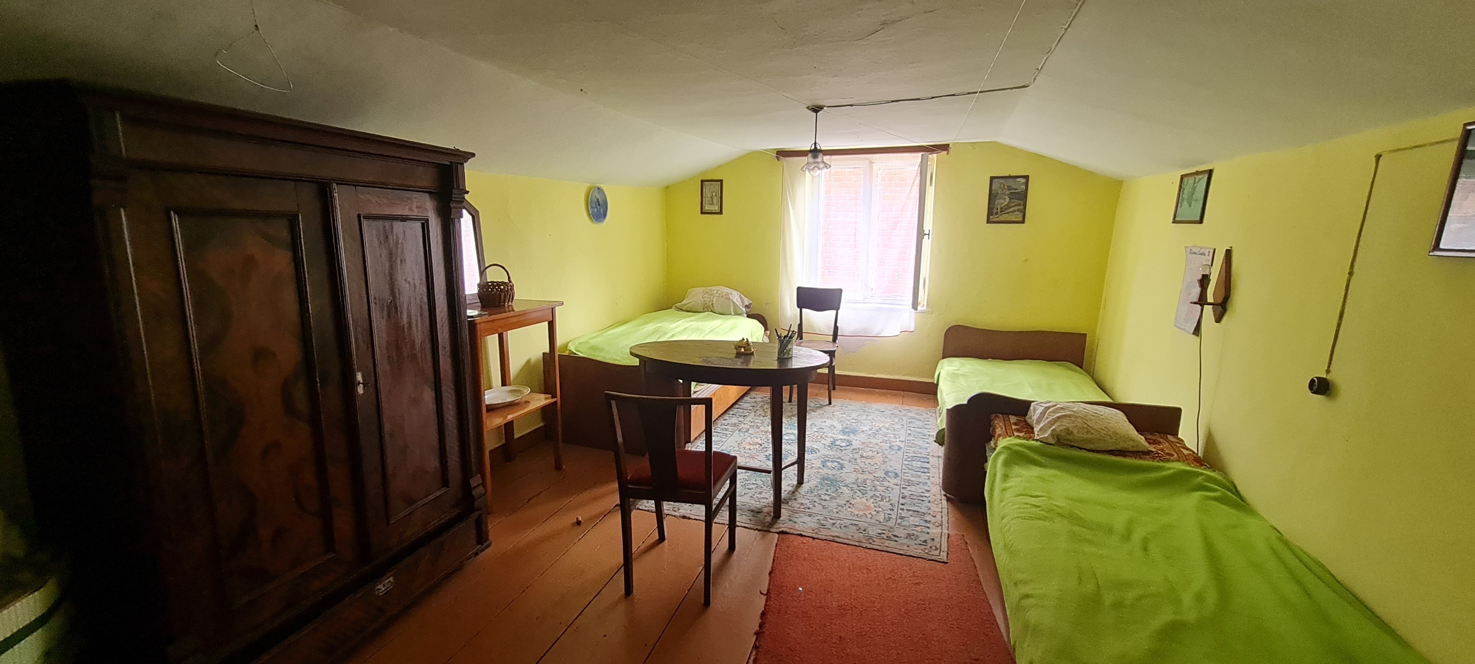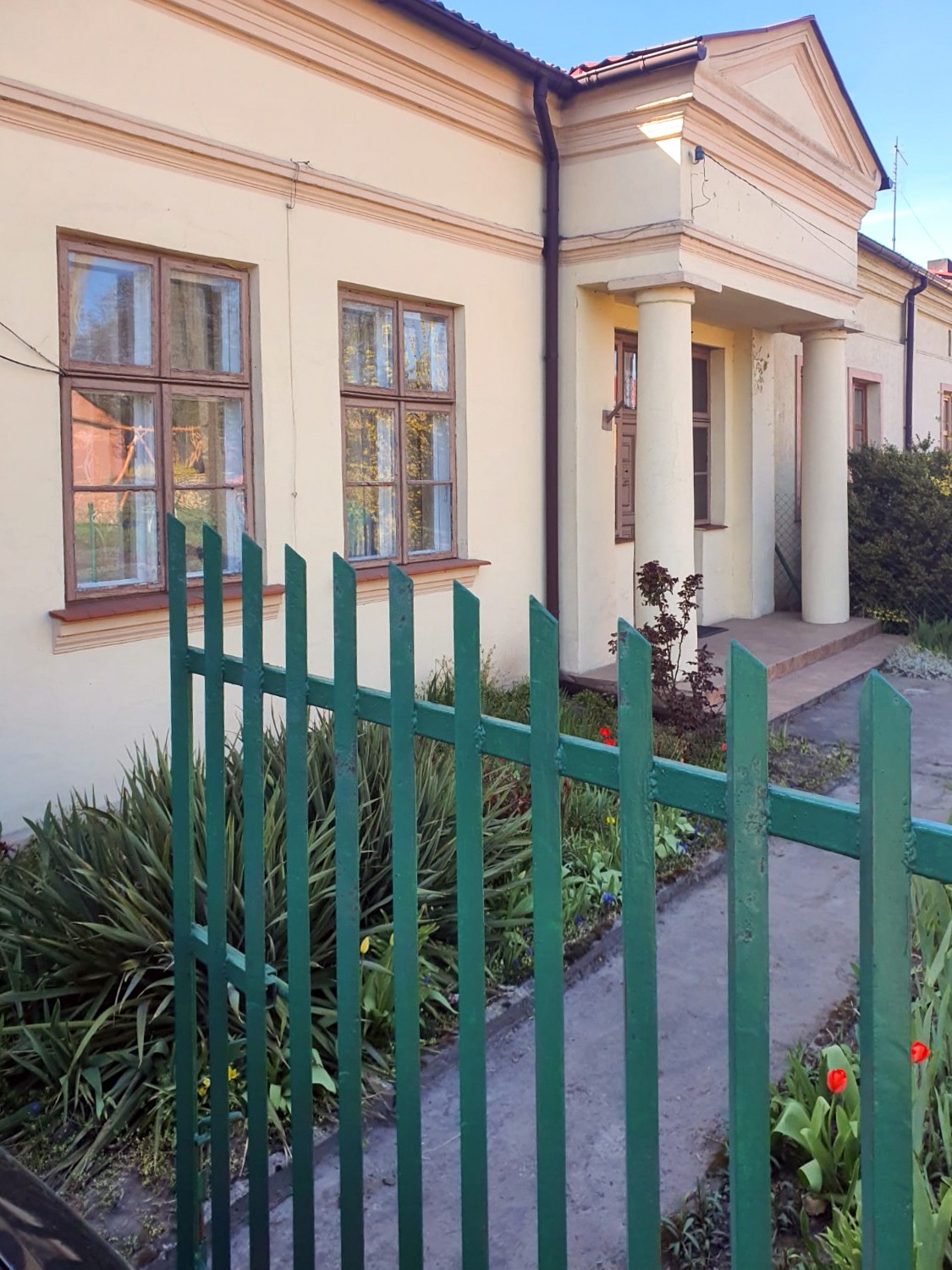 La casa fue construida en 1920 y originalmente servía como escuela con viviendas para profesores. Está realizada en mampostería de ladrillo macizo, enfoscada y pintada. Inscrita en el inventario de patrimonio, conserva detalles originales como cornisas, escaleras de madera y estancias de 3,5 metros de altura. El tejado a dos aguas, con estructura de madera, ha sido renovado y está cubierto con tejas metálicas.