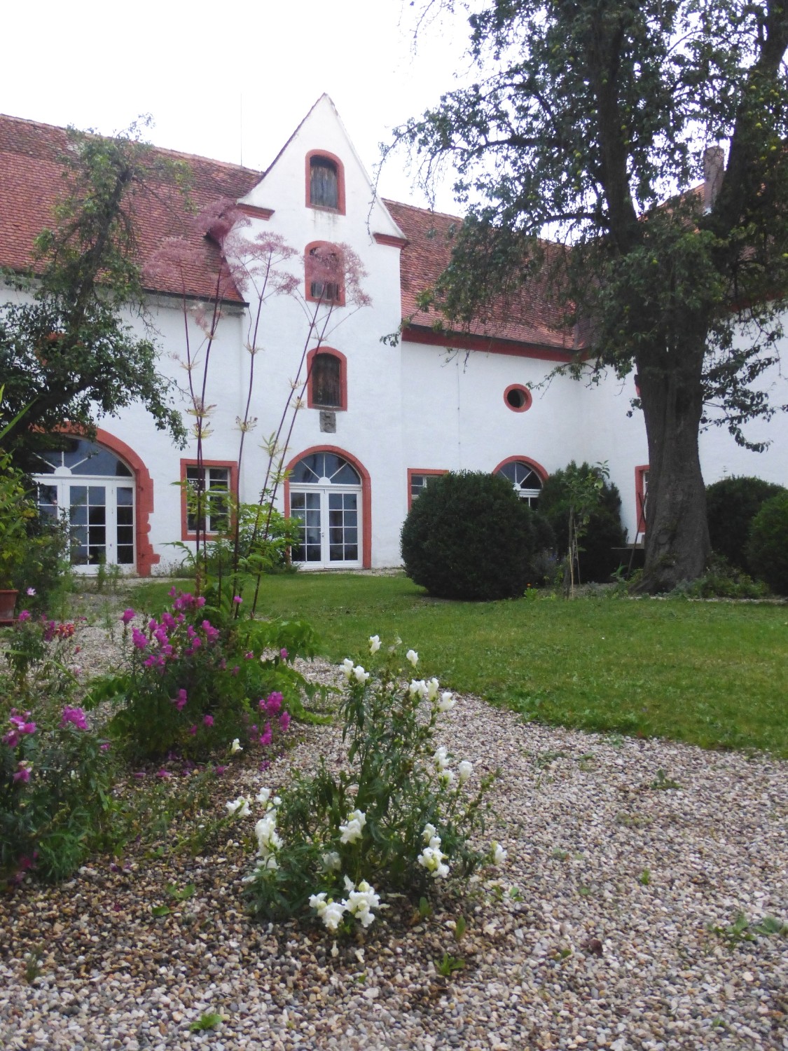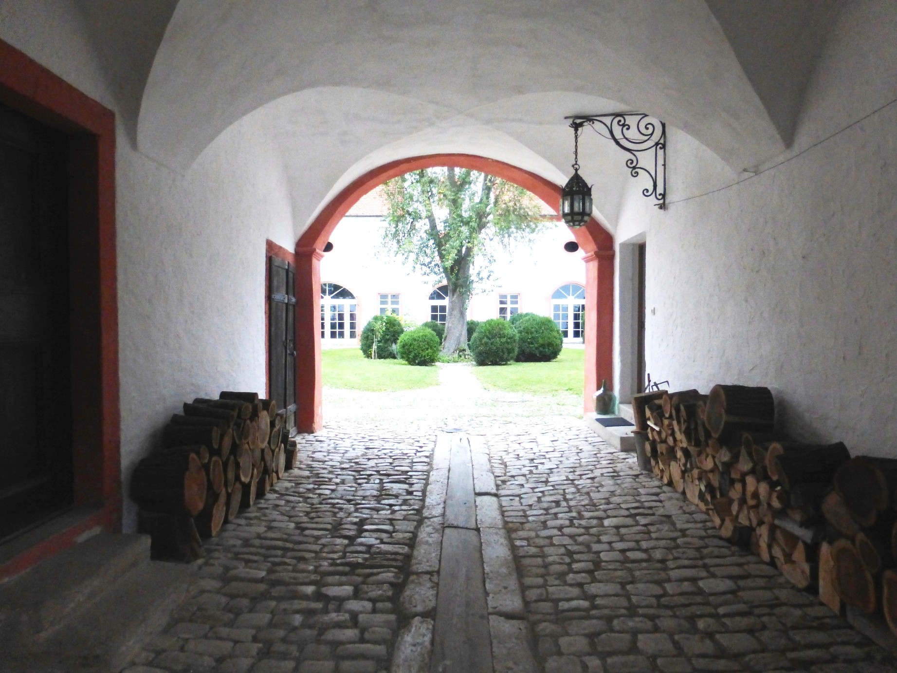 A través de la puerta del castillo se accede al hermoso patio interior inaccesible. Un gran manzano proporciona sombra en los días soleados en completa privacidad.