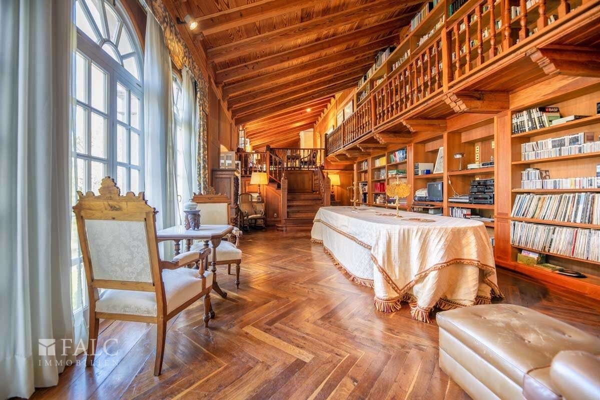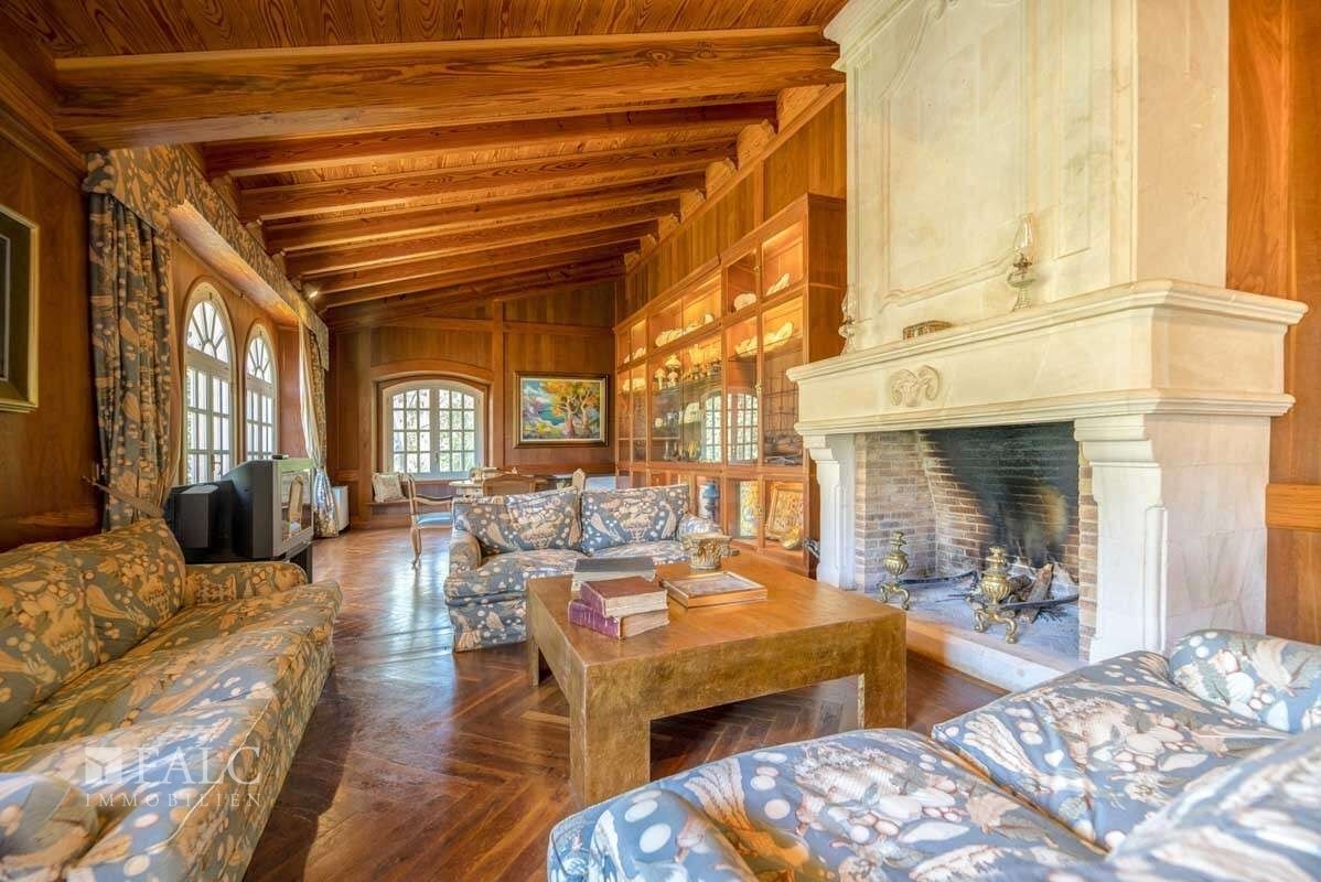 La propiedad incluye la casa principal, dos casas de invitados independientes y otros edificios auxiliares, entre ellos un invernadero y garajes. La superficie construida total es de aproximadamente 1.522 m².