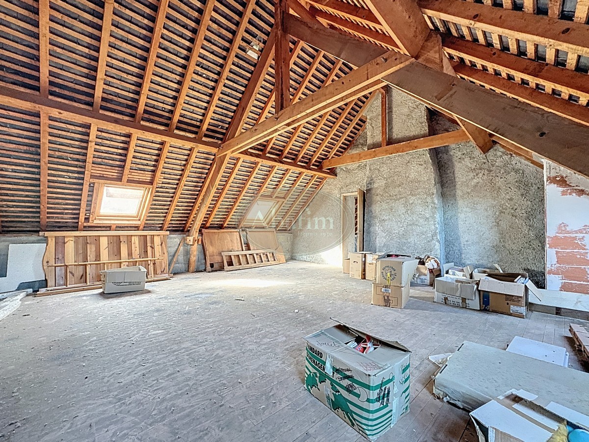 Una escalera de madera original conduce al piso superior con cinco habitaciones en total, incluyendo tres dormitorios adicionales, uno con vestidor y la opción de añadir un baño privado. Desde aquí se abre una larga galería con vistas impresionantes al Pic du Midi y al Bédat. Otra escalera lleva al desván, que ofrece más de 65 m² de espacio habitable adicional listo para ser desarrollado.