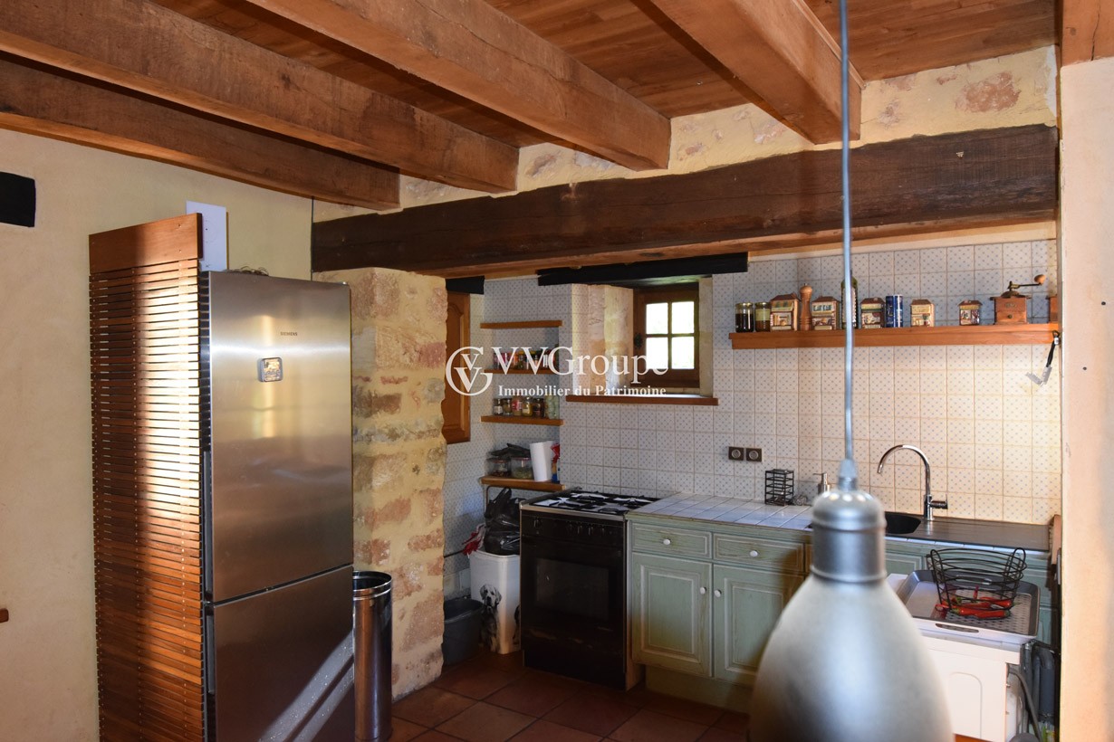 En venta: una casa de campo del siglo XVII renovada, con aproximadamente 97 m² de superficie habitable, ubicada en posición elevada sobre 2,43 hectáreas. La propiedad incluye un garaje, bosque privado y un pozo. Conocida como “Ostal”, la casa se encuentra aislada en la Bouriane, a 6 km de Gourdon, en la frontera entre Lot y Périgord.
