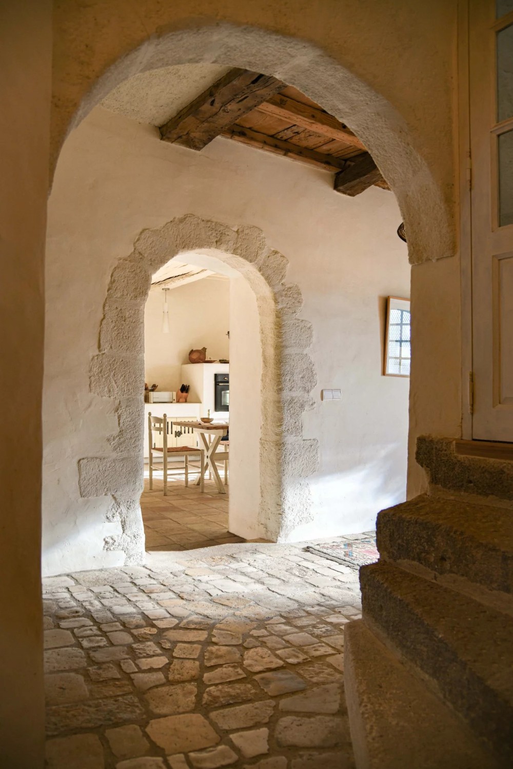 Esta excepcional casa revela su alma histórica a través de relictos auténticos: chimeneas de piedra, suelos de azulejos patinados por el tiempo, techos franceses, una escalera de caracol, antiguos palomares y la fachada remodelada en el siglo XVIII, que refleja un rico y bien conservado patrimonio.