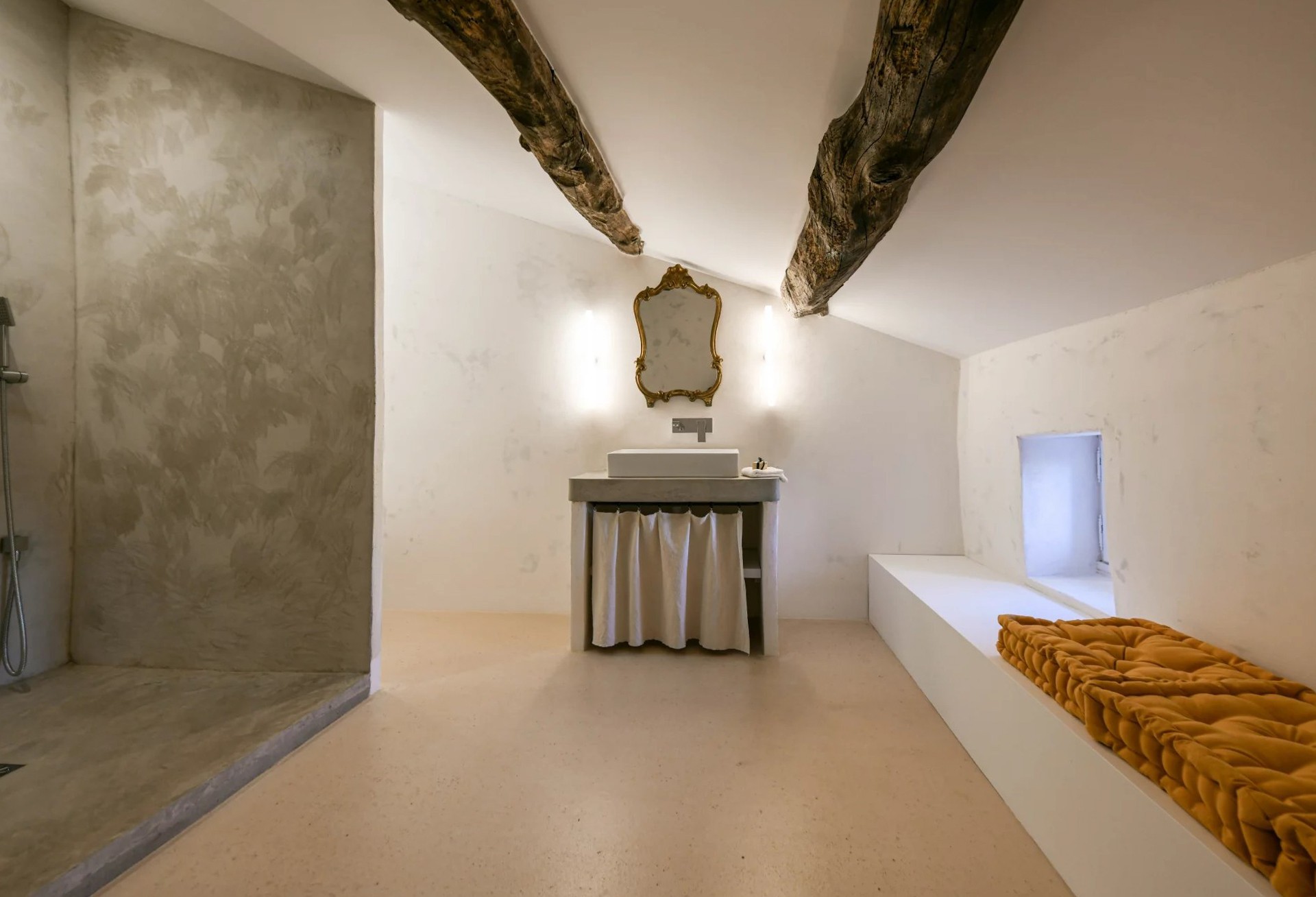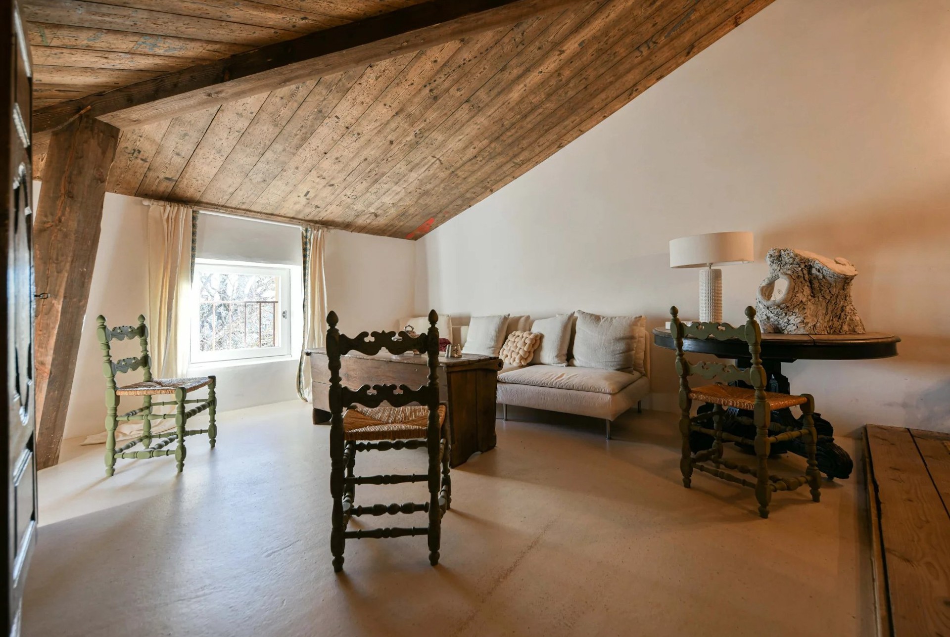 Durante la rehabilitación se han conservado los elementos arquitectónicos originales, como los techos con vigas de madera a la vista y los suelos de terracota antigua. La vivienda dispone de climatización centralizada.