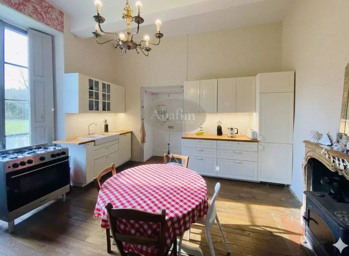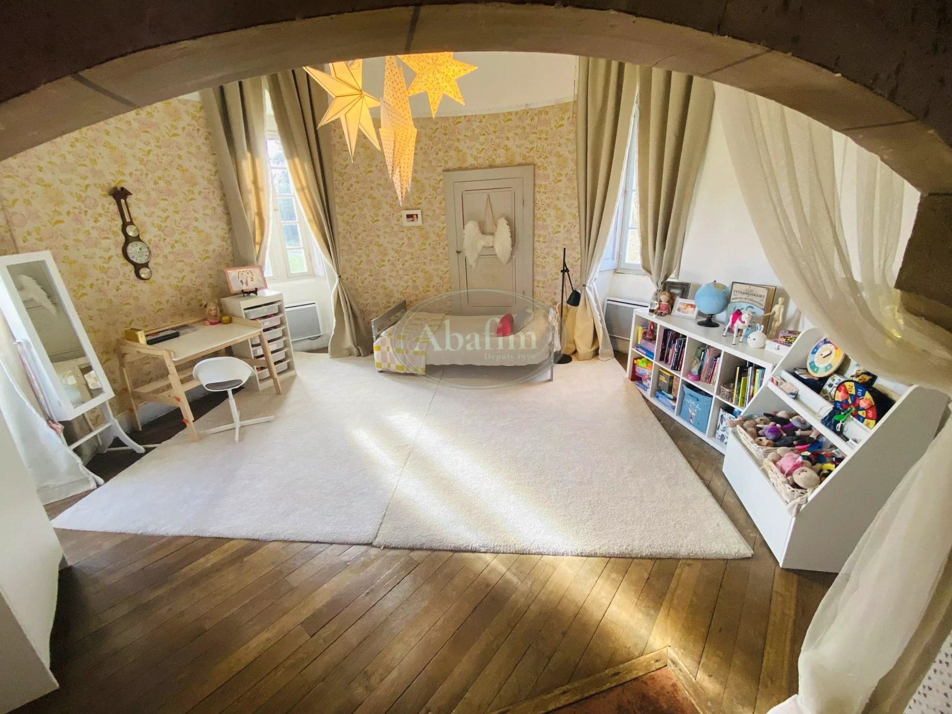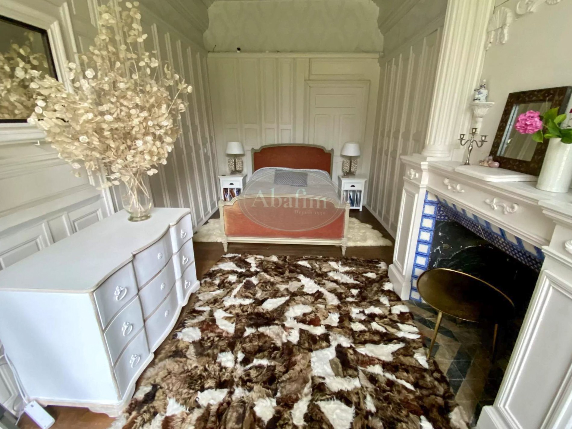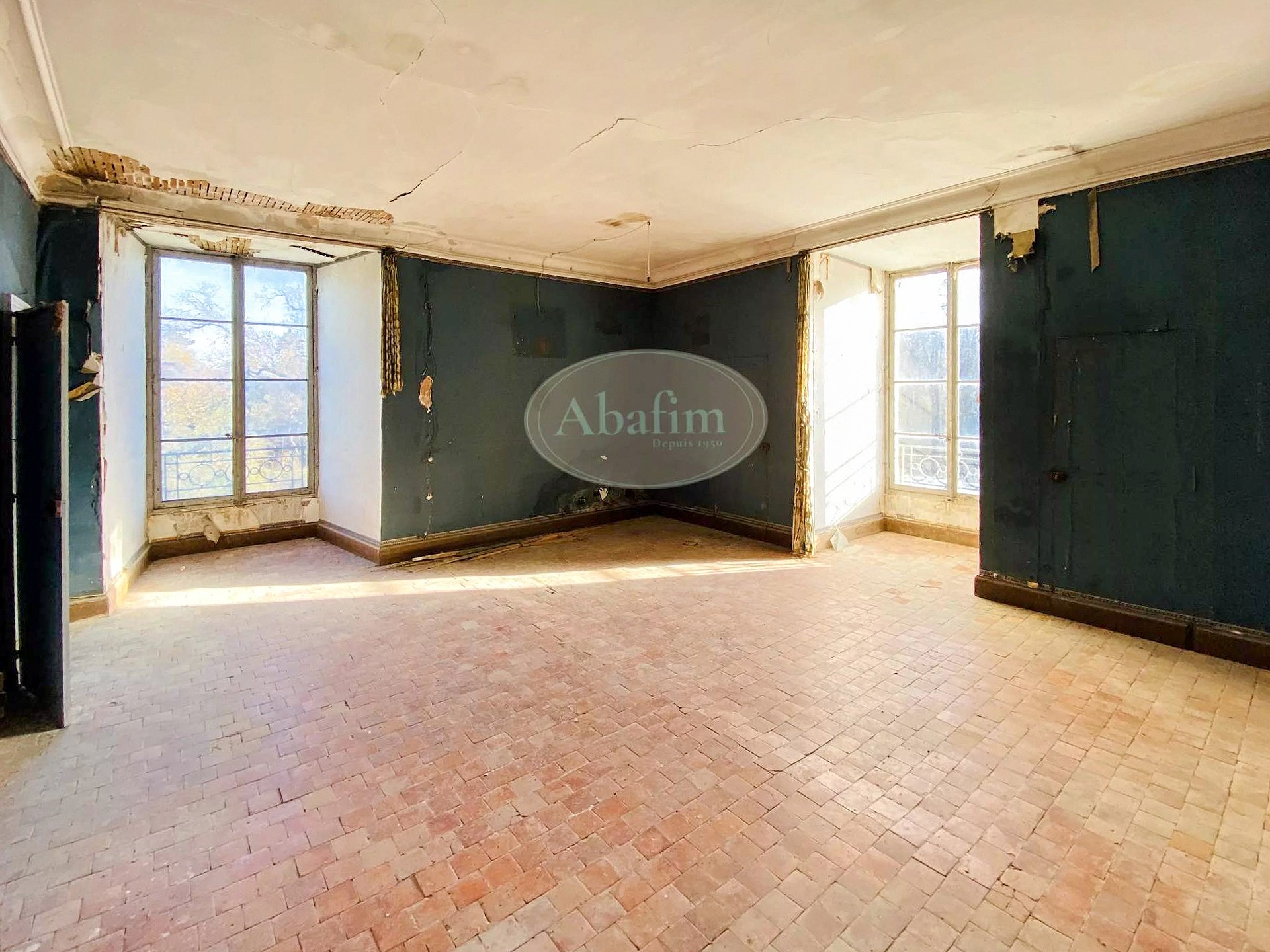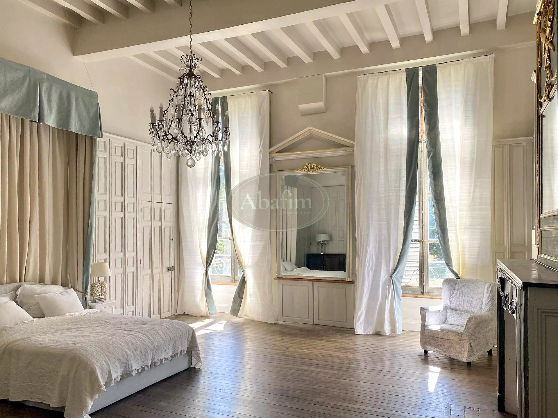 El edificio principal ofrece más de 2.000 metros cuadrados de superficie. Un vestíbulo central con suelos de terracota y revestimientos de madera da acceso a las estancias representativas. Dos salones de gala de aproximadamente 90 metros cuadrados cada uno estructuran la planta baja: el primero con una chimenea monumental suelos de parquet de roble y techo artesonado y el segundo con columnas talladas paneles de madera y tapices de las familias fundadoras. Este último se abre al parque mediante una gran escalinata. Los techos de más de cinco metros de altura y las numerosas ventanas generan espacios luminosos y equilibrados. Un salón completamente revestido en madera de 45 metros cuadrados cierra la enfilada.