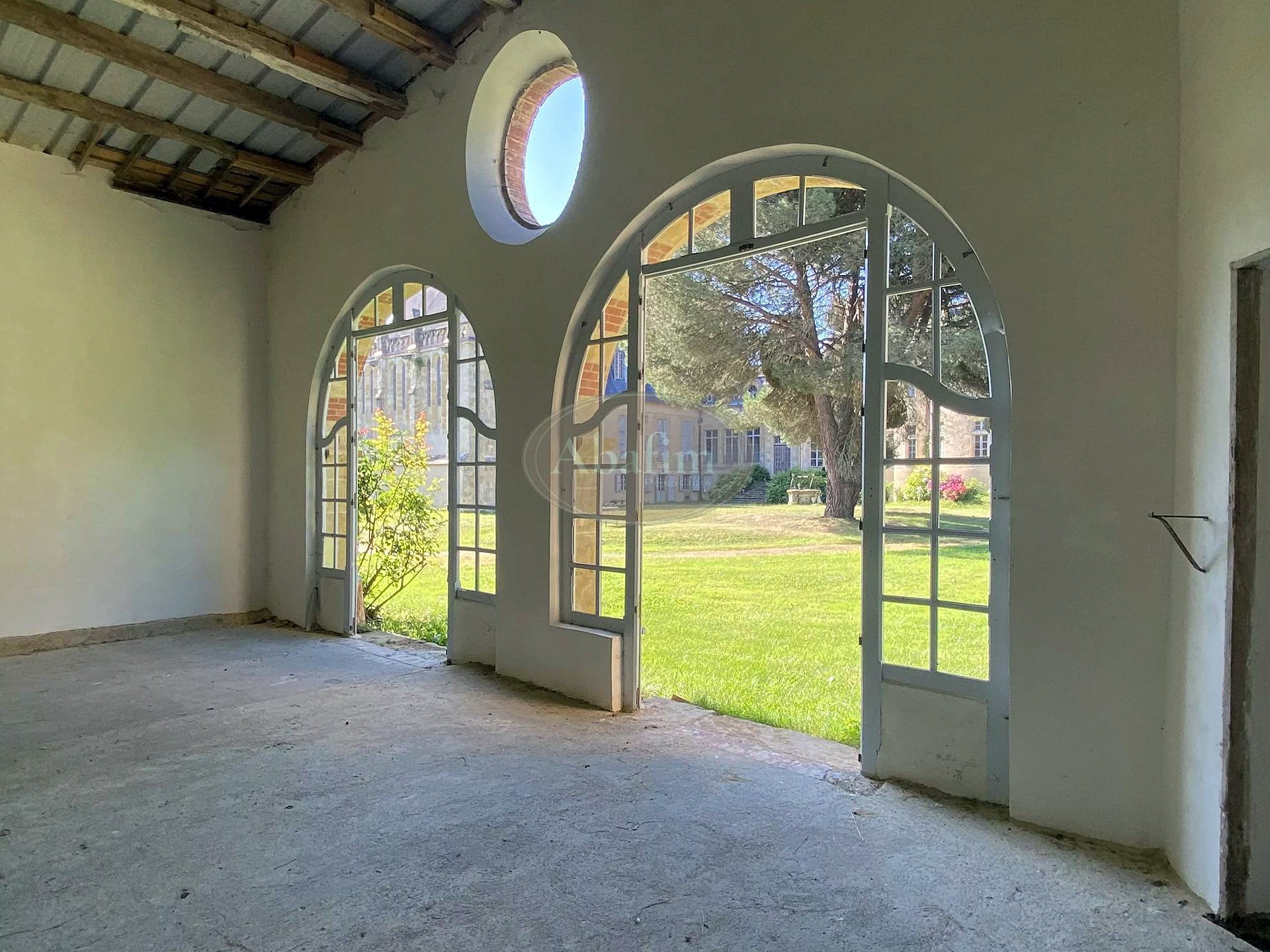 En el corazón del paisaje ondulado del Gers se alza este conjunto histórico catalogado como Monumento Histórico que se extiende sobre 7,6 hectáreas. La propiedad reúne el palacio principal una capilla neogótica varios edificios anexos zonas boscosas y un estanque.