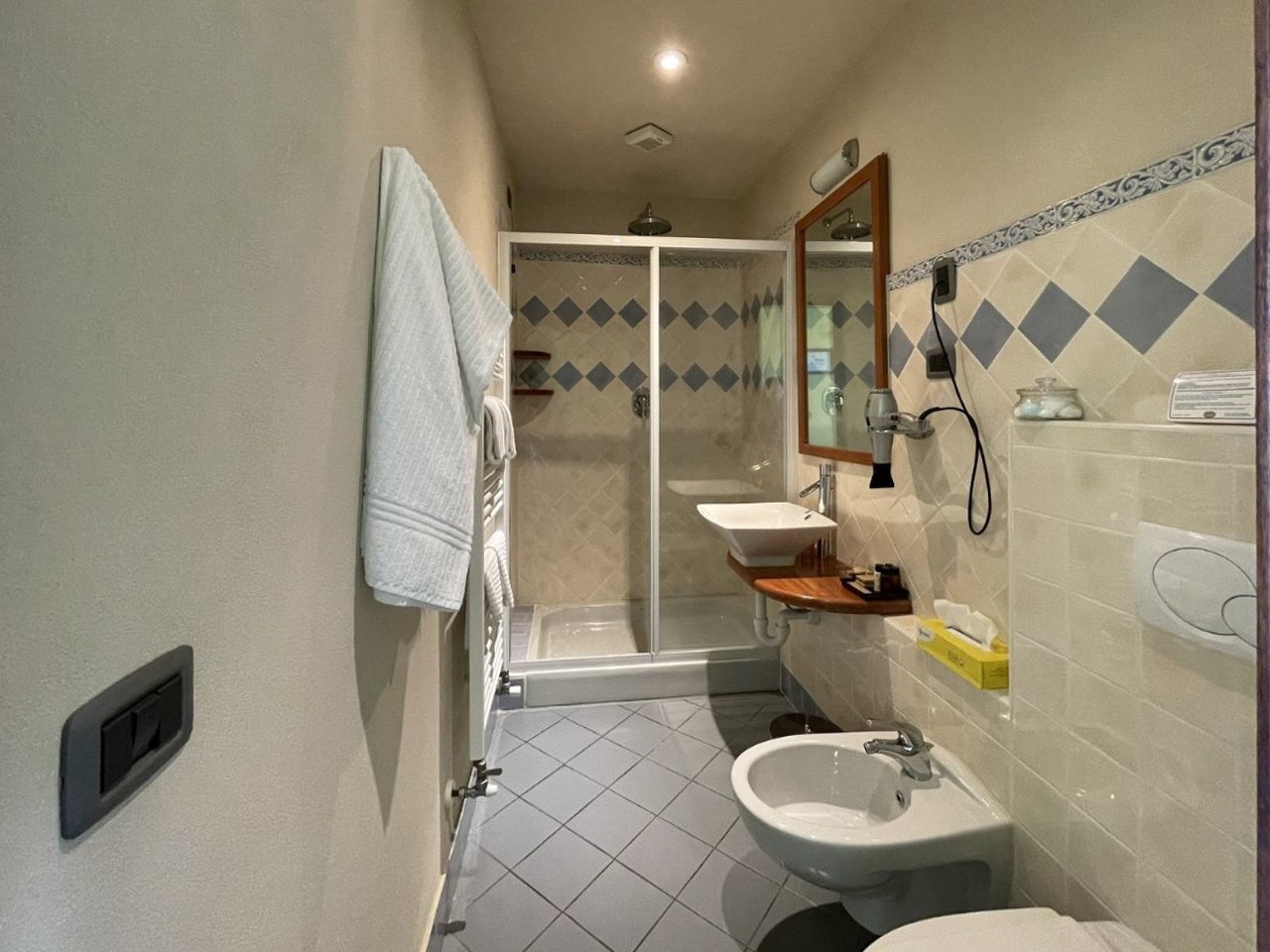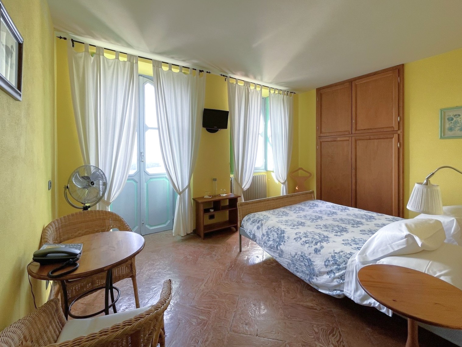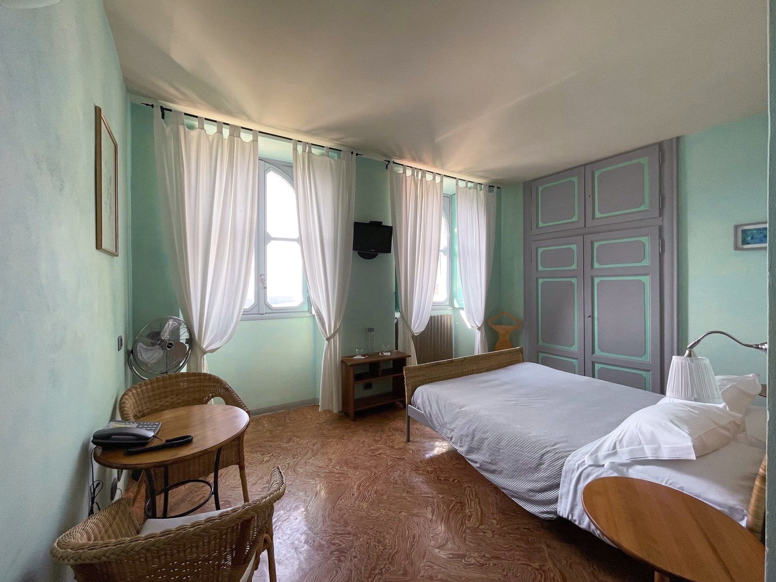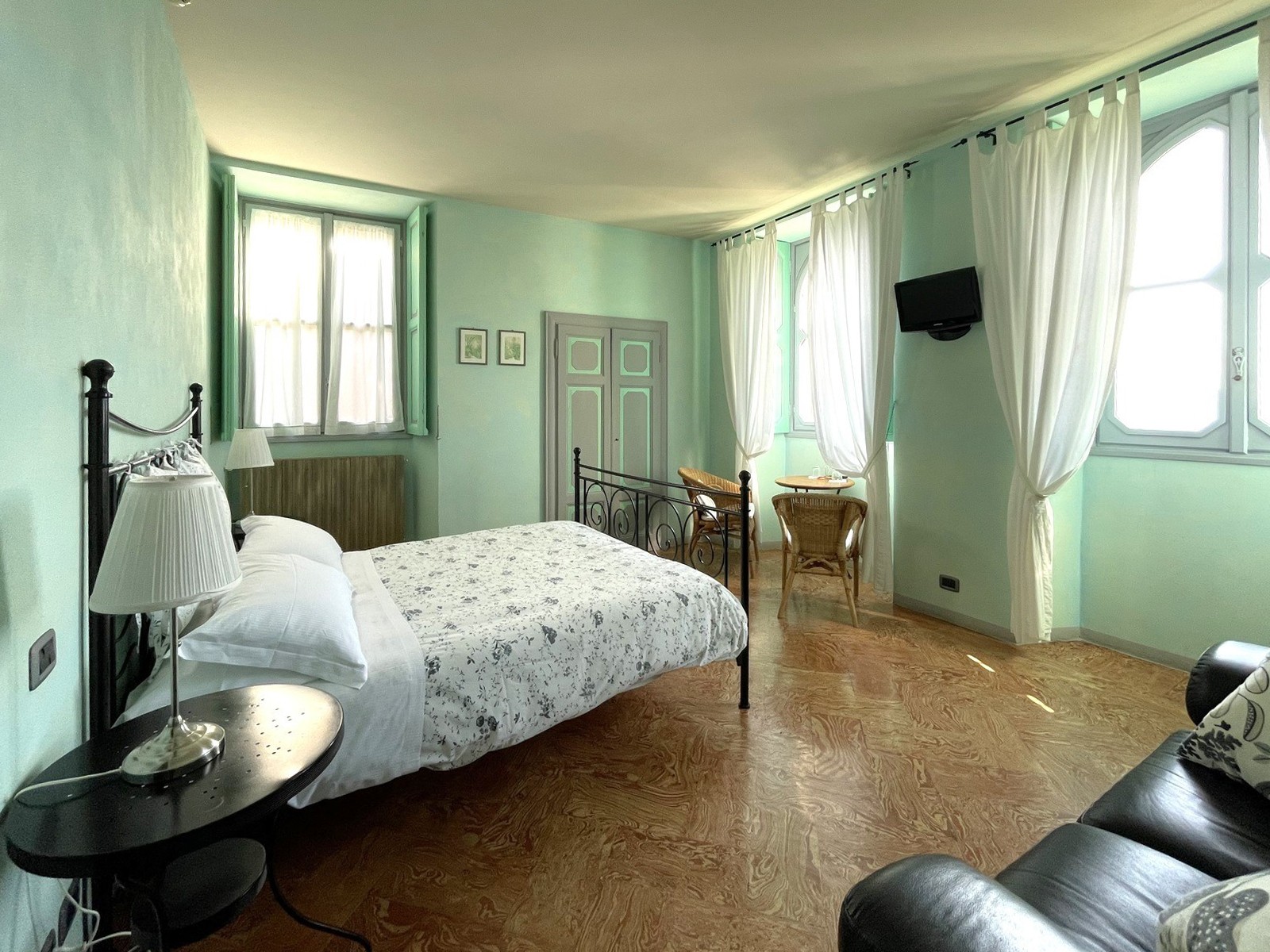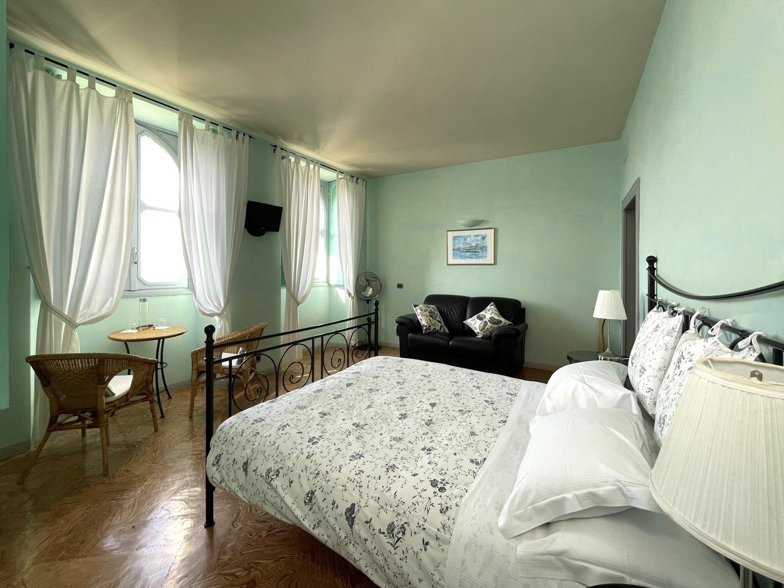 En la planta baja del edificio principal, hay un hall de entrada, un gran salón con chimenea y hermosos frescos originales, dos baños y un cuarto de servicio. En el primer y segundo piso, hay dos amplios dormitorios, cada uno con baño en-suite. El ático tiene otros dos dormitorios con balcón y también baño en-suite. El sótano cuenta con una gran bodega y ofrece acceso al jardín.