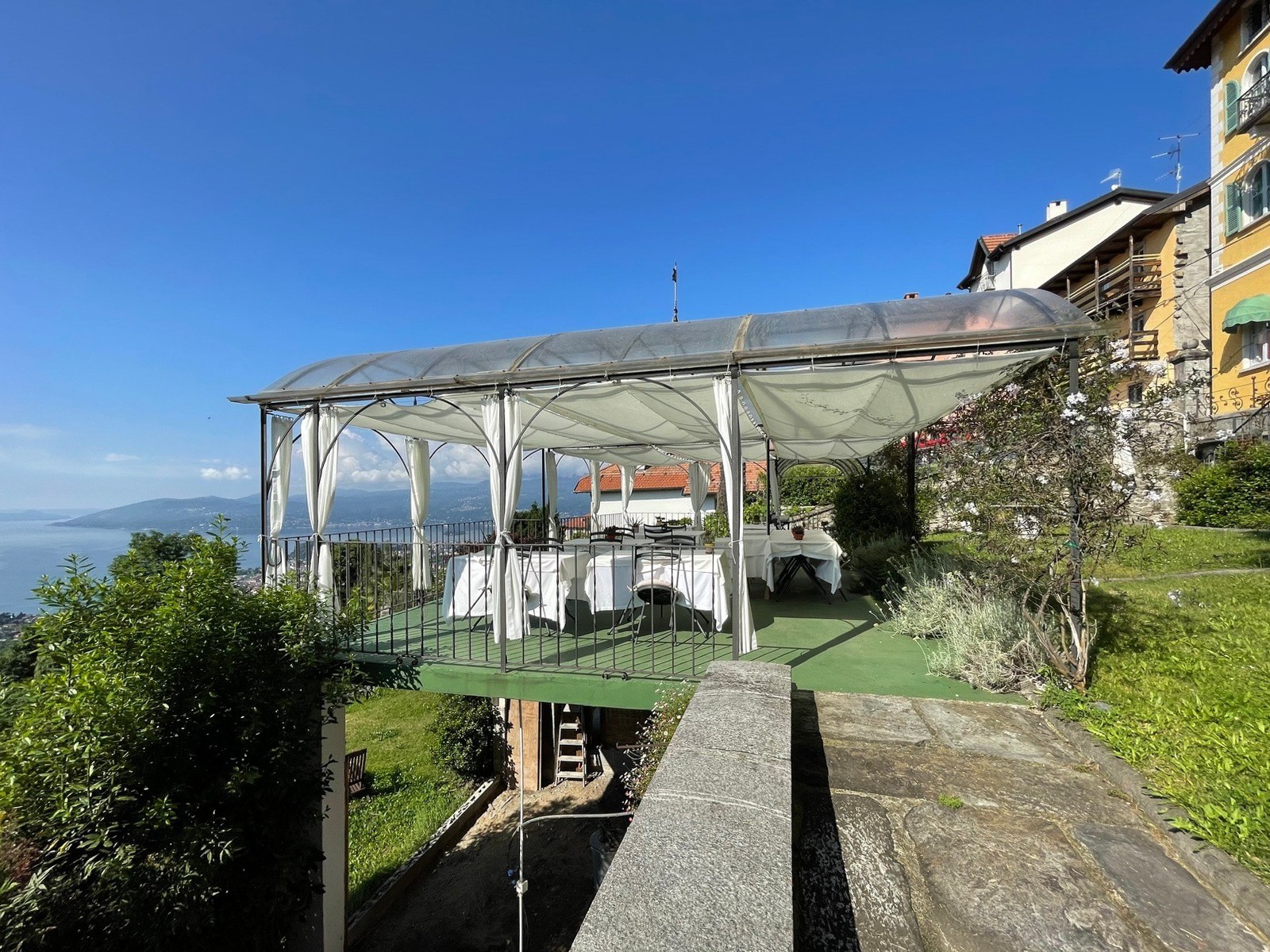 ¡Disfrute de los mejores momentos en el Lago Maggiore en el jardín con una gran terraza! La propiedad es ideal tanto como residencia privada como parcialmente para usos comerciales o turísticos.