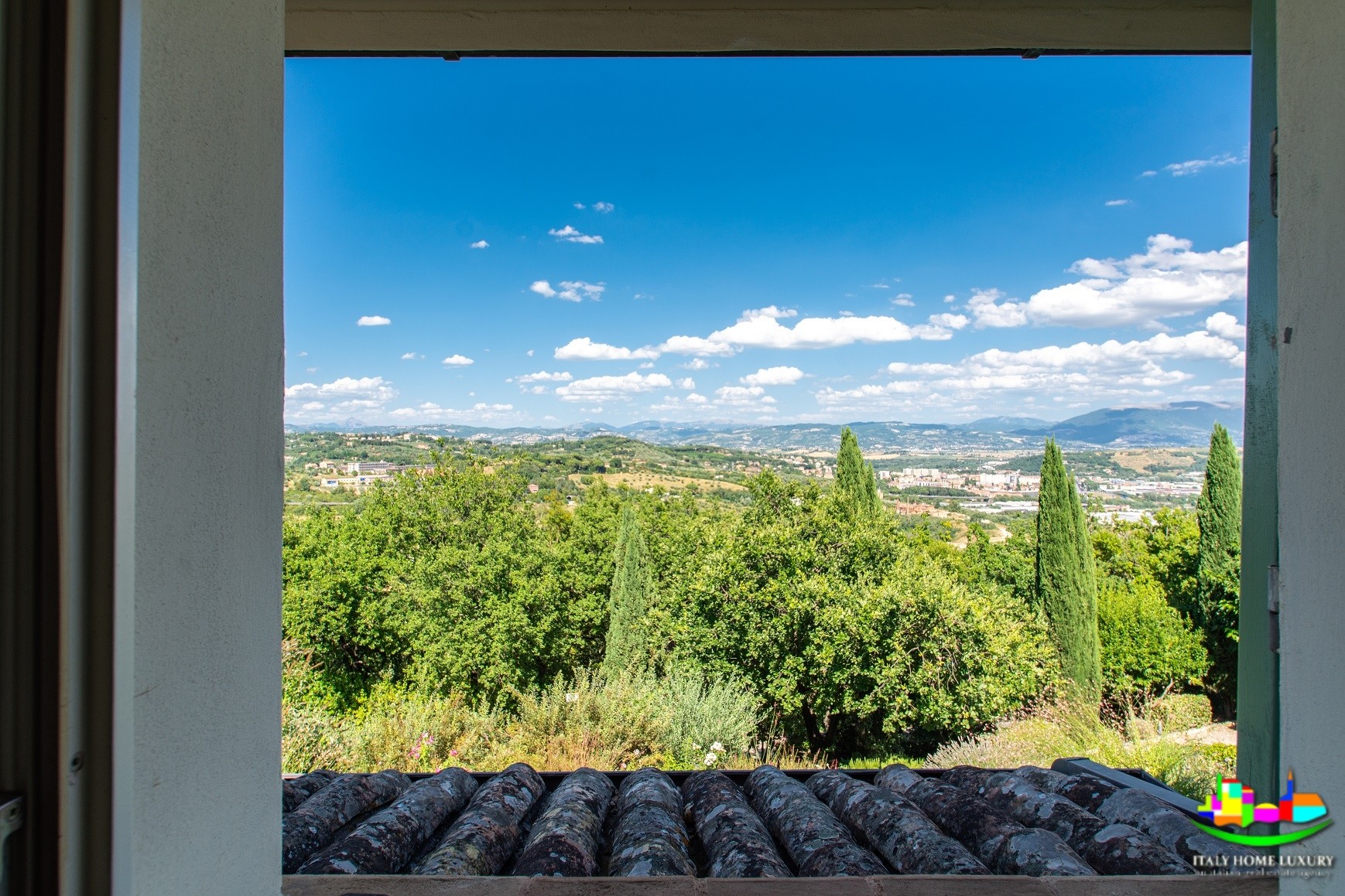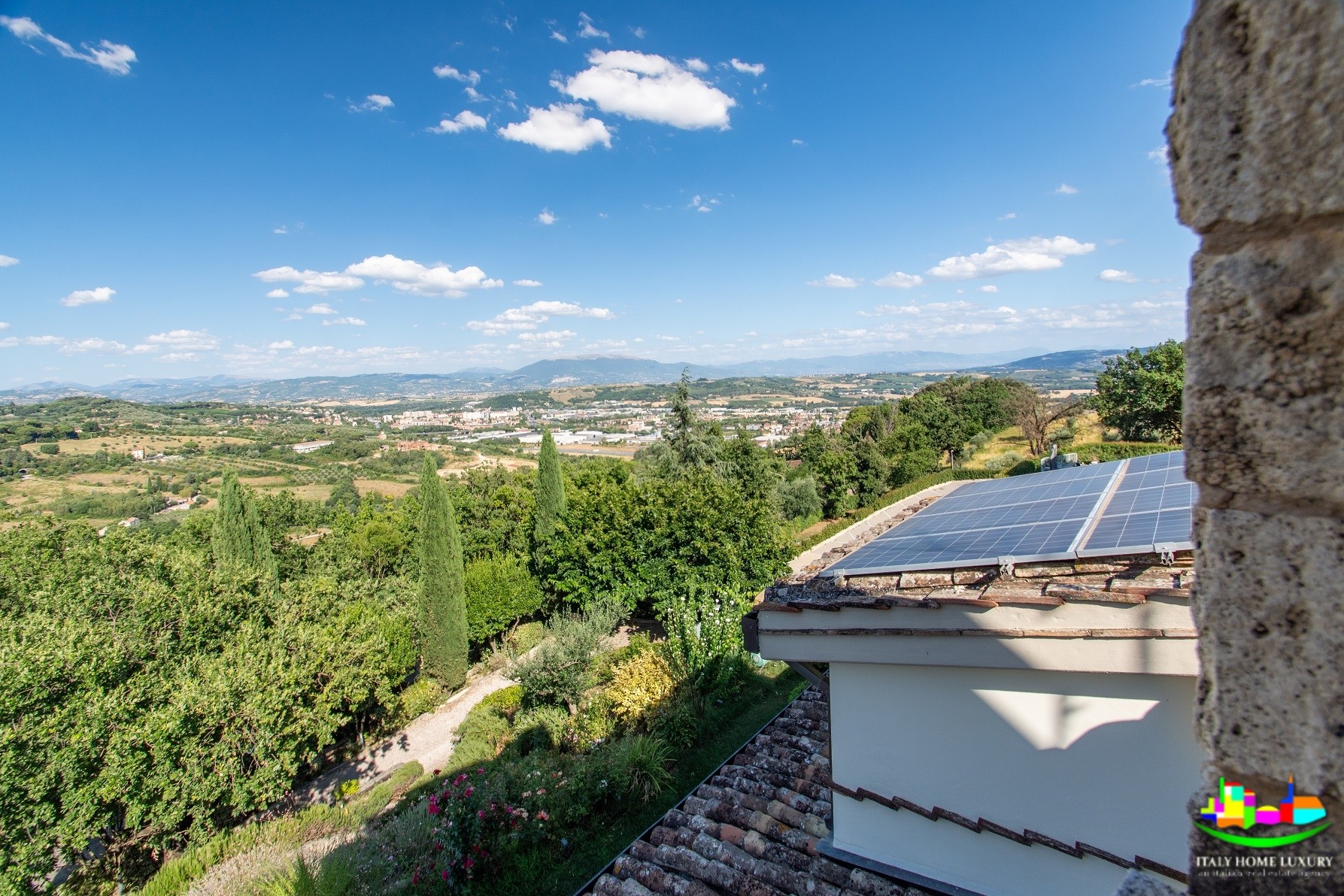 La propiedad ofrece vistas panorámicas al Monte Subasio y a la ciudad medieval de Assisi.