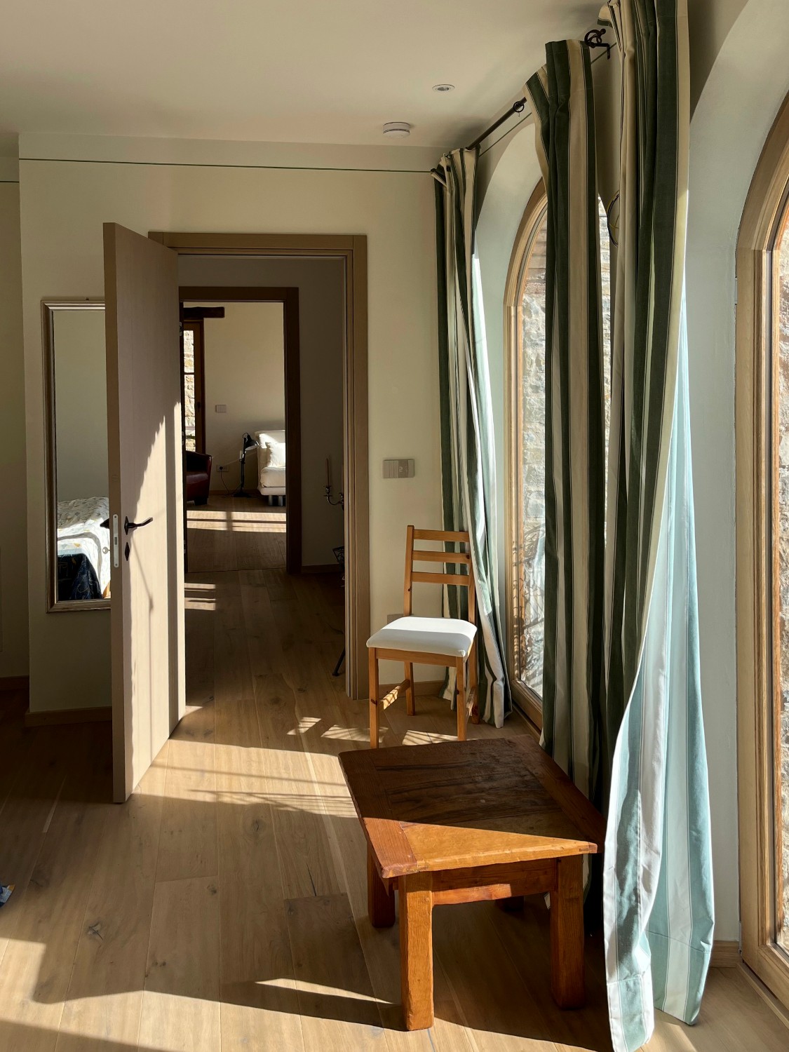 Las comodidades de la casa incluyen calefacción/sanitarios con bomba de calor Bosch Compress 3000 AWS, calefacción por suelo radiante con control individual en todos los espacios. Además, tiene un sistema eléctrico con un sistema fotovoltaico de 6 KwP y almacenamiento de baterías de 10 KW. La iluminación es regulable y controlable de forma remota a través de internet. Las ventanas están hechas de madera de castaño sin tratar y tienen vidrios aislantes. Las puertas son lisas con cerraduras magnéticas, y la puerta principal tiene triple bloqueo. Los suelos son de tablones de madera natural aceitada. La piscina cuenta con un sistema automático de cloración salina, circulación de skimmer y desagüe de fondo, bomba de calor aire-agua para calefacción/refrigeración, ducha exterior con caldera de agua caliente y cubierta de persiana enrollable. Además, la propiedad está bajo vigilancia mediante videovigilancia en las áreas de entrada y jardín con función de audio y video en vivo.