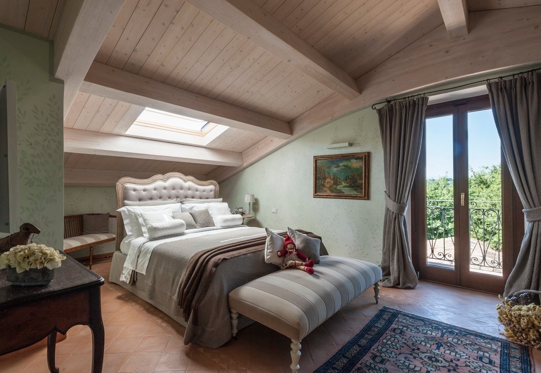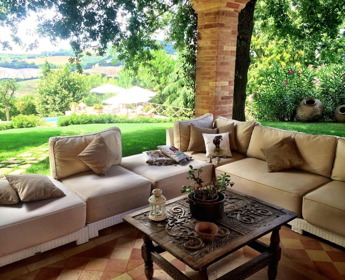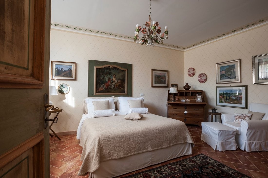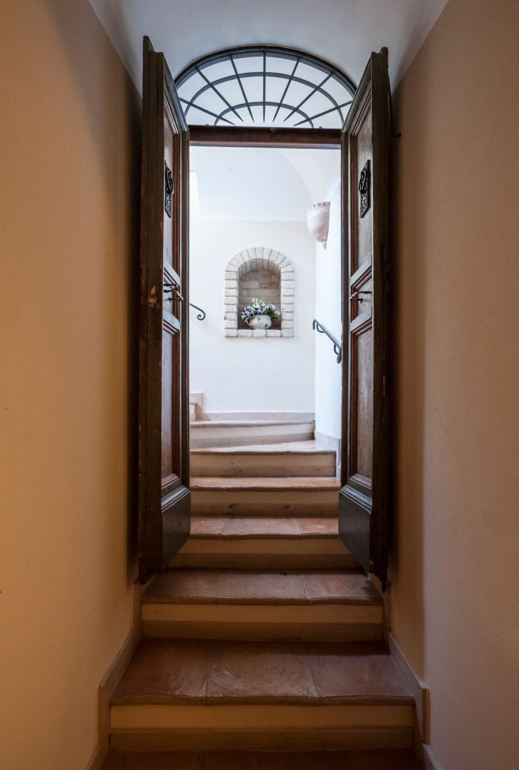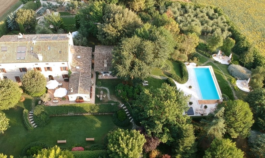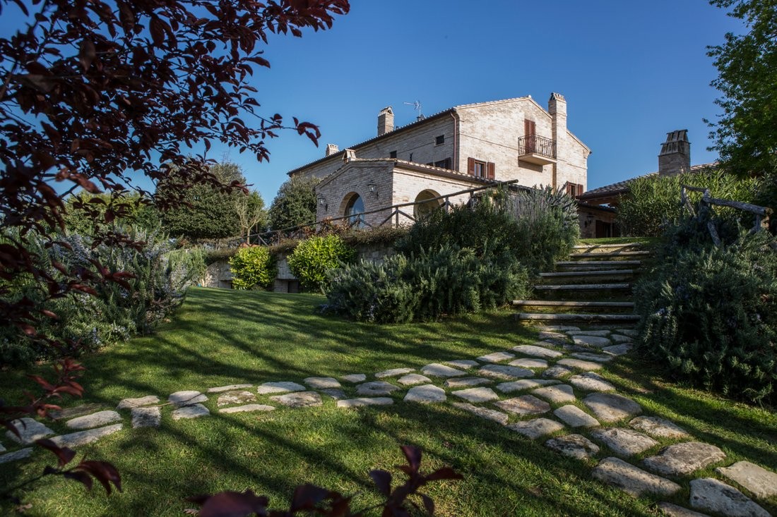 La casa principal ya ha sido renovada. Se desarrolla en cinco niveles e incluye seis dormitorios, seis baños, varios espacios de recepción, dos cocinas completamente equipadas, patio interior, montacargas, garaje subterráneo, bodega y sauna. Las vistas se extienden sobre el paisaje de Las Marcas hasta los tejados de Fermo. En el exterior: olivar privado, jardines diseñados con gazebo, terrazas, cocina exterior, barbacoa de piedra, jacuzzi y piscina infinita.