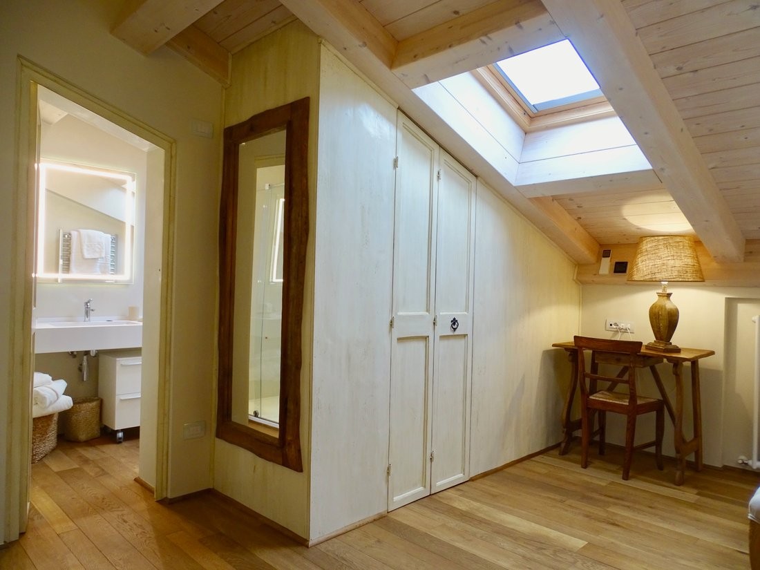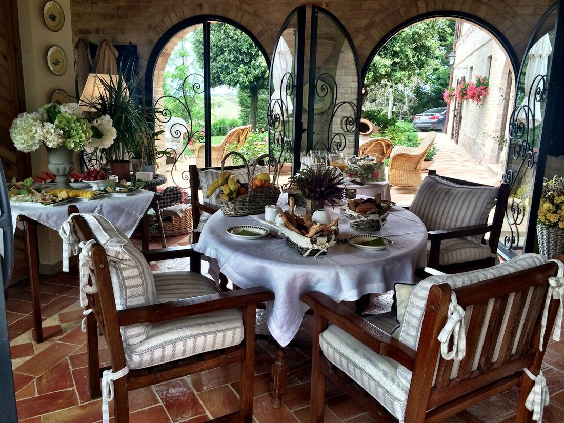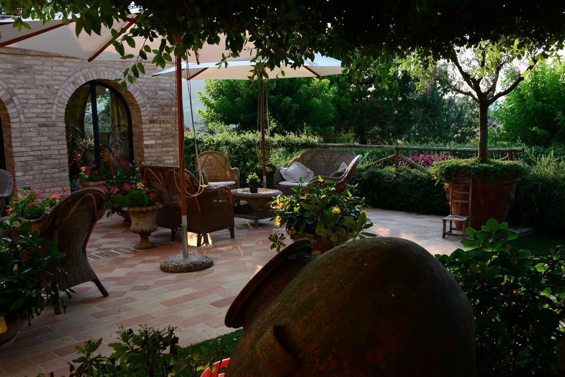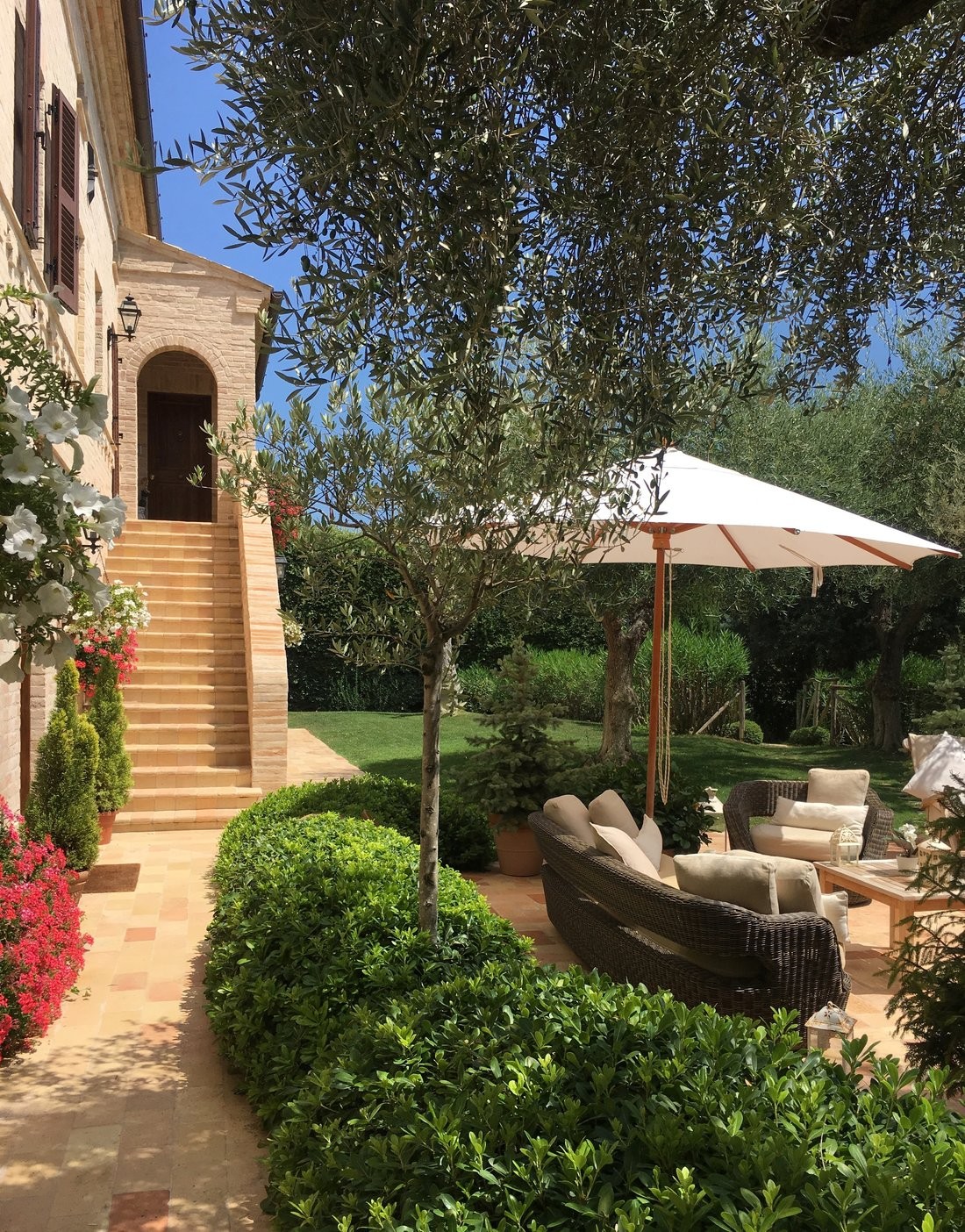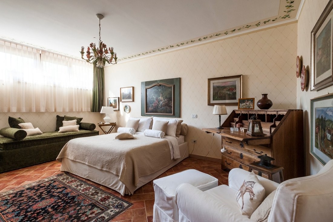 La casa principal ya ha sido renovada. Se desarrolla en cinco niveles e incluye seis dormitorios, seis baños, varios espacios de recepción, dos cocinas completamente equipadas, patio interior, montacargas, garaje subterráneo, bodega y sauna. Las vistas se extienden sobre el paisaje de Las Marcas hasta los tejados de Fermo. En el exterior: olivar privado, jardines diseñados con gazebo, terrazas, cocina exterior, barbacoa de piedra, jacuzzi y piscina infinita.