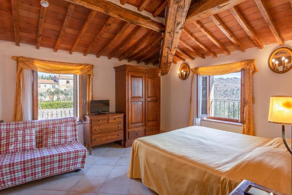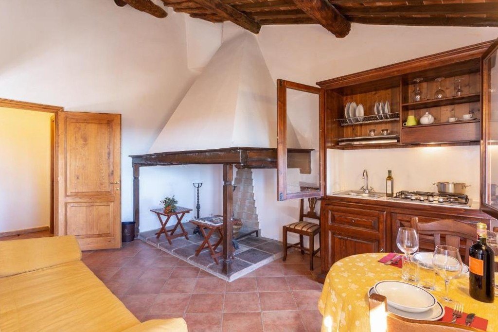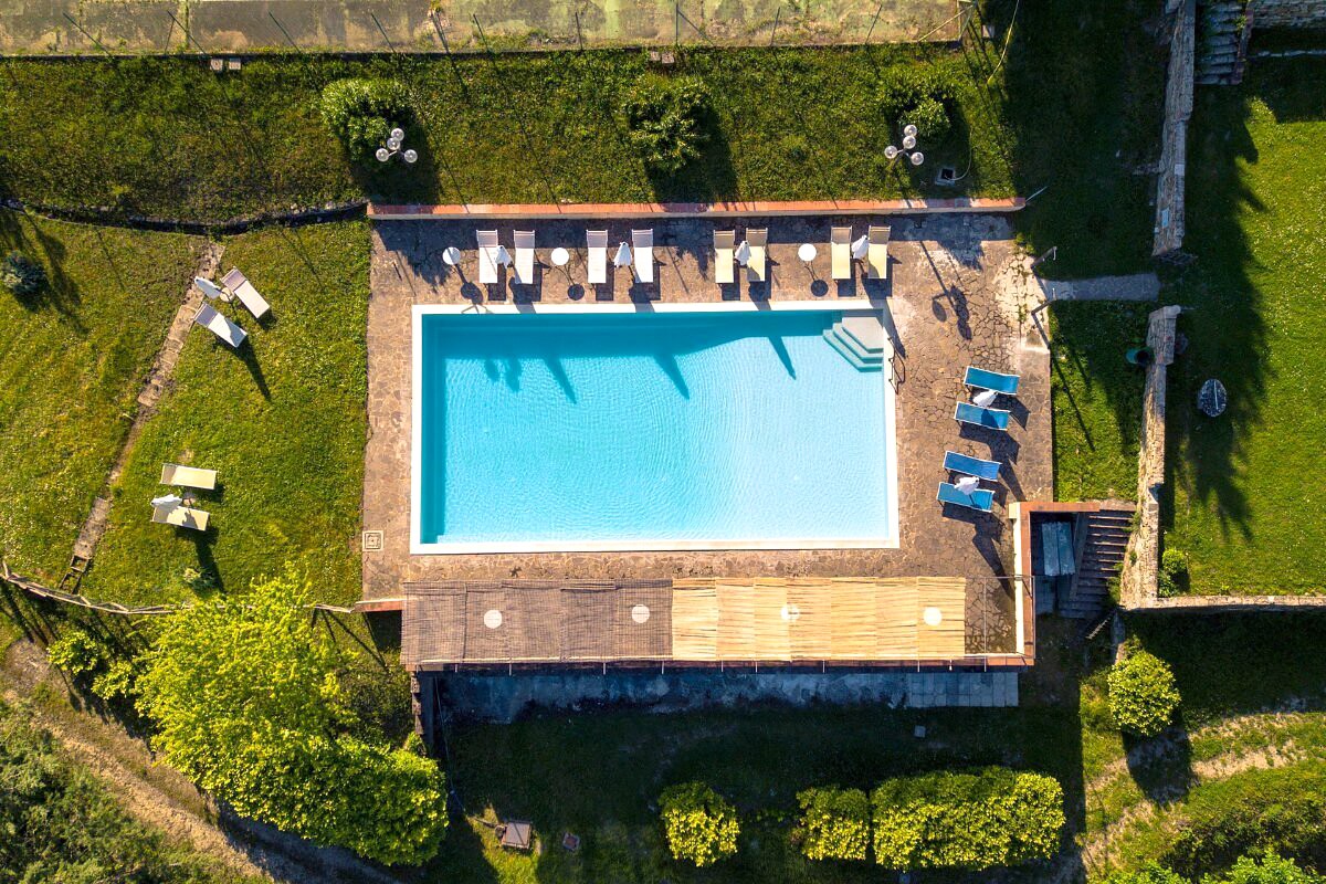 Todas las estructuras están en excelente estado. La restauración preservó los elementos originales de las casas de campo toscanas (piedra vista, vigas, ladrillos, escaleras de piedra arenisca, herrajes restaurados) e integró sistemas modernos, eficiencia energética y confort contemporáneo. Las habitaciones de la villa, la casa de campo y el granero están equipadas con tejidos naturales, muebles a medida, iluminación ambiental y acabados de alta calidad.