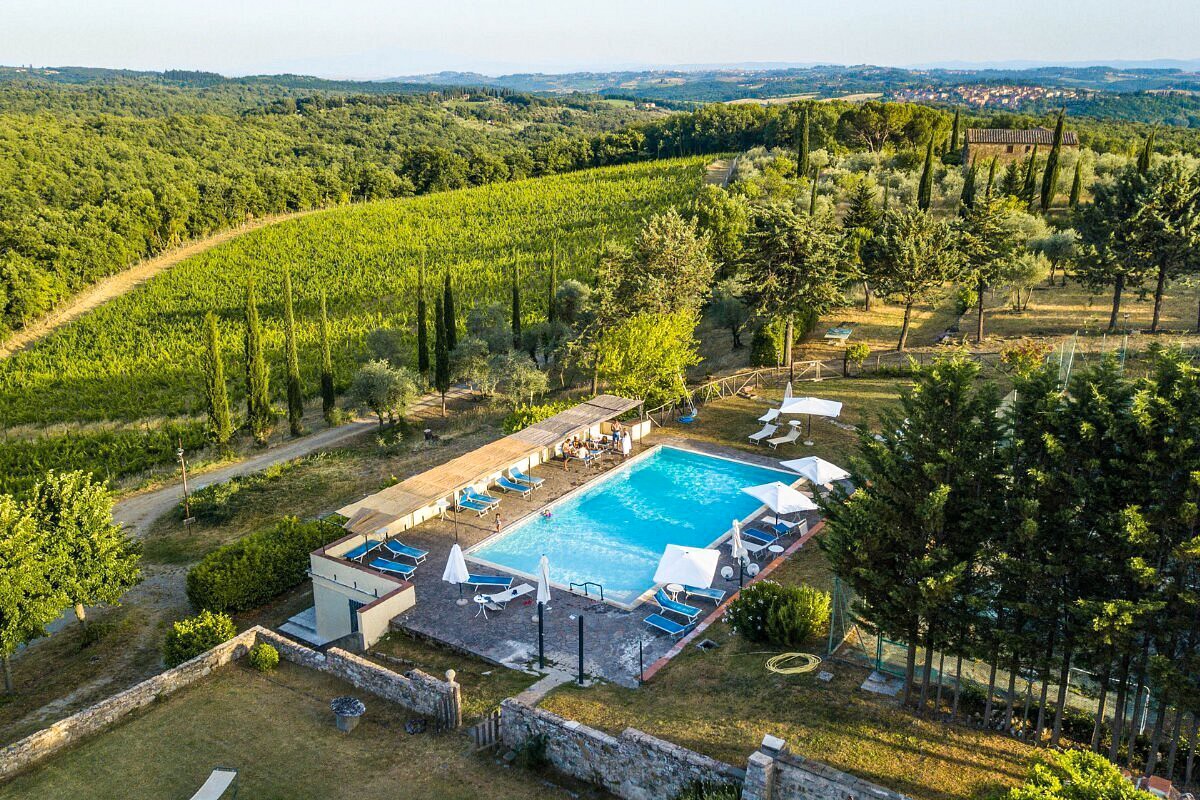 Villa Nerassi es una propiedad de 183 hectáreas situada en las colinas de Chianti Classico, entre Siena (25 minutos), San Gimignano (50 minutos) y Florencia (poco más de una hora). Su ubicación elevada ofrece vistas panorámicas sobre viñedos y bosques centenarios de Chianti, con excelentes conexiones de transporte.