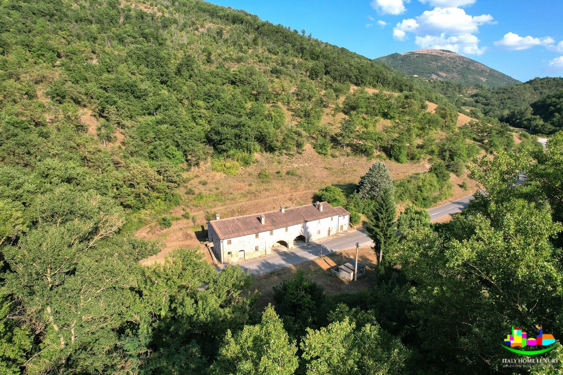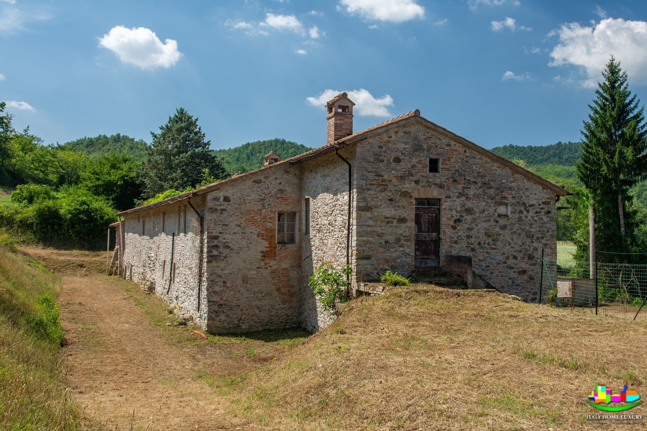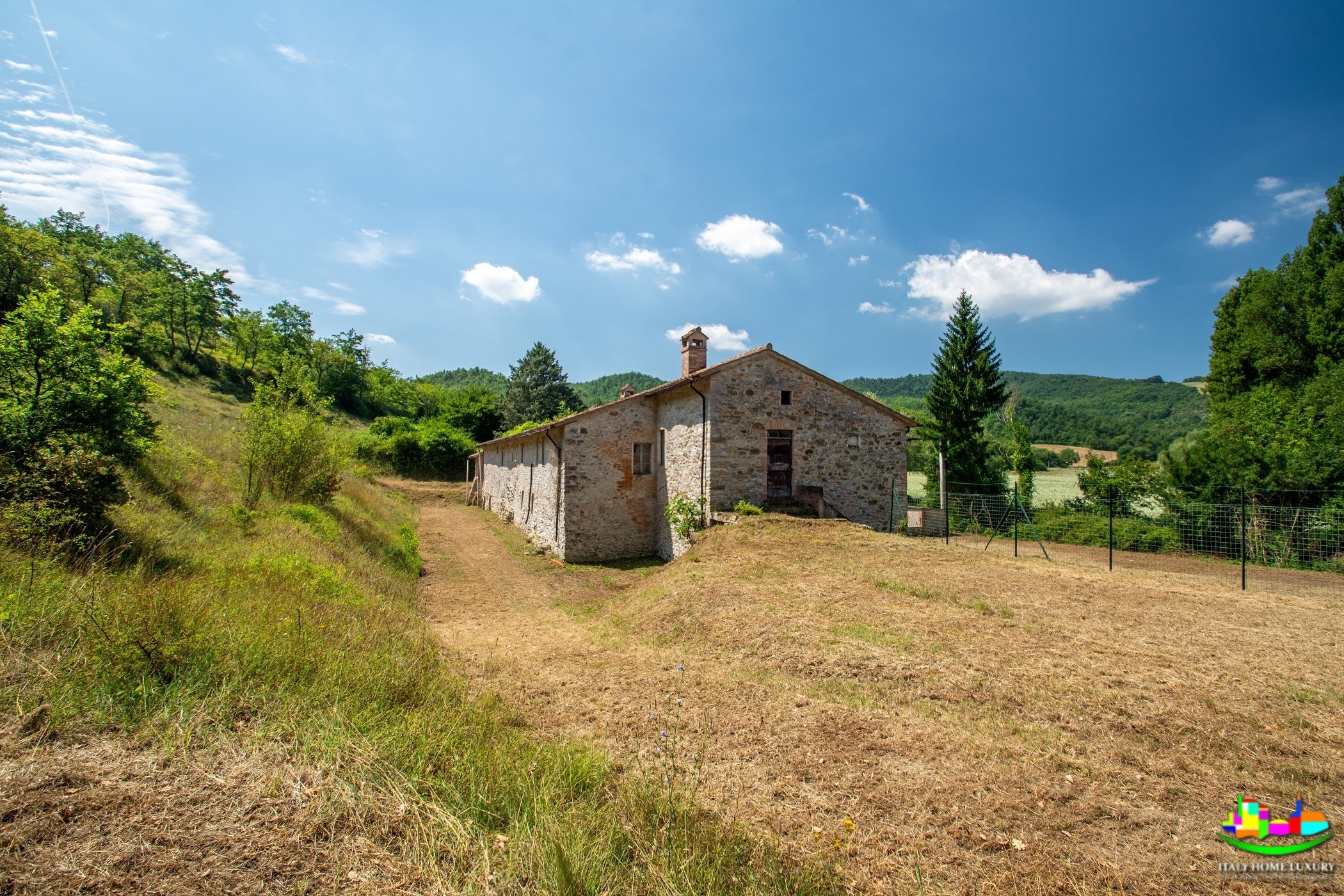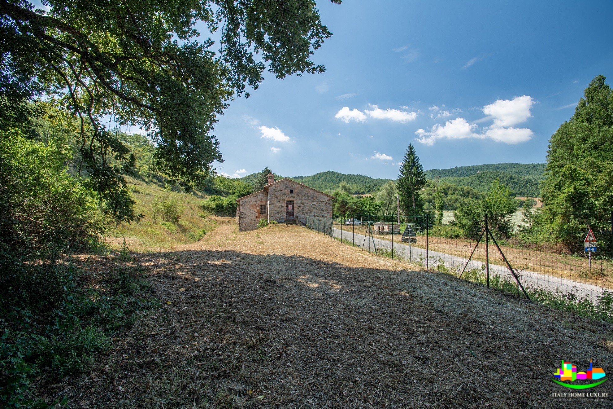 La casa de campo se encuentra en la ladera norte del Monte Tezio, al norte de Perugia, en una zona tranquila con vistas al paisaje de Umbría. La autopista E45 está a pocos kilómetros, el aeropuerto Umbria San Francesco d’Assisi a 32 kilómetros y Perugia a 16 kilómetros.