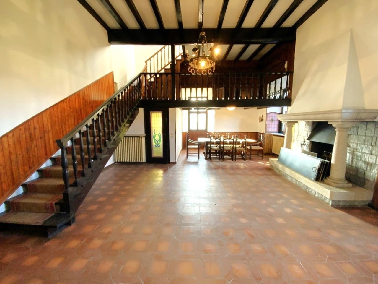 La propiedad se distribuye en tres plantas, incluyendo un ático, con amplias habitaciones y un encantador jardín privado. Al entrar, dos grandes salas, una de ellas con un entrepiso, dan la bienvenida, creando una atmósfera de prestigio histórico. Las grandes chimeneas antiguas añaden calidez y encanto, evocando el ambiente de épocas pasadas. La planta baja también incluye dos cocinas, un estudio, dos baños y un trastero para mayor comodidad.