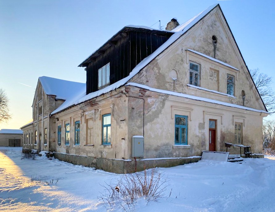 La casa principal fue construida en 1870 según los planos de Theodor Heinrich Seyler. Es un edificio alargado de una sola planta con techo a dos aguas. Ambas fachadas laterales están decoradas con pilastras, y también conserva elementos neogóticos añadidos durante renovaciones posteriores. Tras la Segunda Guerra Mundial, la casa se utilizó primero como centro cultural y más tarde como vivienda.
