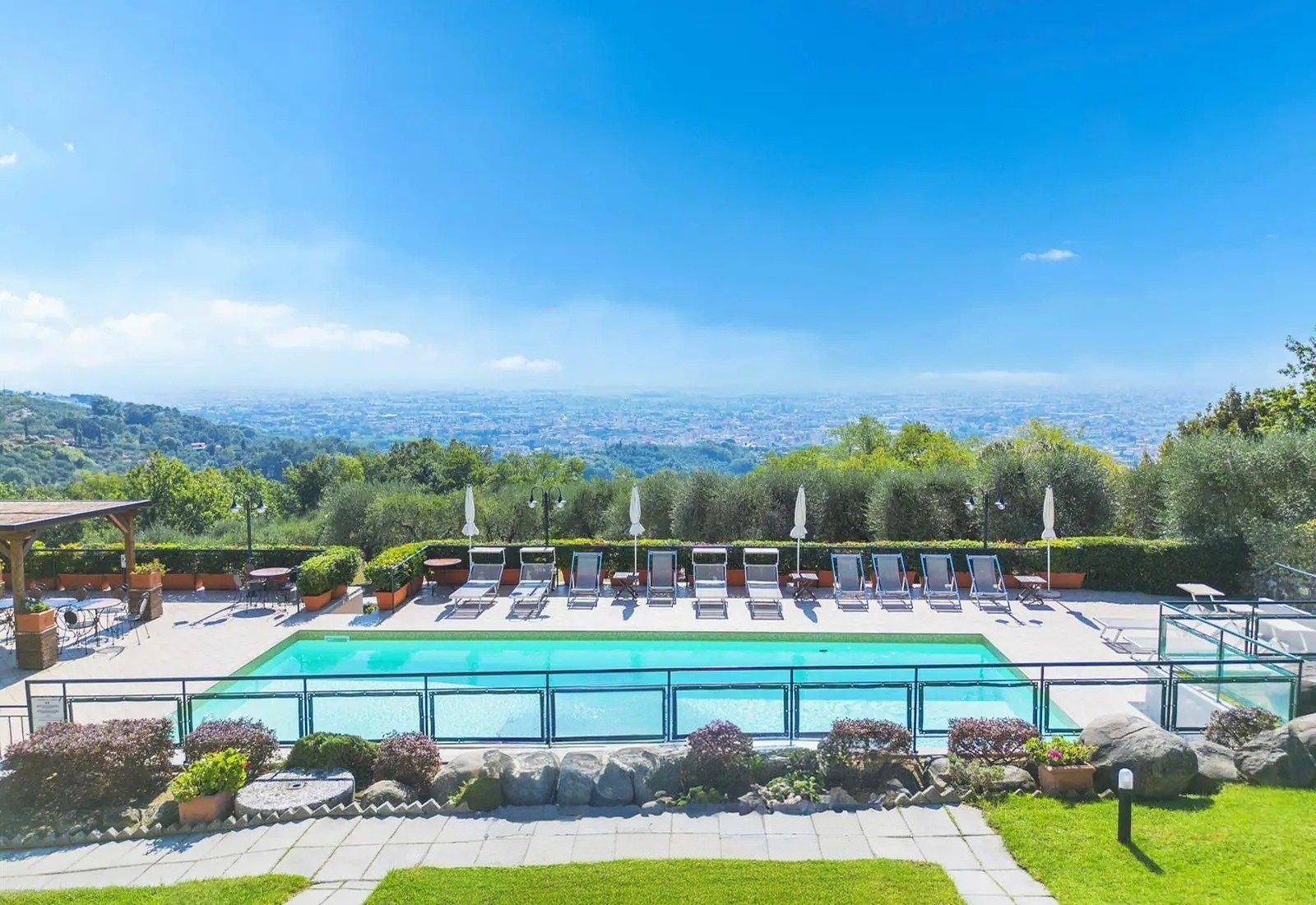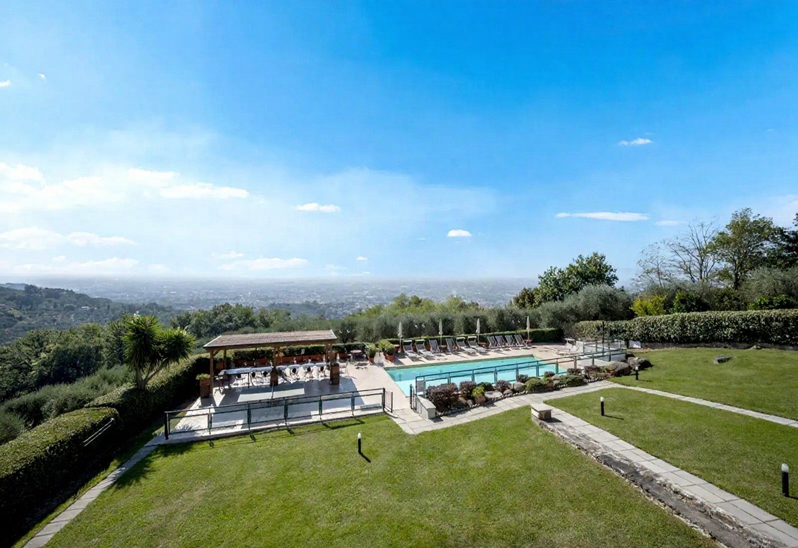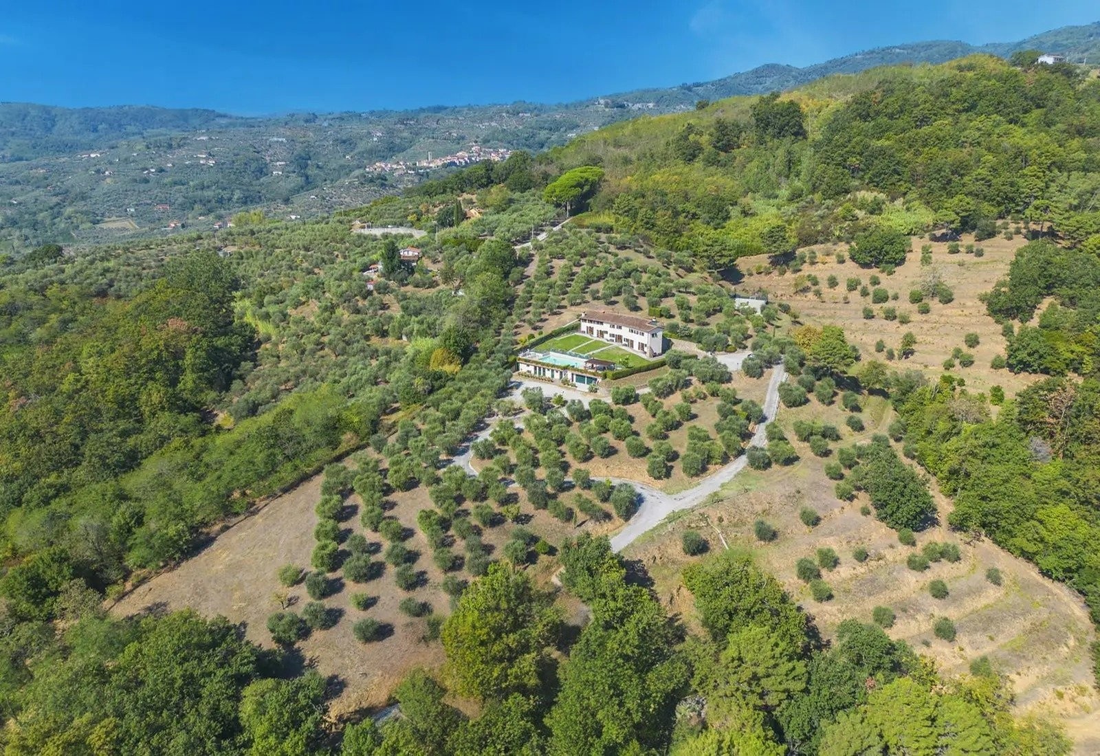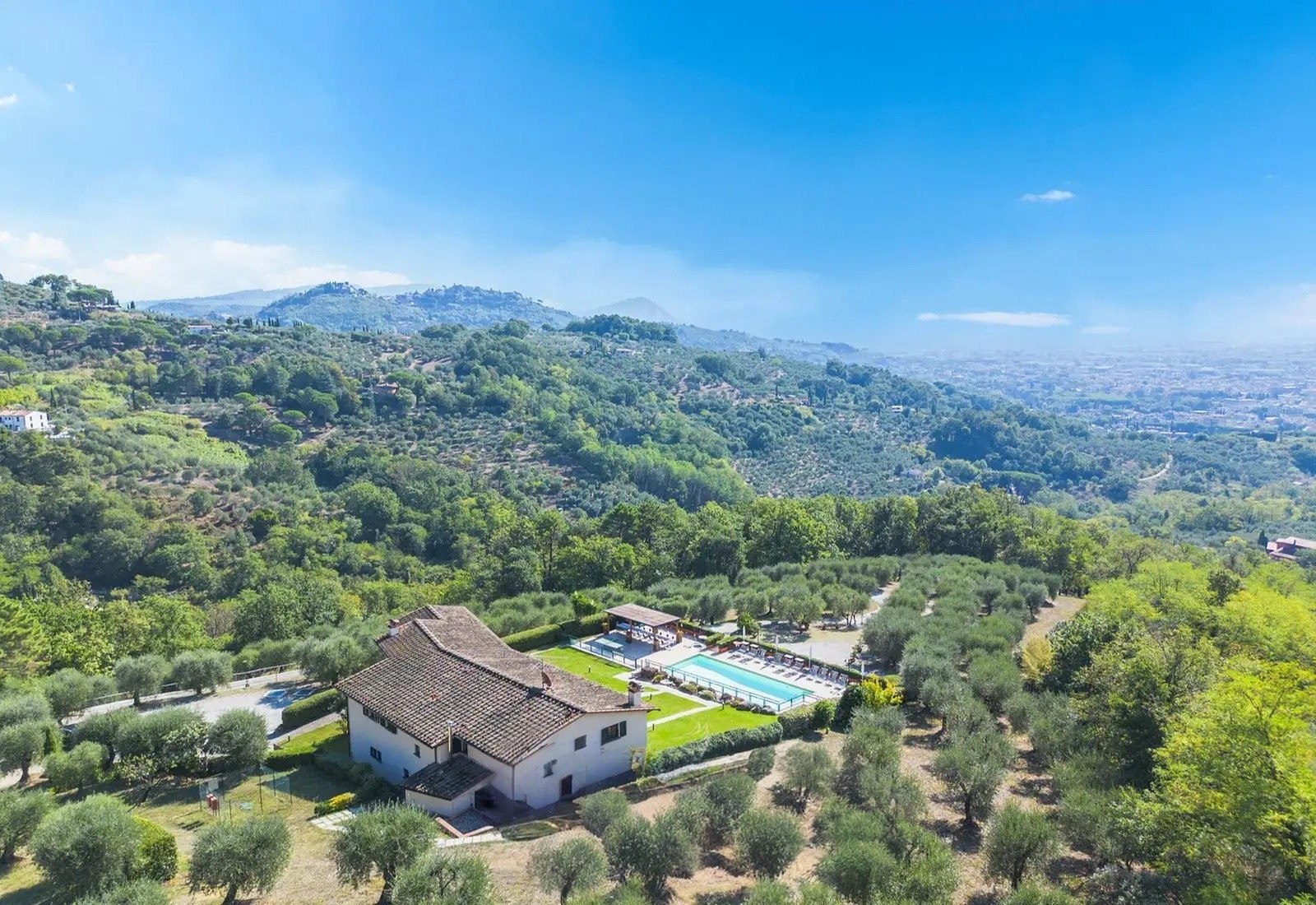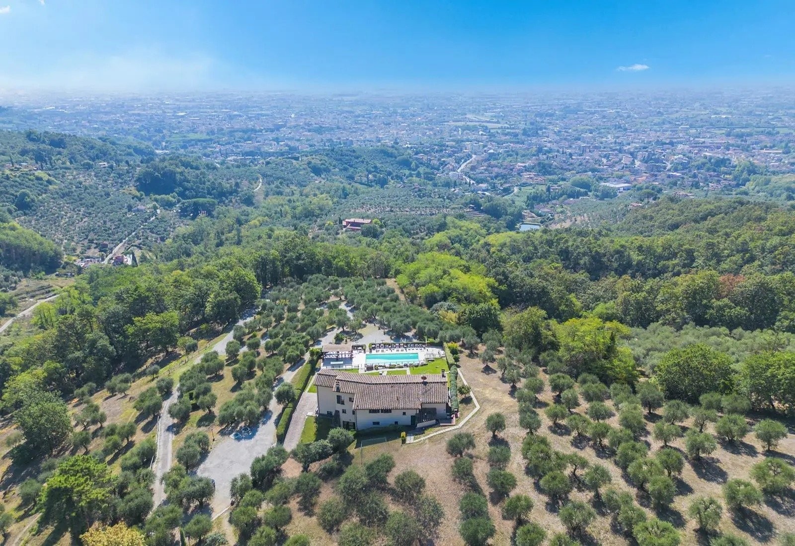 Montecatini Terme se encuentra al pie de la propiedad y es famosa por sus establecimientos termales de la Belle Époque y su arquitectura Art Nouveau. La ciudad ofrece todos los servicios locales y conexión ferroviaria. Florencia está a 50 km, Lucca a 35 km, Pistoia a 15 km y Pisa a 60 km. El aeropuerto de Florencia (Peretola) se encuentra a 55 km y el aeropuerto internacional de Pisa a 65 km. La villa combina privacidad, proporcionada por su topografía y acceso privado, con fácil integración en la red de pueblos de las colinas toscanas.