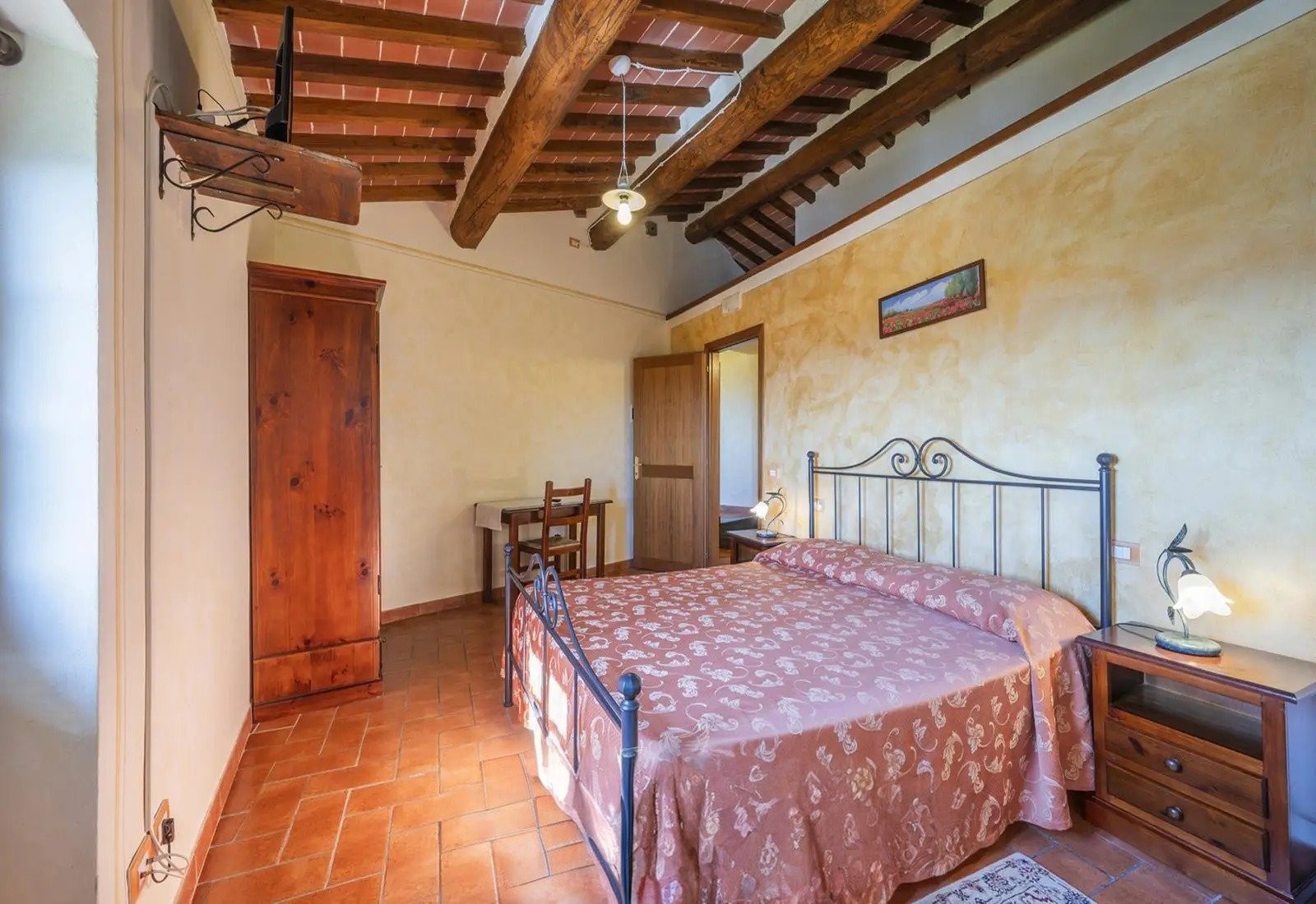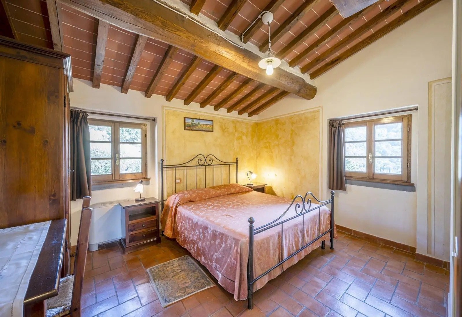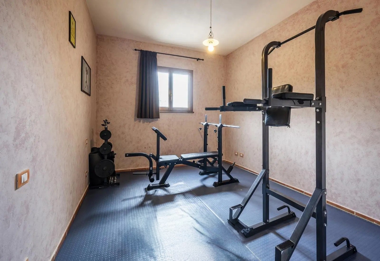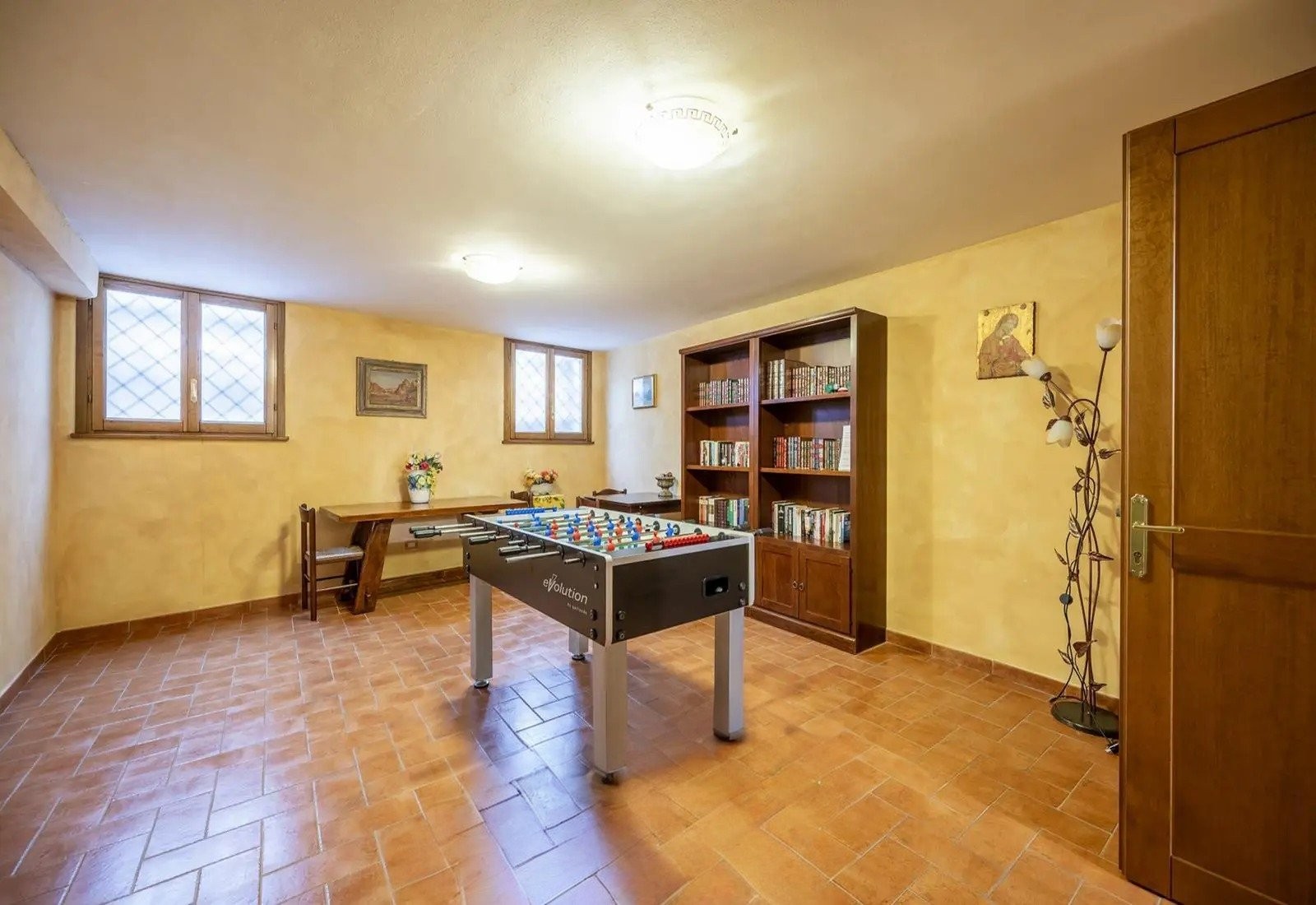 El terreno mantiene un carácter agrícola funcional al mismo tiempo que ofrece infraestructura de ocio y deporte. La piscina mide 5,5 × 12 metros y dispone de una terraza-solárium con vistas al valle y a Montecatini Terme. Además, la propiedad cuenta con instalaciones deportivas para voleibol, fútbol, baloncesto y bádminton, así como un pabellón cubierto con zona de barbacoa y un área con hoguera. La disposición permite que las instalaciones recreativas funcionen de manera independiente de las zonas residenciales, beneficiándose de la orientación y elevación del terreno para una ventilación natural y vistas panorámicas.
