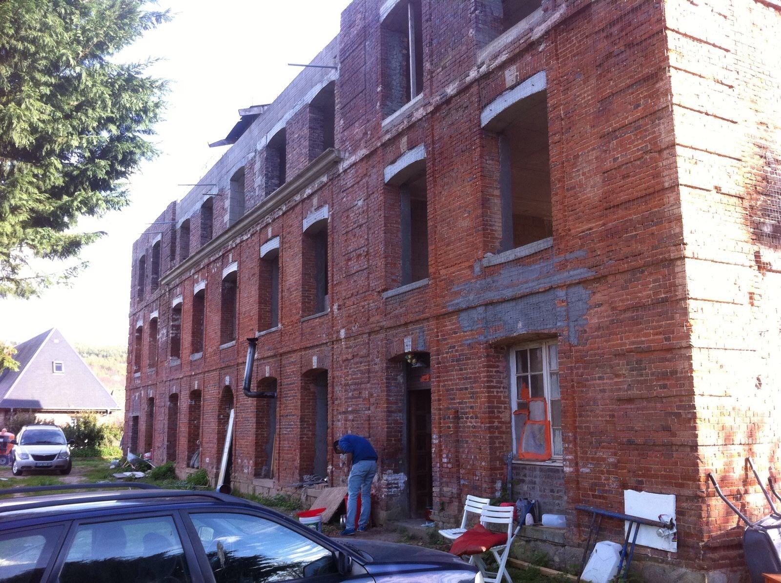 Como resultado, el edificio se encuentra ahora en un estado de obra, compuesto únicamente por las paredes estructurales, los suelos y una escalera central que da acceso a los pisos superiores. Se requiere una renovación completa, incluyendo el techo, el acabado interior, las instalaciones sanitarias, la electricidad, etc.