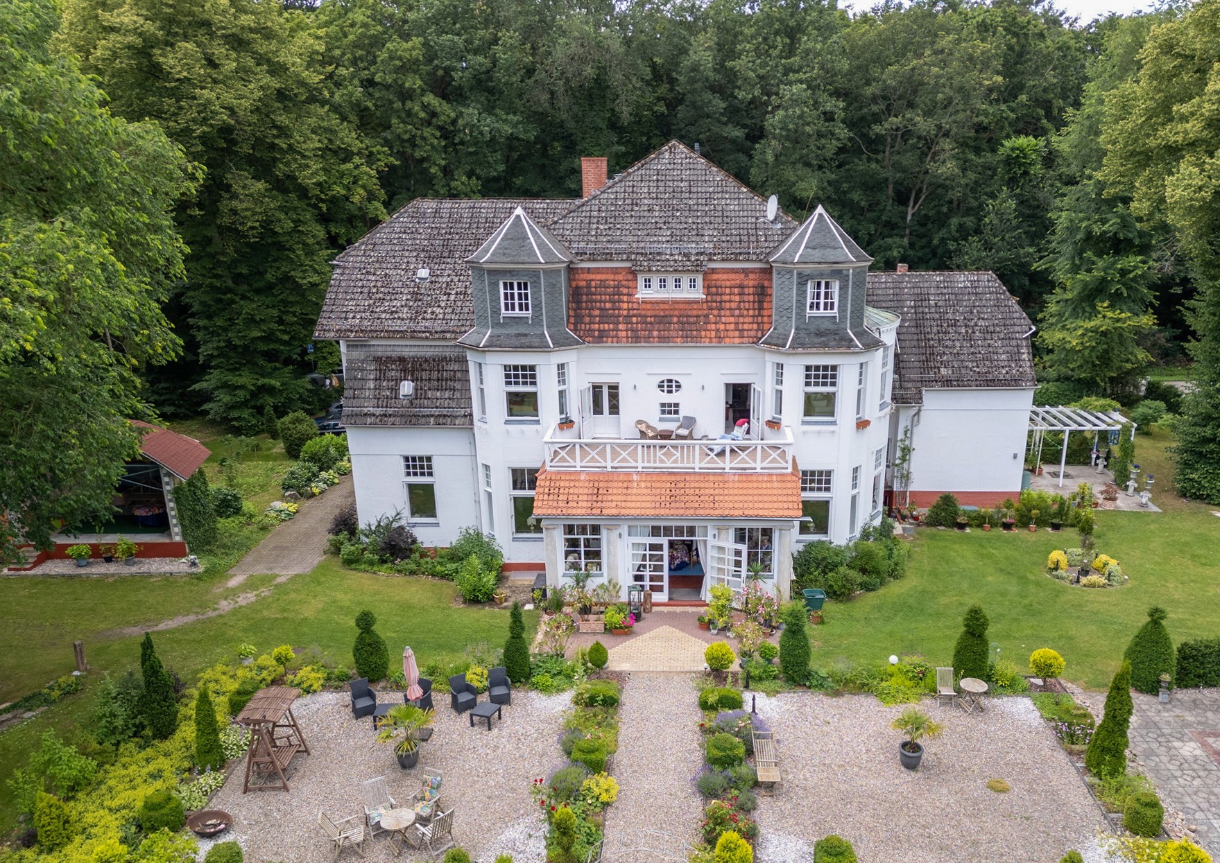 Construida en 1907 en la región de los lagos de Brandeburgo para un comerciante de Bremen como residencia representativa y de retiro, esta villa destaca por su ejecución de alta calidad en estilo de casa de campo inglesa con influencias del Jugendstil en su fase más desarrollada. La distribución original de los espacios y sus elementos históricos de diseño conservan hasta hoy una impresión auténtica del estilo de vida burgués de principios del siglo XX.