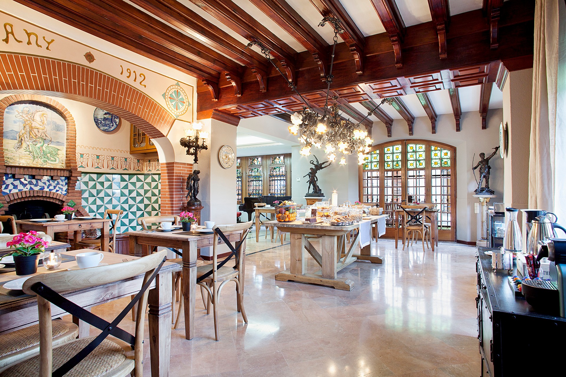 Totalmente reformada, conserva elementos modernistas originales: fachada, vidrieras, suelos hidráulicos, techos con molduras, frescos y mosaicos.