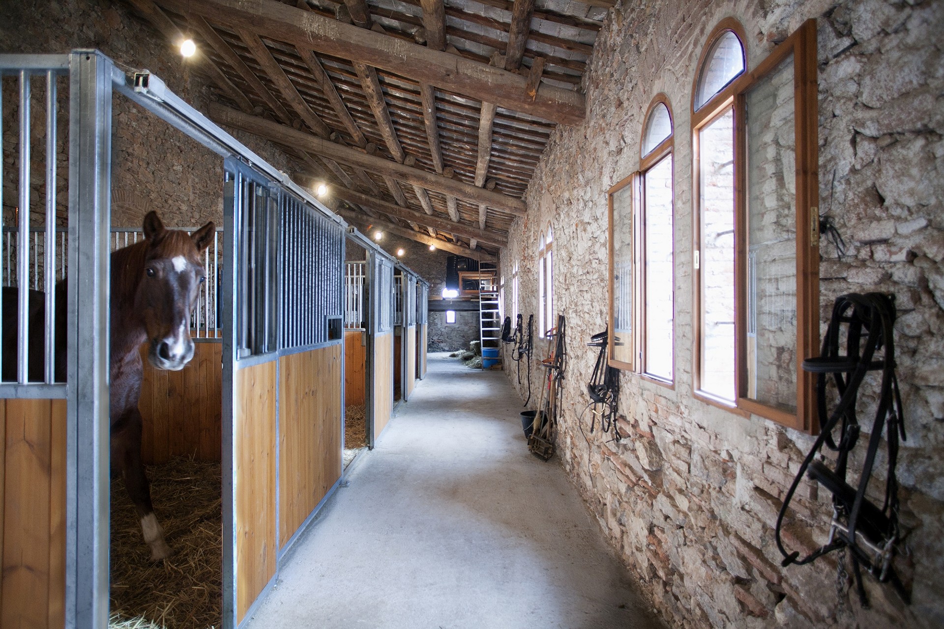Zonas ajardinadas, piscina con pérgola, pista ecuestre, cuadras, olivos propios para producción de aceite y 140 hectáreas de bosque.