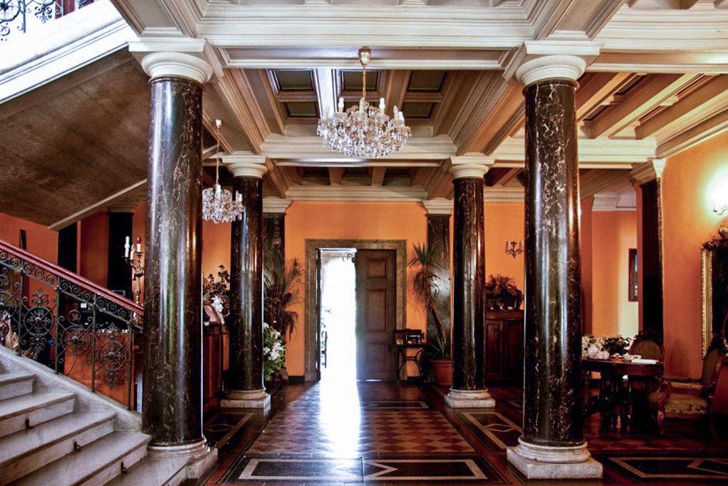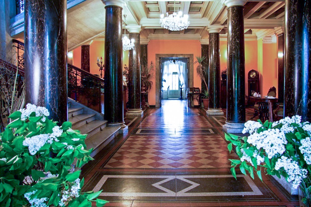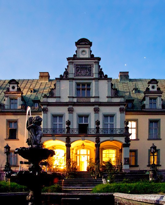 El palacio original fue construido entre 1730 y 1750 y reconstruido en un magnífico palacio neorrenacentista a finales del siglo XIX. Antes del incendio de la década de 1930, el edificio era mucho más elaborado e impresionante que en la actualidad. Originalmente estaba adornado con dos torres en las risalitas exteriores y numerosas torrecillas y orieles más pequeños.