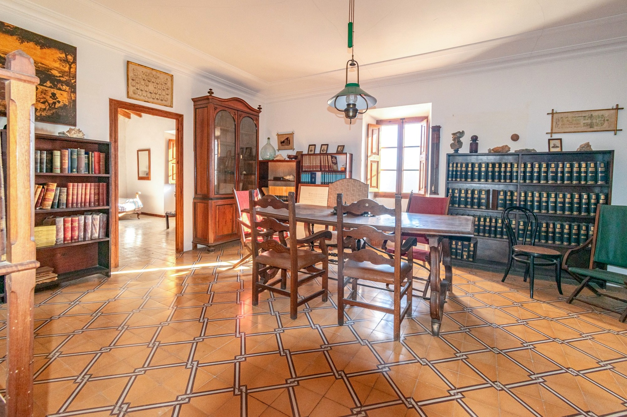La casa señorial cuenta con aproximadamente 1.000 m² de superficie habitable distribuidos en tres niveles, con 15 dormitorios, 5 baños, 2 salones, biblioteca, capilla y diversos espacios de almacenamiento. El ático ofrece la posibilidad de crear habitaciones adicionales. En la entrada hay un amplio aparcamiento para más de 30 vehículos, incluyendo aproximadamente 100 m² que se pueden utilizar o reformar según necesidad. La propiedad también dispone de un garaje y varios anexos con uso múltiple.