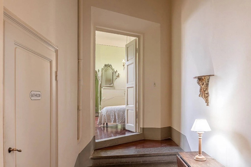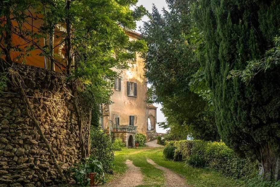 La "Villa Di Bastiano" se alza en las colinas de Mugello con vistas que llegan hasta el Lago di Bilancino. Mencionada por primera vez en el siglo XIII como una propiedad de doble torre, la villa adquirió su forma arquitectónica actual a finales del siglo XIX gracias al pintor florentino Michele Gordigiani. La característica silueta de doble torre sigue definiendo el aspecto de la villa hasta hoy.