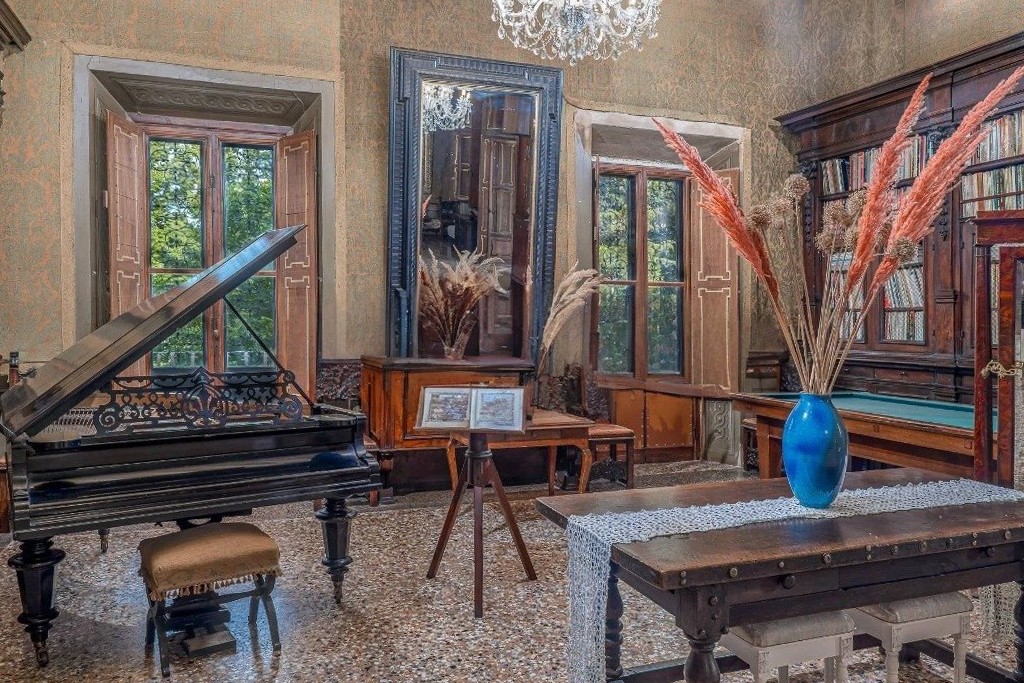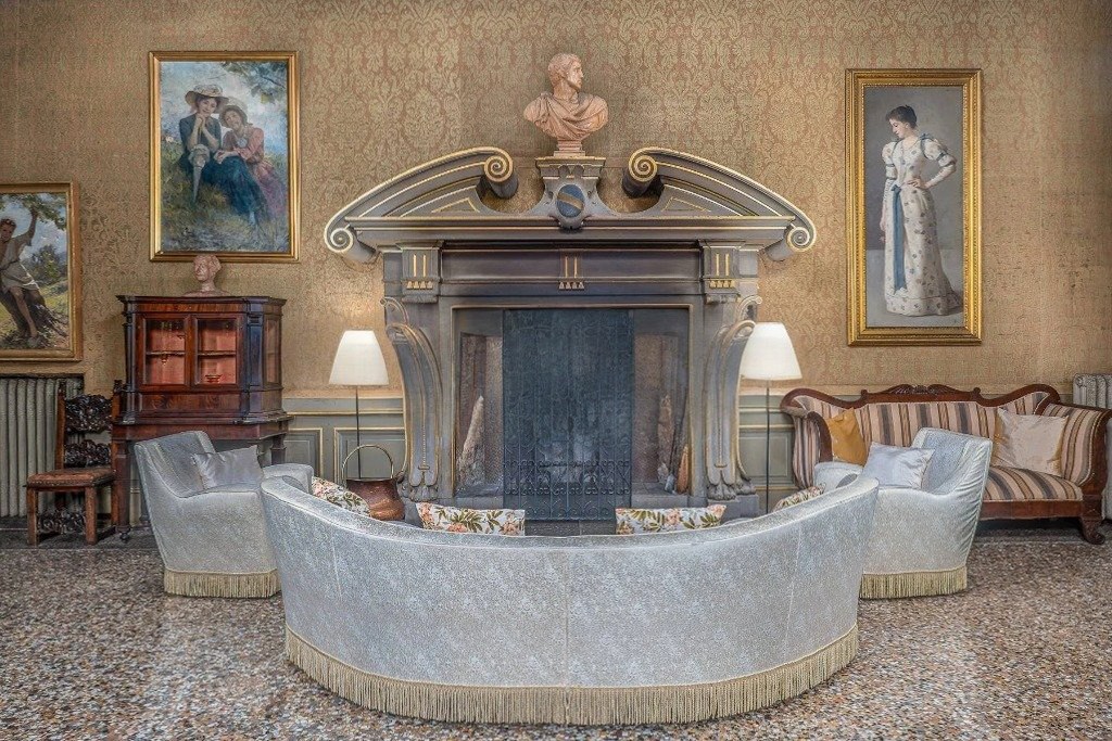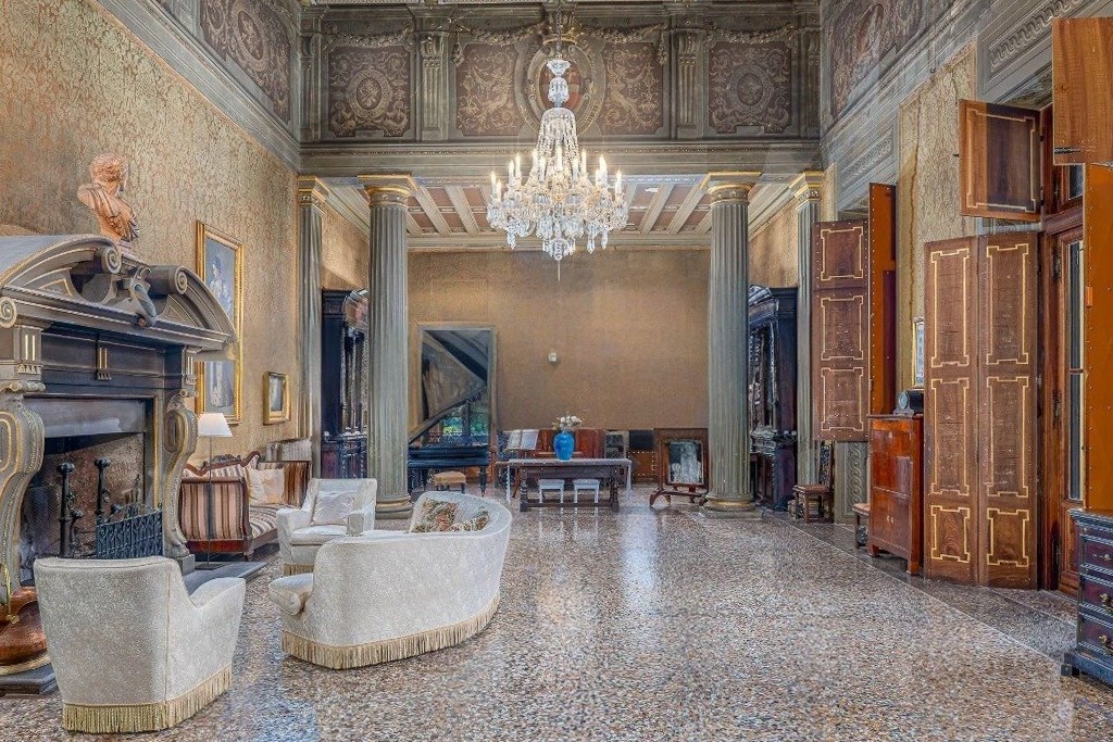 La villa cuenta con aproximadamente 1.800 m² distribuidos en cuatro niveles. El piano nobile alberga ocho salones representativos con techos altos, terrazas, logias, baños de invitados y dos dormitorios. La segunda planta dispone de diez dormitorios, siete baños y dos salones. La tercera planta ofrece otros diez dormitorios con tres baños. En la planta baja y el sótano se encuentran dos dormitorios, un baño y las áreas de servicio: cocina, despensas, bodega, leñera, garaje y dependencias.