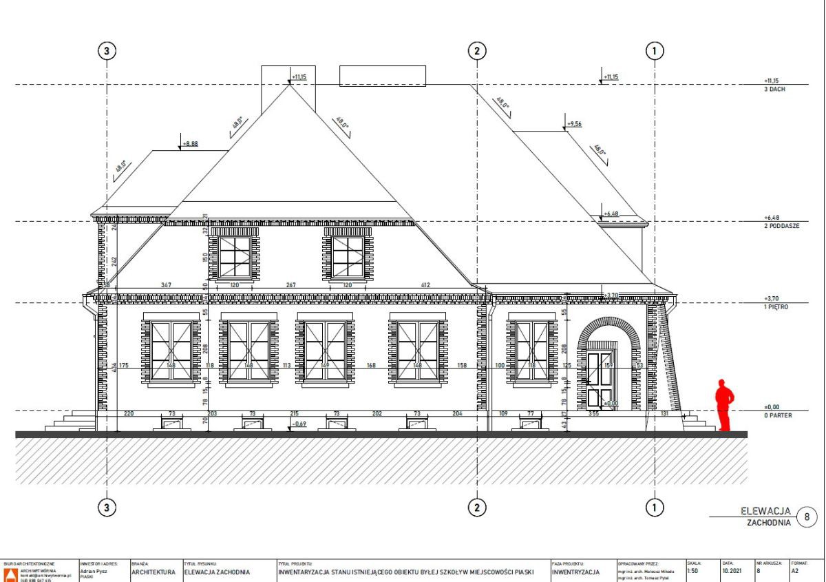 El edificio de la escuela primaria fue construido en 1936 y sirvió durante muchos años como institución educativa para los niños de Piaski y los pueblos vecinos. Durante la Segunda Guerra Mundial, el edificio siguió siendo utilizado por los habitantes y fue modernizado y ampliado después de la guerra. En 1995, la escuela cerró debido al descenso en el número de estudiantes. Desde entonces, el edificio ha permanecido vacante, pero su valor histórico y arquitectónico sigue siendo el centro de atención de la comunidad y los amantes de las casas antiguas. El edificio aún espera a su nuevo propietario para darle nueva vida y hacerlo revivir.