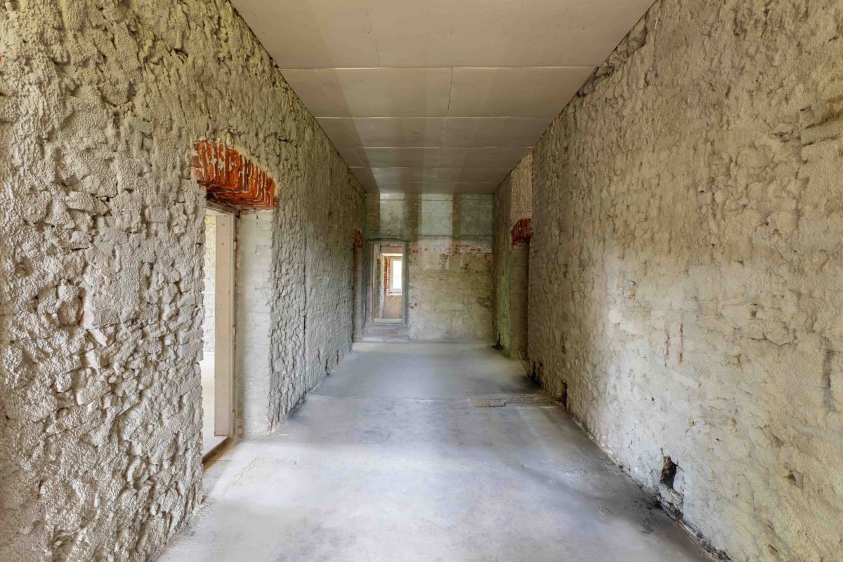 75 m² de espacio parcialmente abierto bajo una bóveda de ladrillo con pequeñas ventanas.