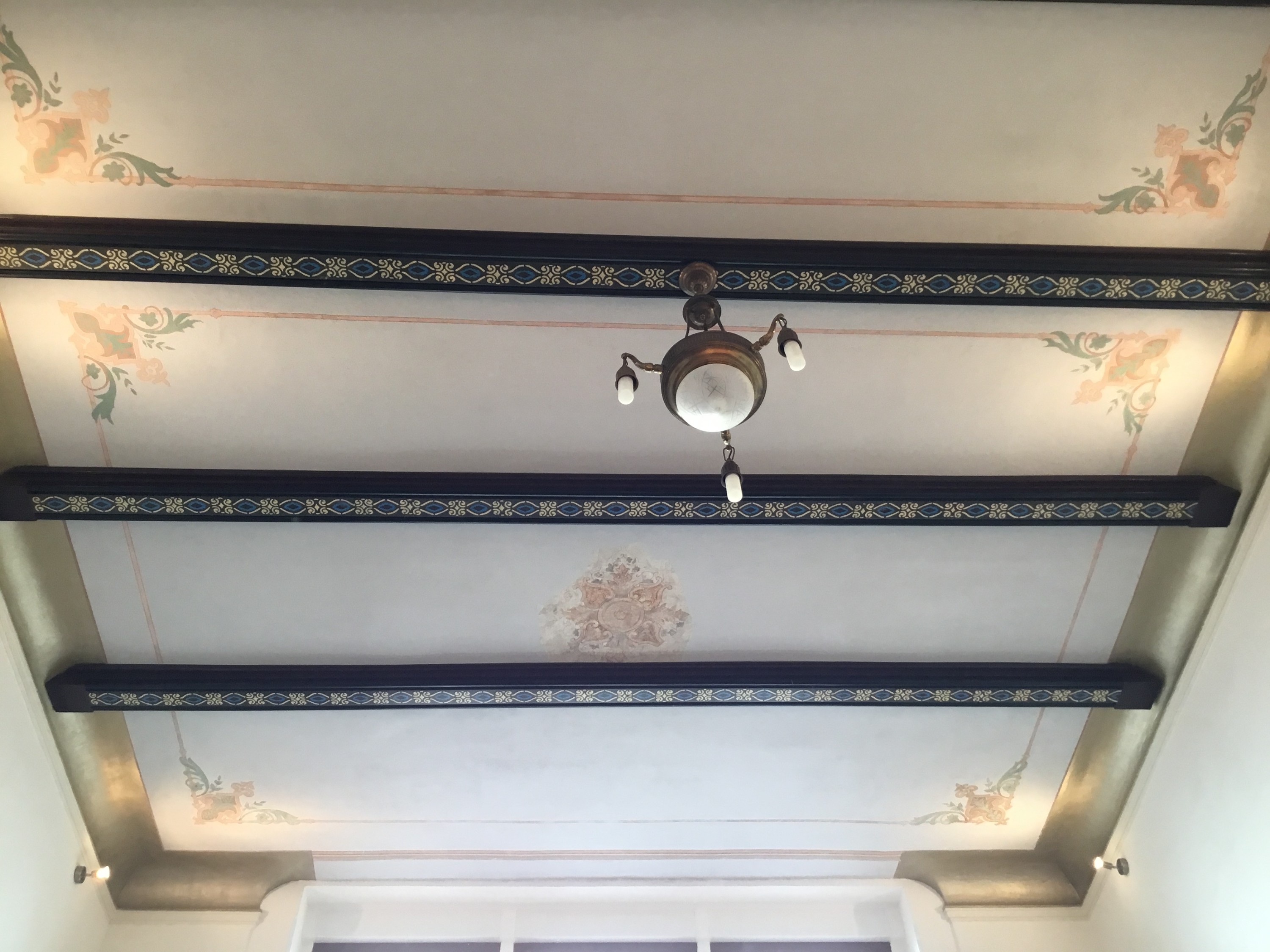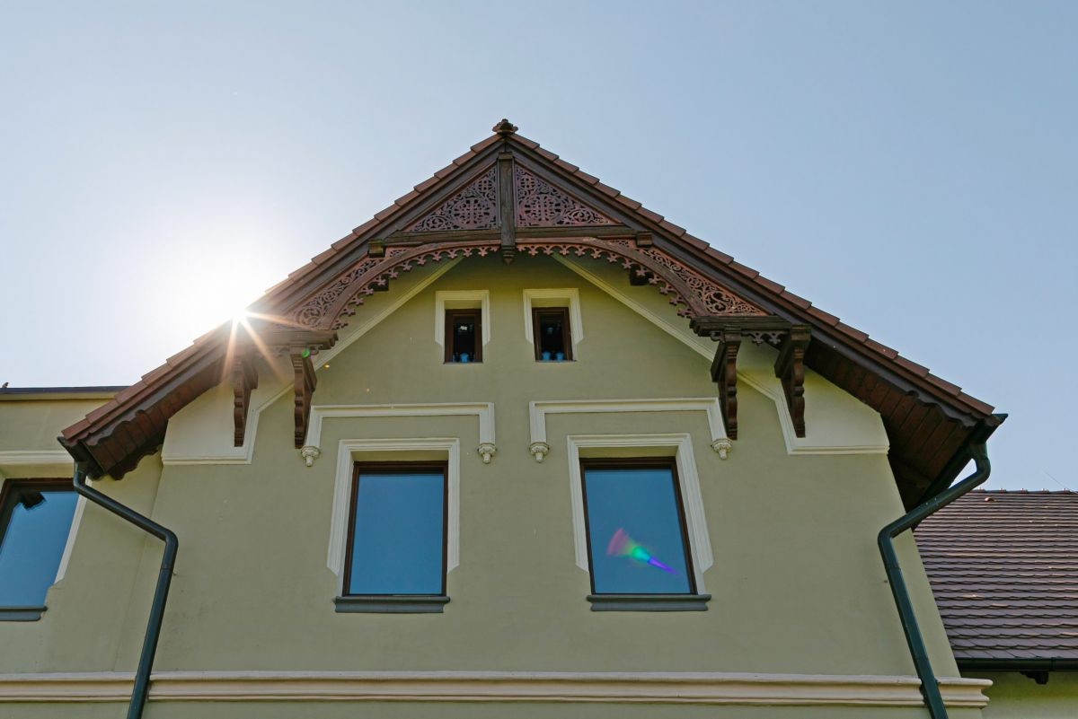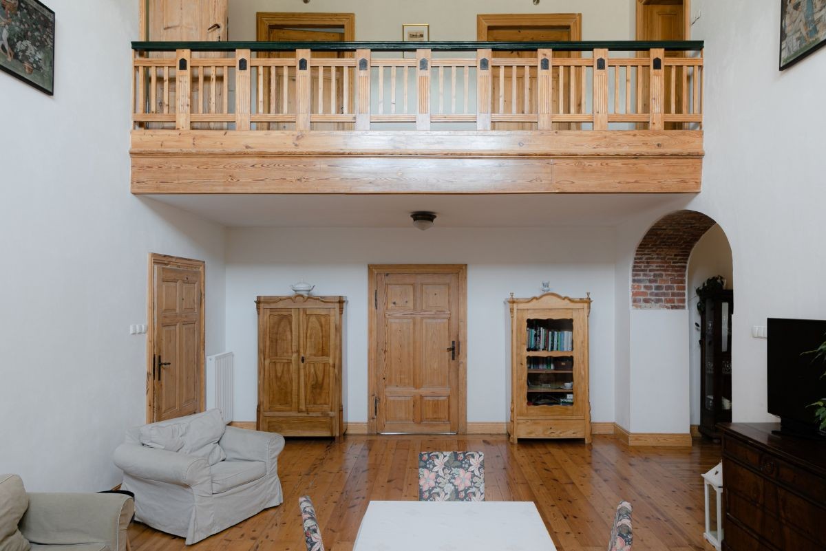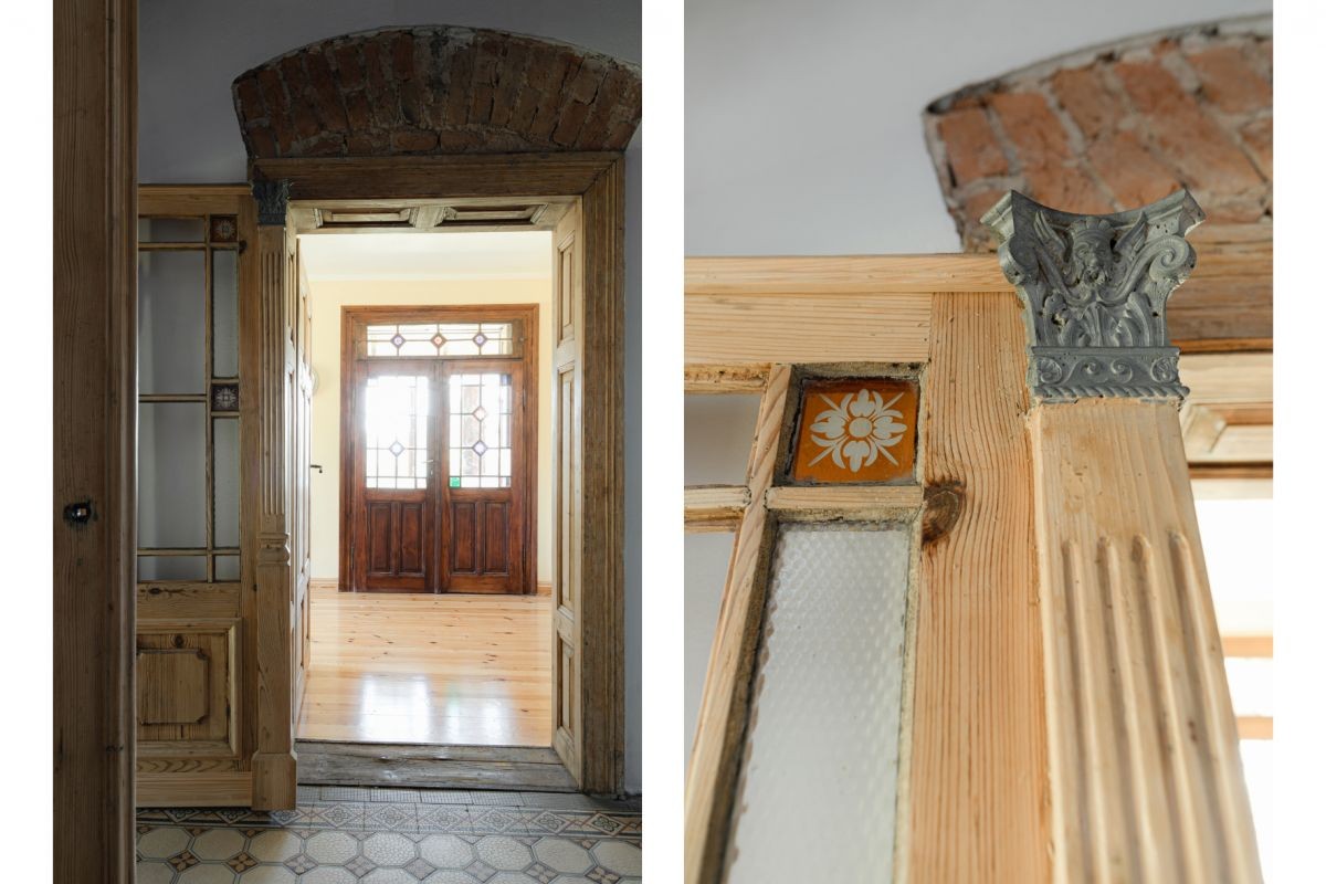 En la casa hay un total de 15 habitaciones con una superficie total de 482 metros cuadrados. El corazón de la villa es un hall de entrada representativo, con casi 6 metros de altura, con frescos restaurados del siglo XIX y motivos florales. El techo también está decorado con vigas de madera decorativas. Los pisos están revestidos con anchos tablones de pino originales y parquet de roble. Se han restaurado los trabajos de carpintería originales de las puertas. Una característica especial de la propiedad es la fachada original reconstruida a mano y las elaboradas tallas de madera con motivos florales.