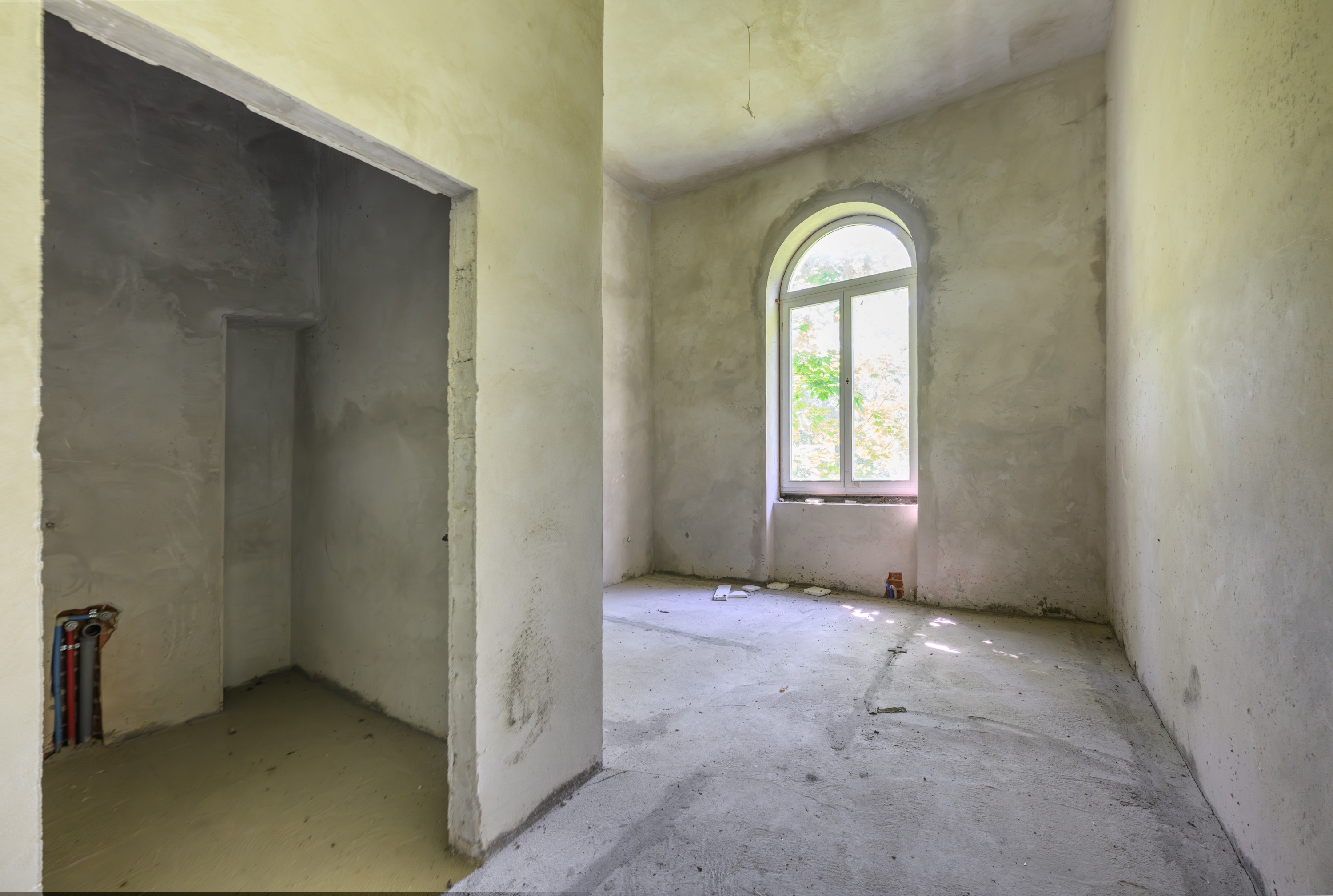 La propiedad fue sometida a una primera renovación hace 10 años: se cambiaron las ventanas, se renovó la fachada, se restauró y aisló el tejado, se remodeló el desván y se renovaron las instalaciones de agua, alcantarillado, calefacción y electricidad. El amplio y representativo planta baja, el espacioso desván luminoso y el sótano ofrecen diversas posibilidades de adaptación y diseño. Se han conservado las decoraciones originales y la escalera de madera en la entrada principal. Se necesitan más trabajos de renovación. Después de esto, la casa puede ser utilizada de manera variada, tanto comercial como residencialmente, ya que no hay restricciones de uso. La electricidad ya está conectada y la conexión de agua está en la carretera.