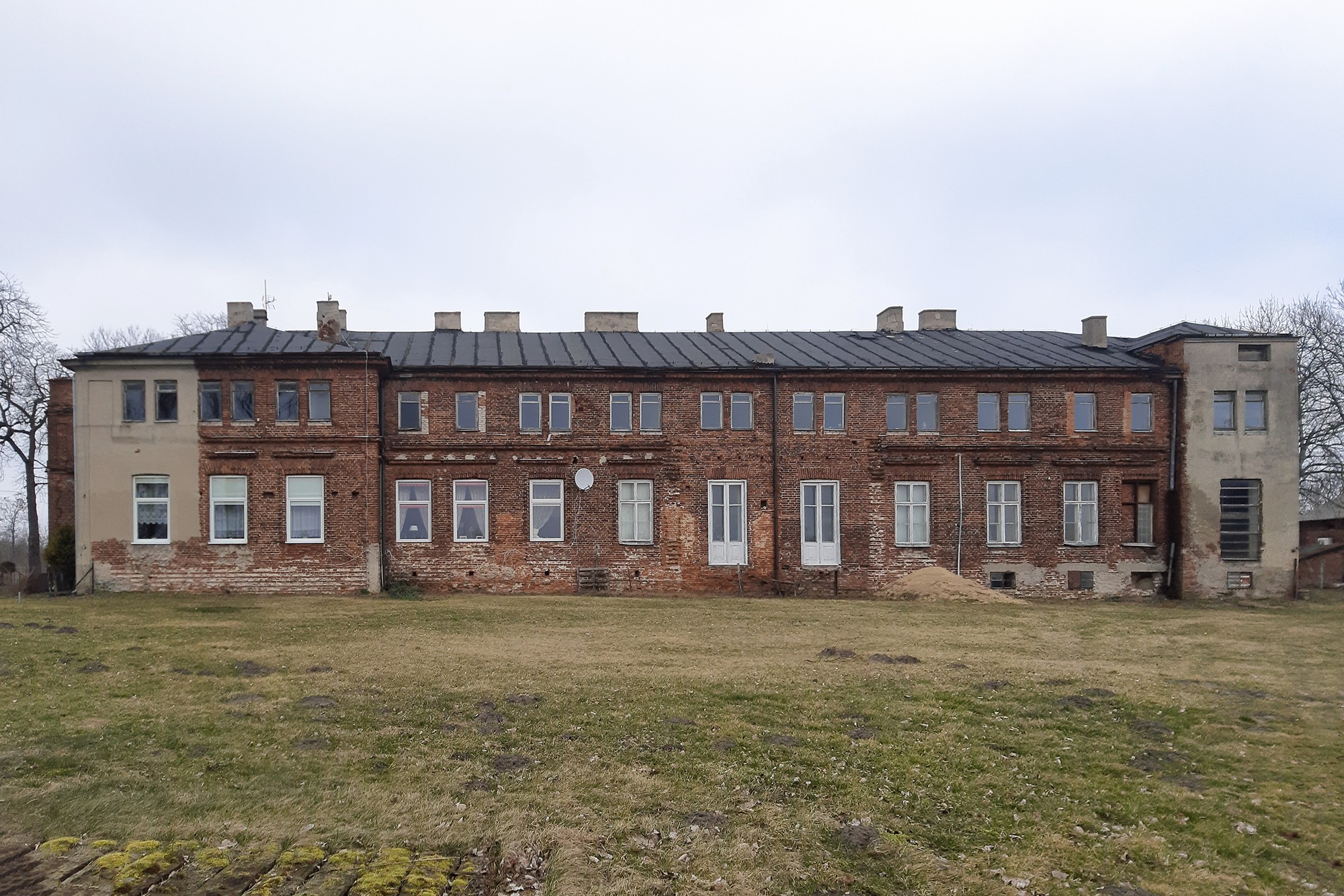 El edificio que necesita renovaciones es una construcción alargada de ladrillo enlucido, con el techo cubierto de cartón alquitranado. Una parte de la casa ha sido renovada y está habitada. Las ventanas de la parte habitada son de PVC, mientras que en el resto de la casa aún están las ventanas de madera originales. Además, en la casa señorial se conservan características originales, como suelos de parquet, puertas dobles de madera, una estufa de azulejos antigua y la escalera de madera original. La propiedad está exenta del impuesto sobre bienes inmuebles debido a su estatus de monumento histórico.